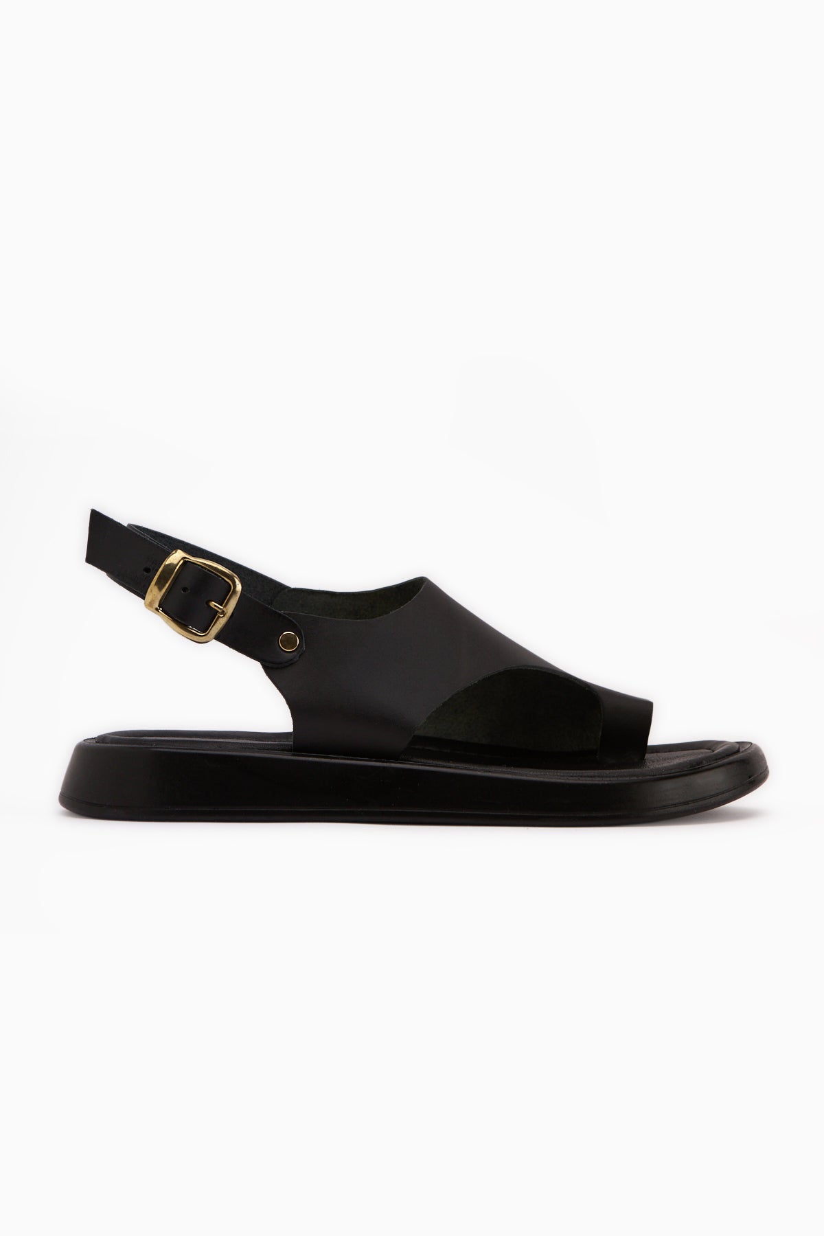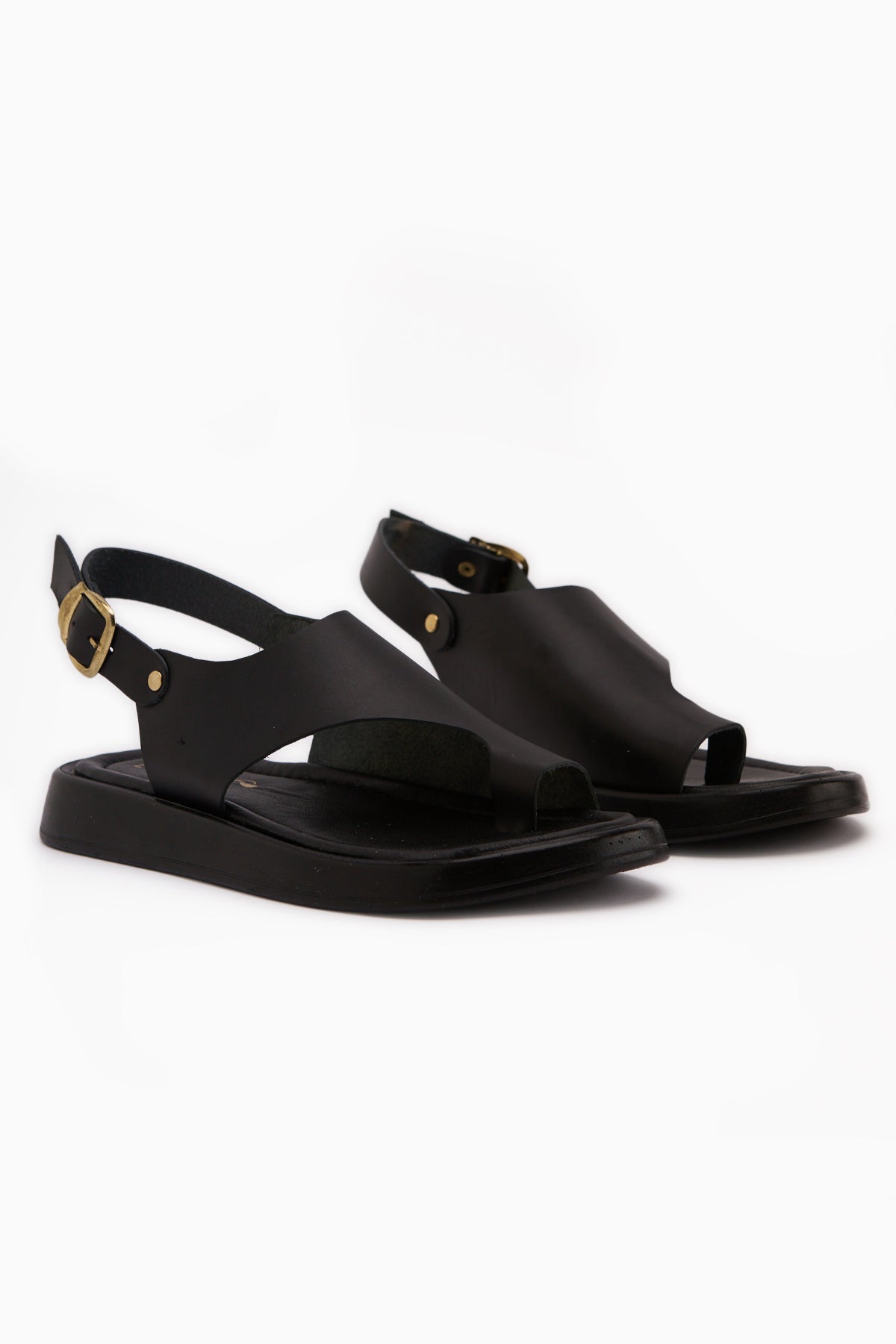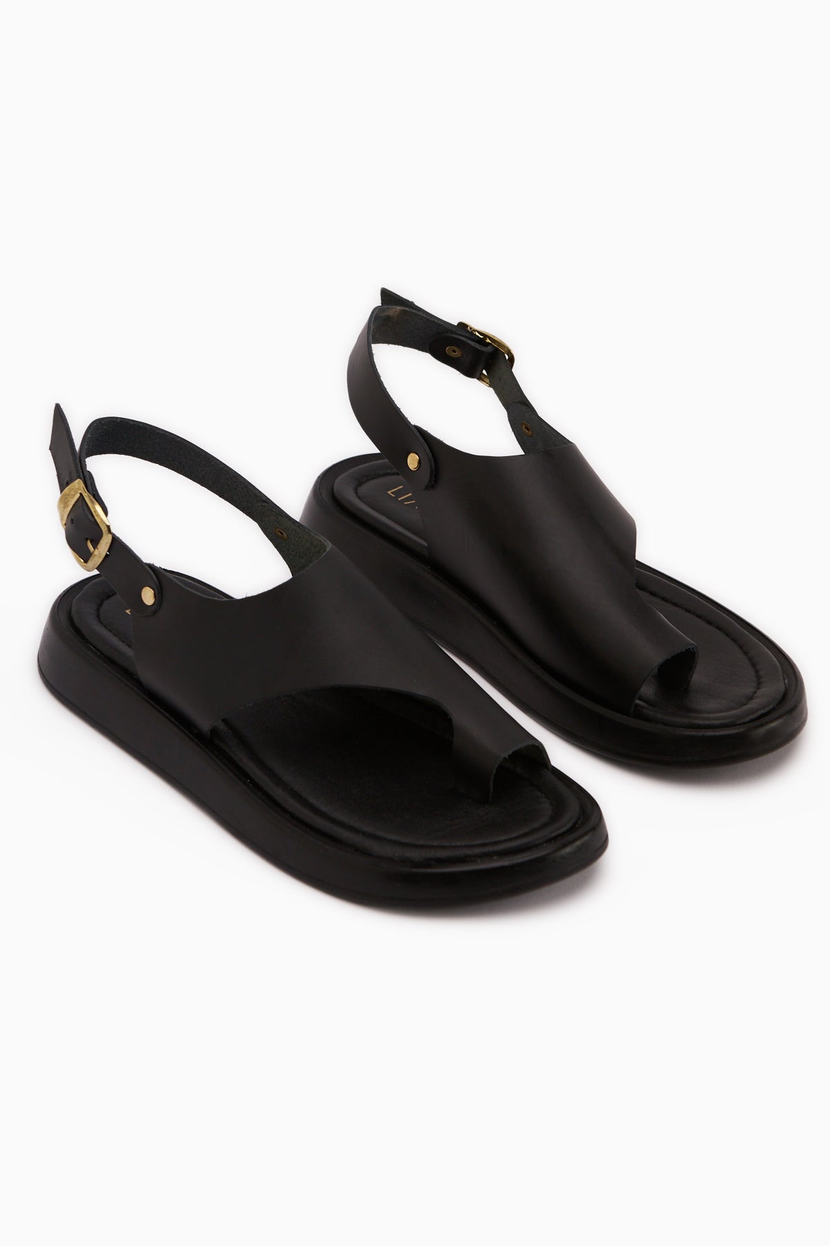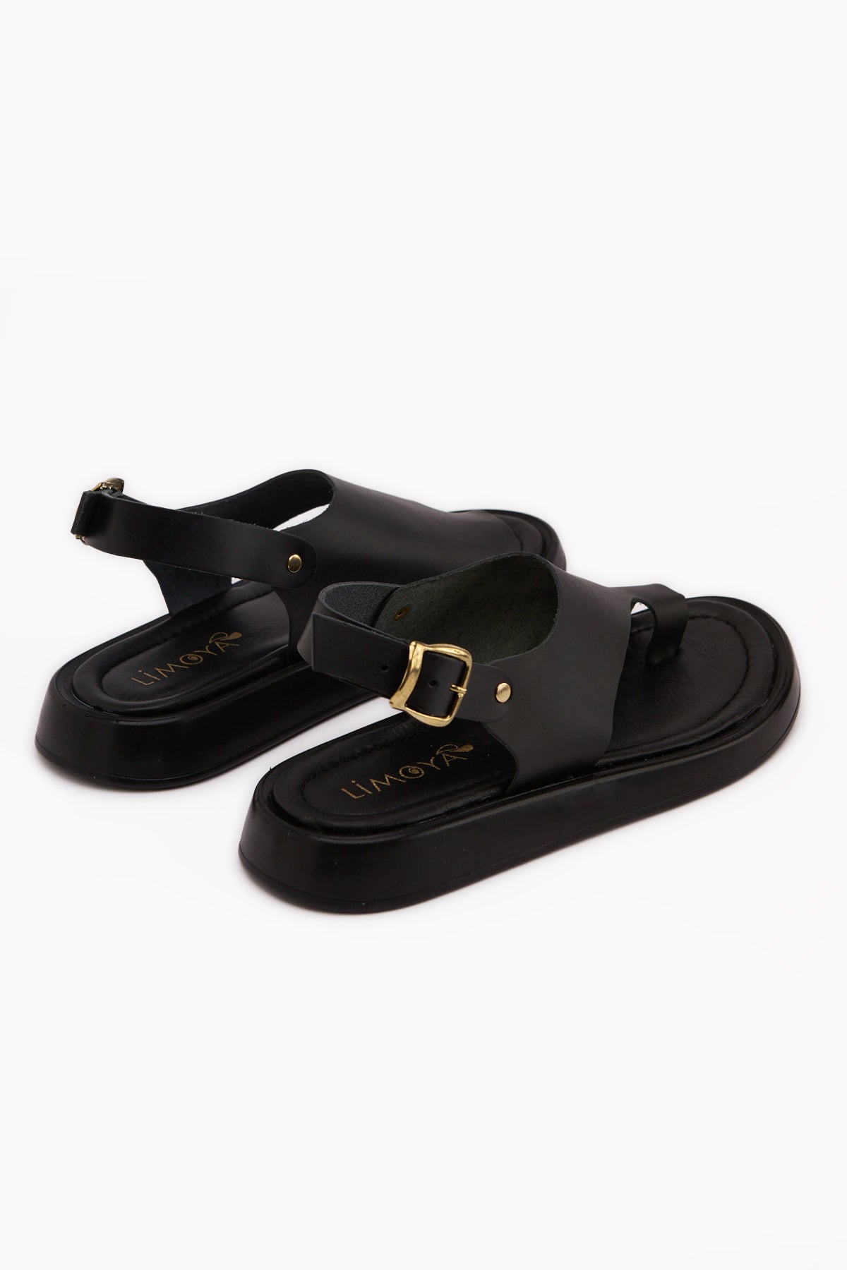 Alis Hakiki Deri Siyah Parmak Arası Kadın Sandalet