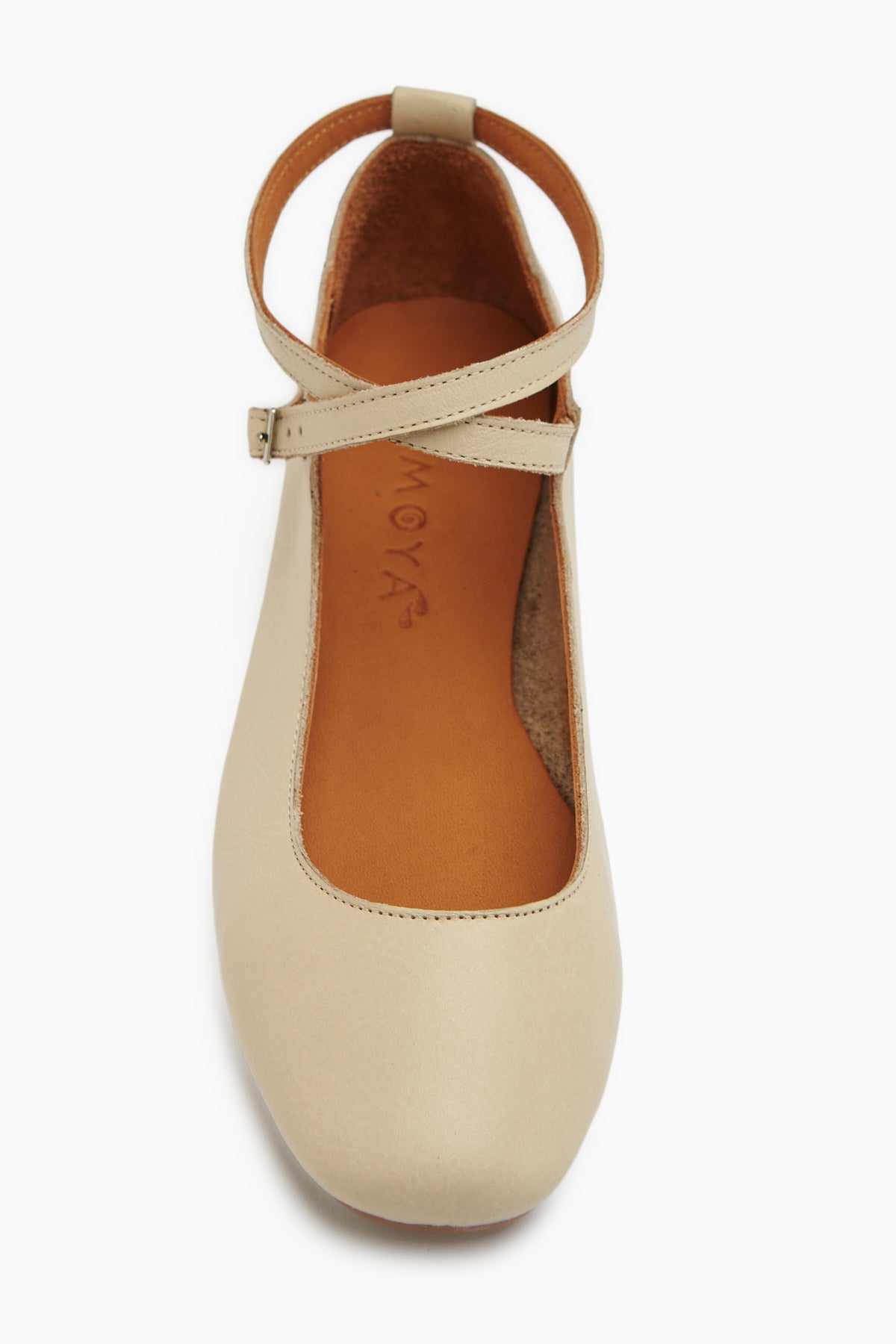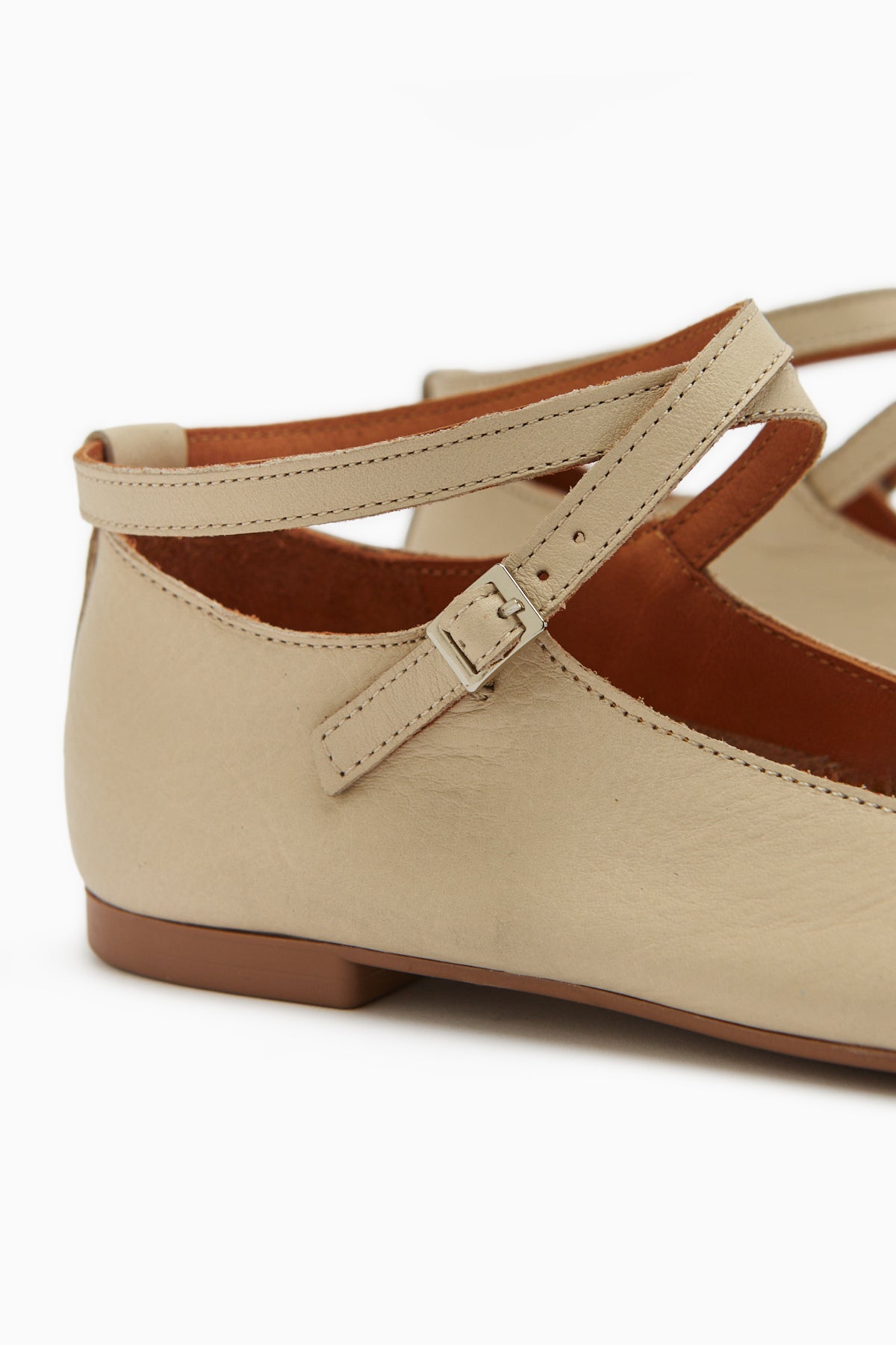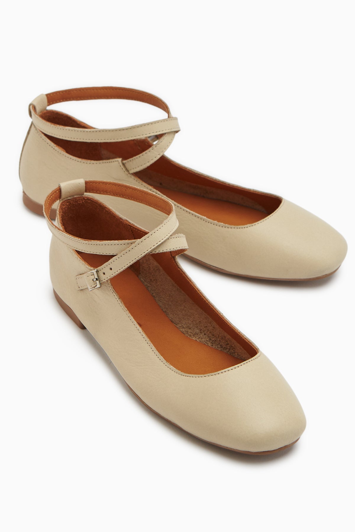 Ameli Hakiki Deri Bej Çapraz Bantlı Balerin Kadın Ayakkabısı