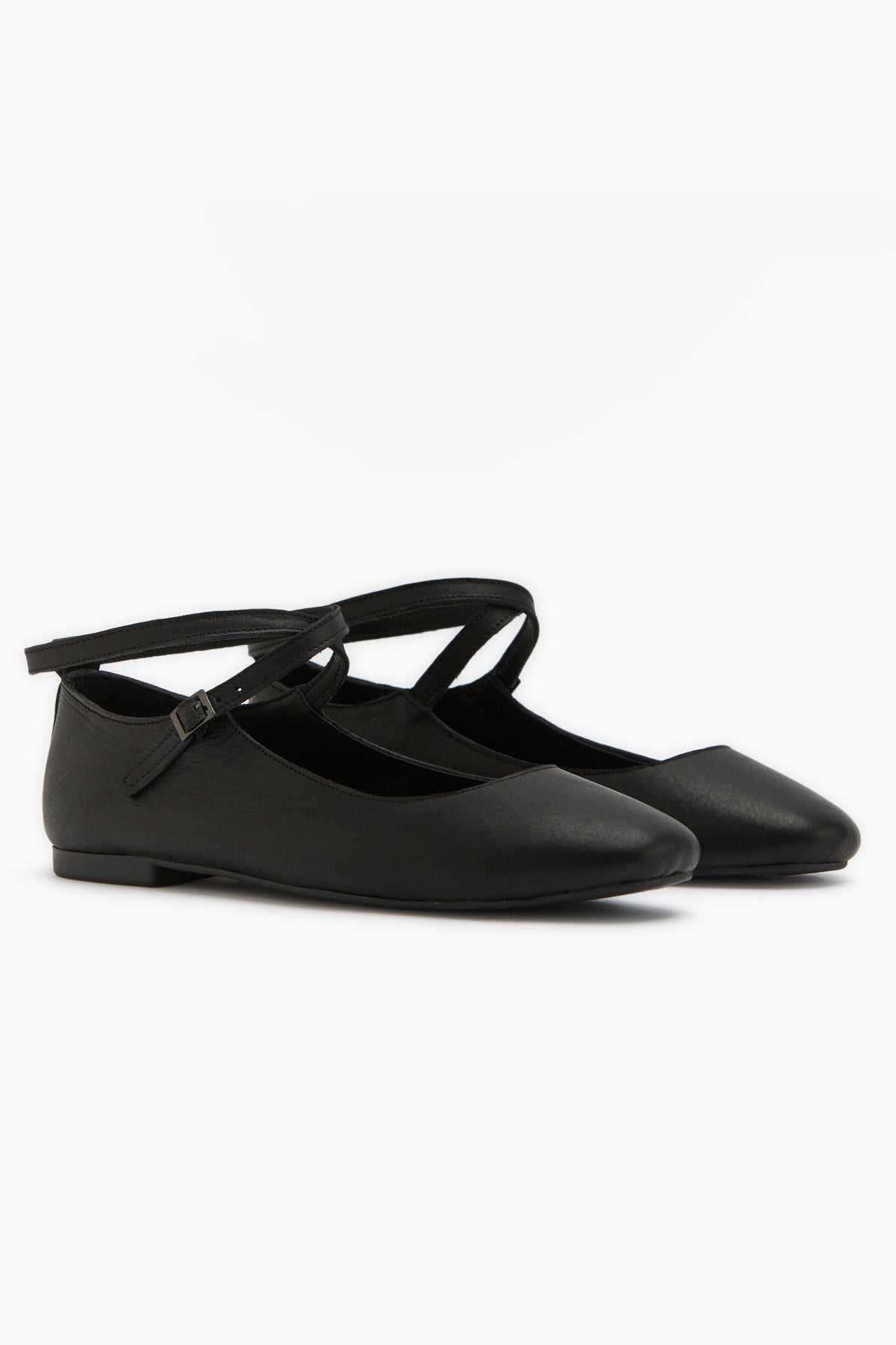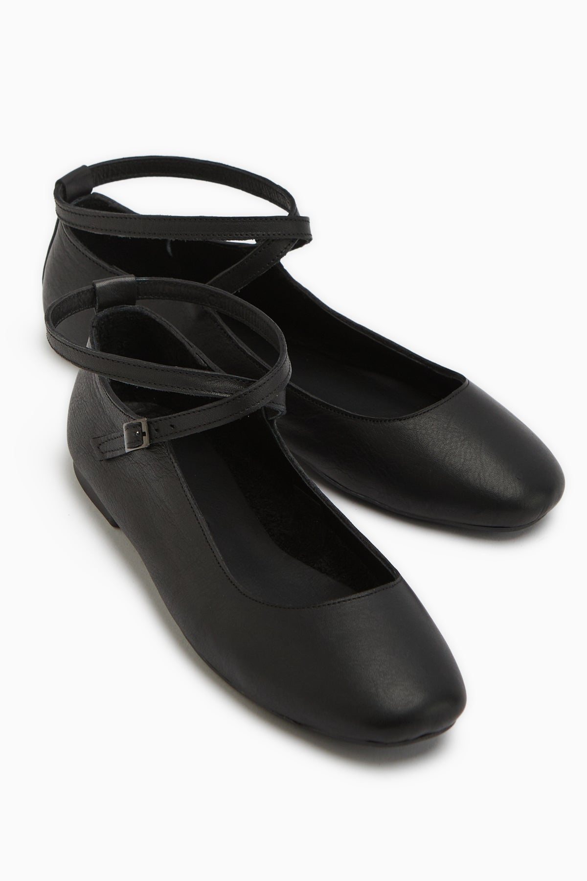 Ameli Hakiki Deri Siyah Çapraz Bantlı Balerin Kadın Ayakkabısı