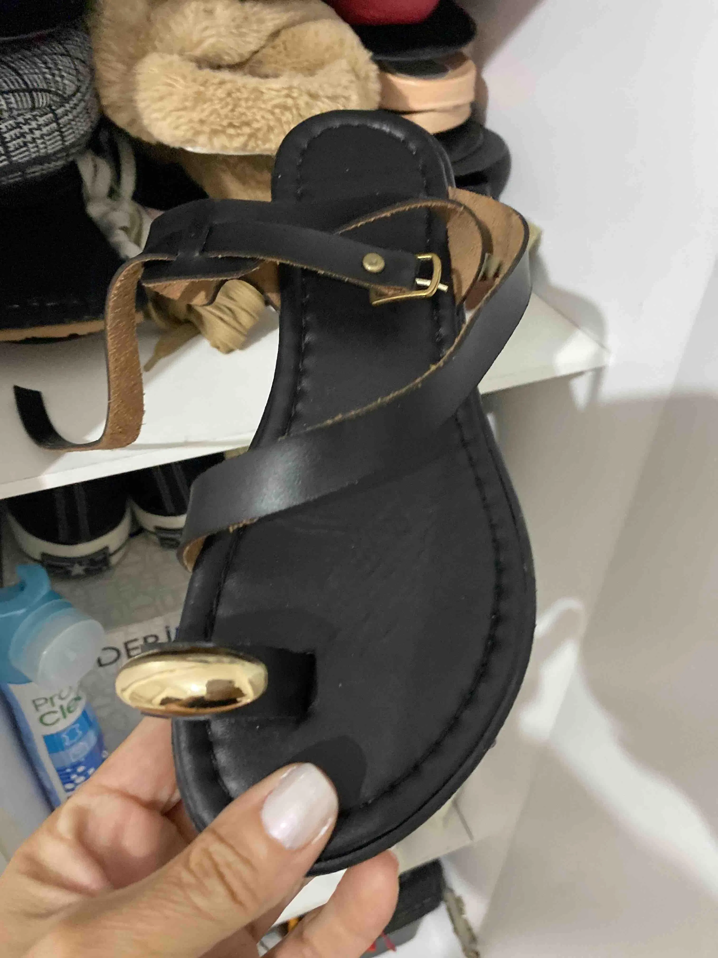 Anisa Siyah Çapraz Bantlı Parmak Arası Tokalı Kadın Sandalet