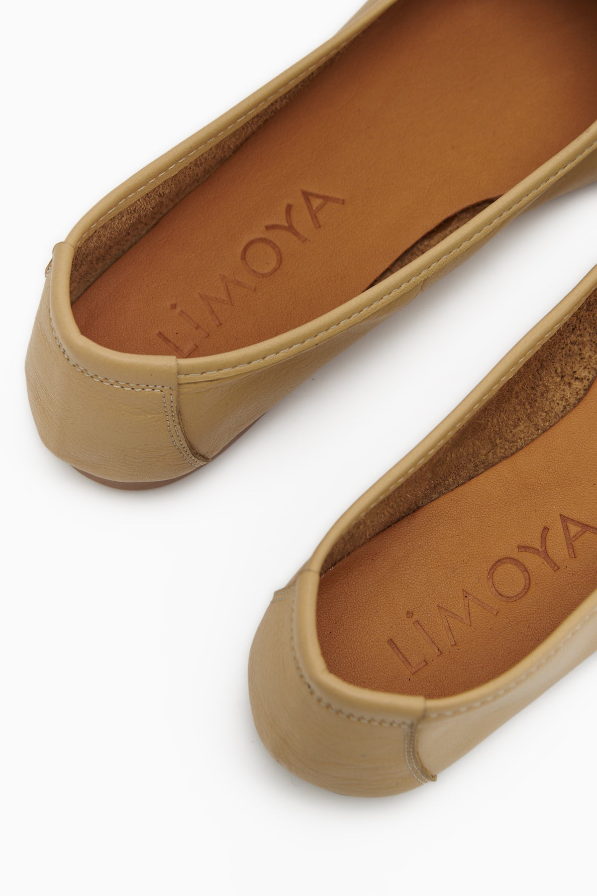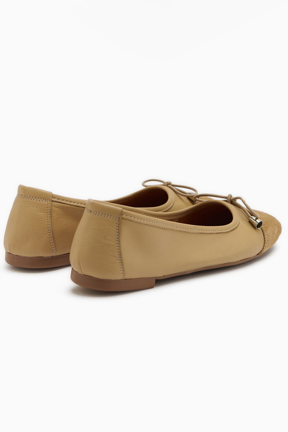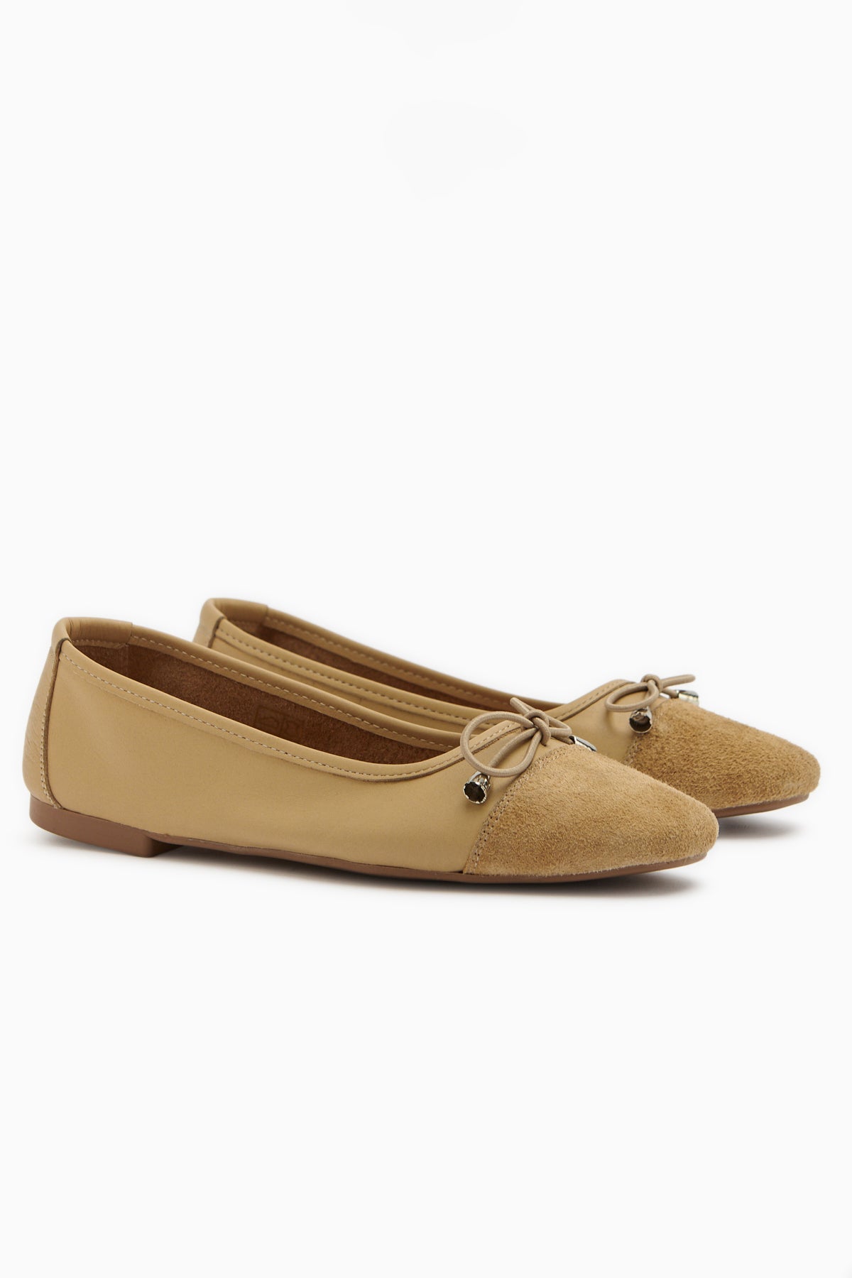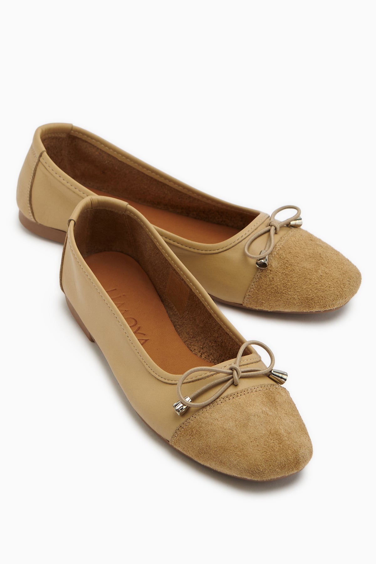 Anjela Hakiki Deri Bej Fiyonk Detaylı Kadın Babet Ayakkabı