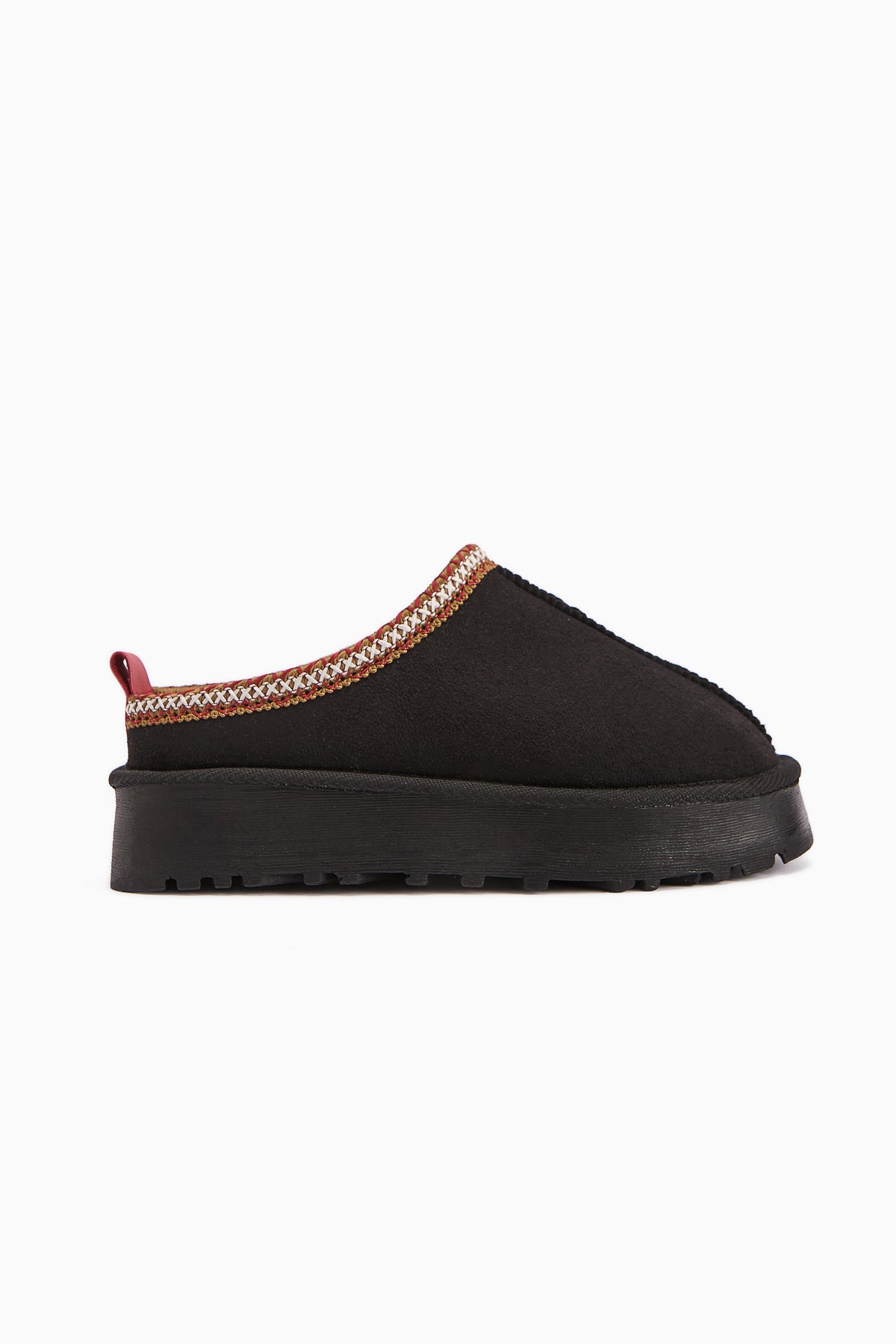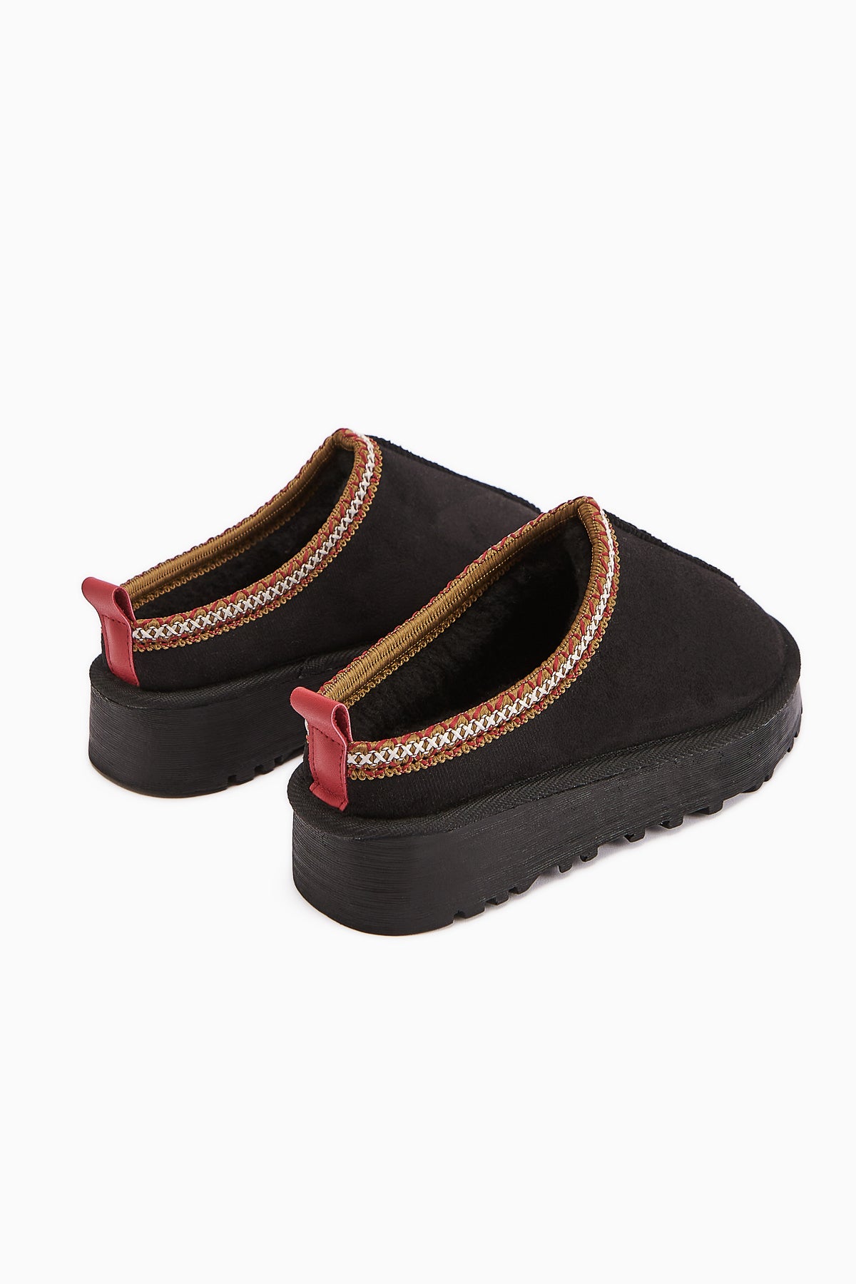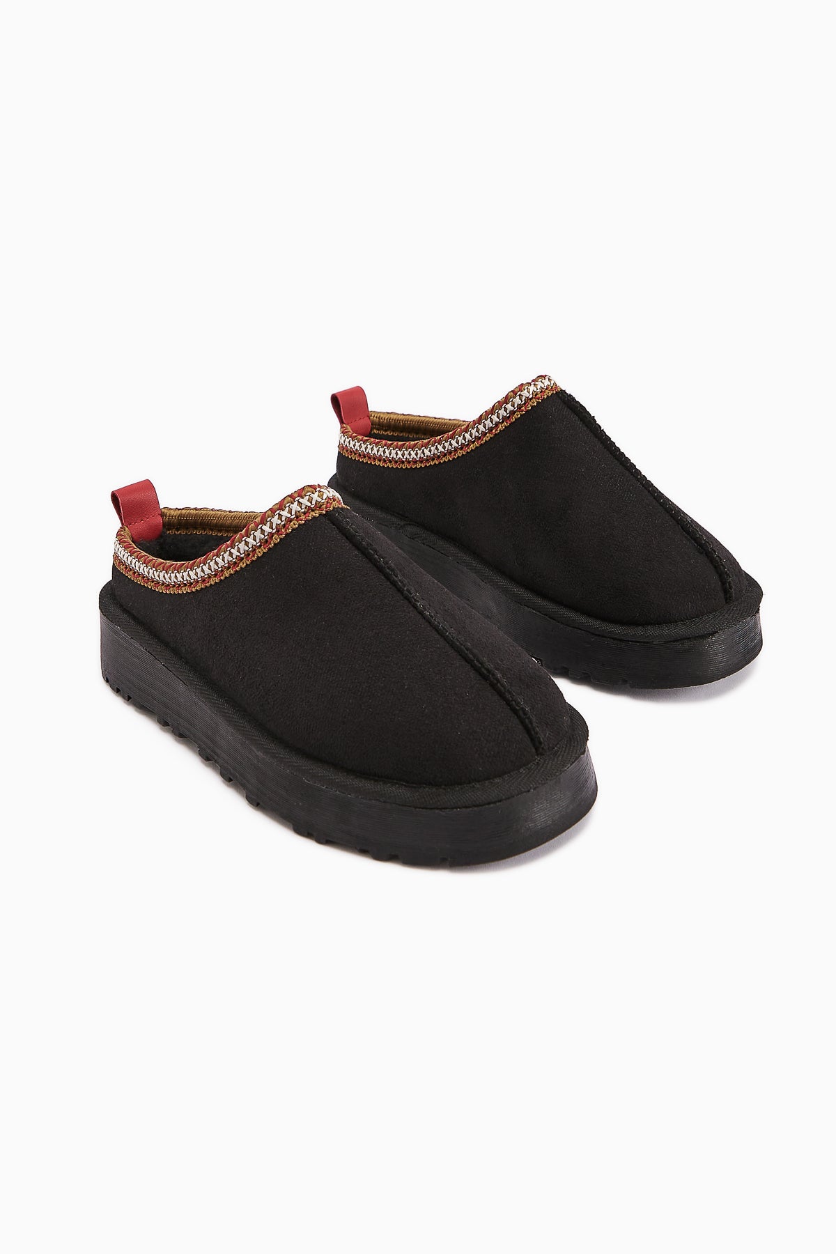 Anne-Liis Siyah Süet Dokuma Detaylı Kışlık Terlik