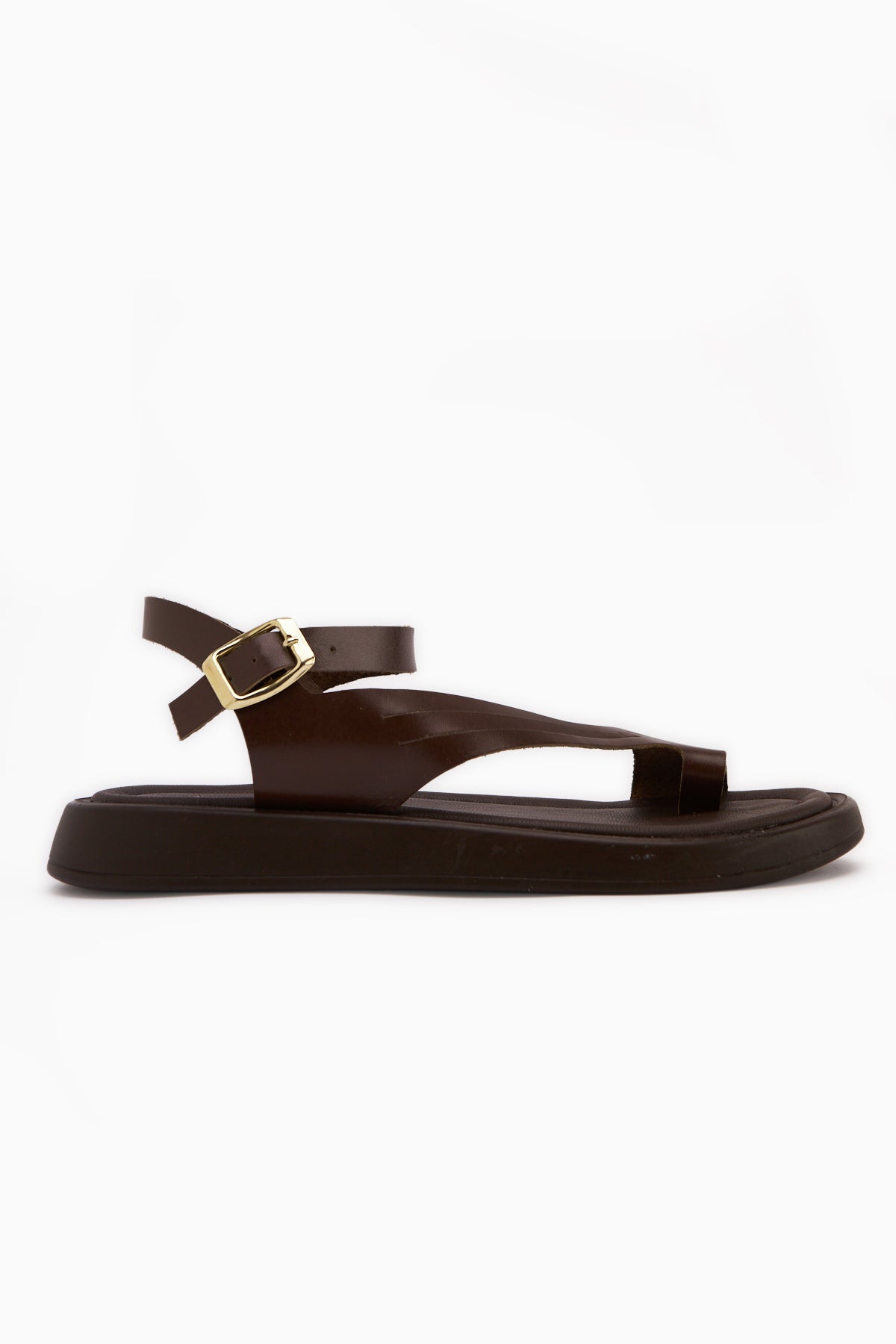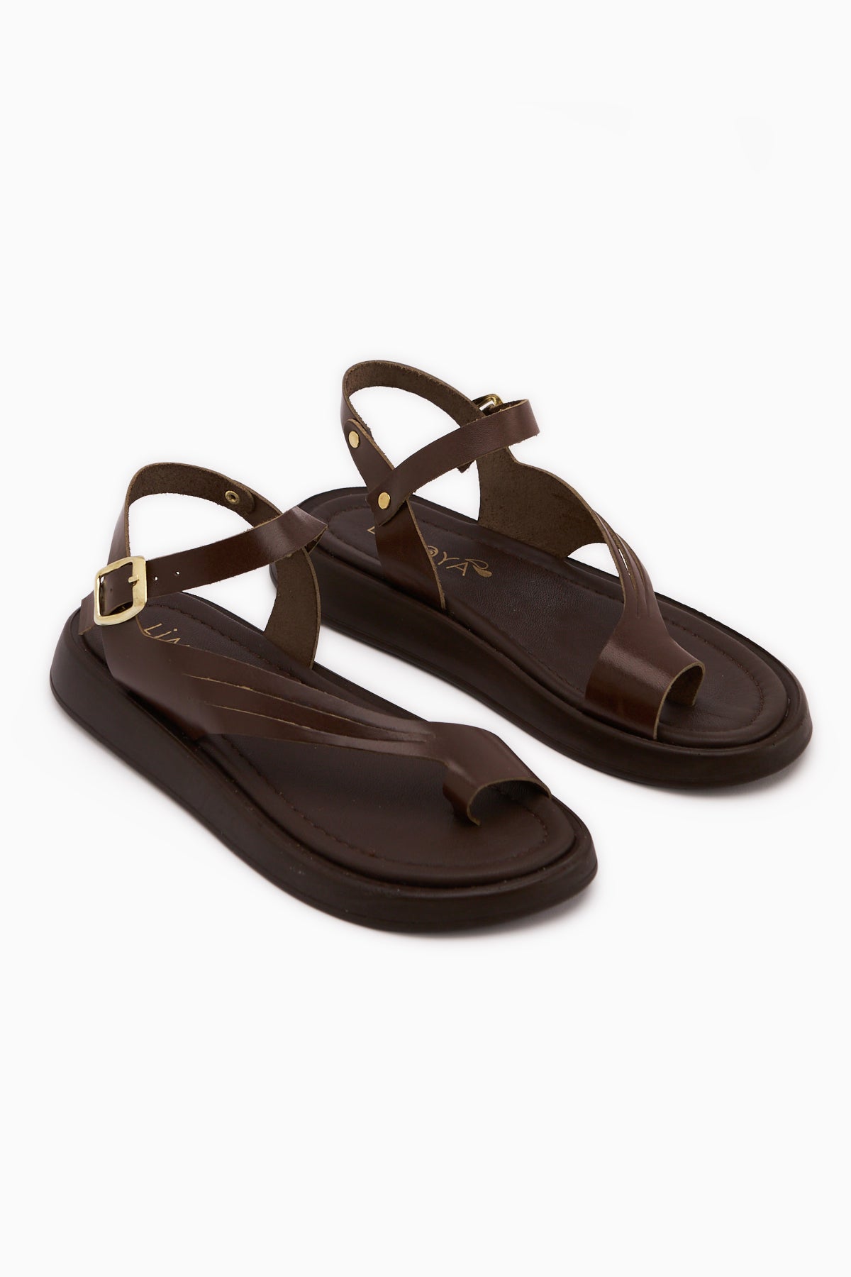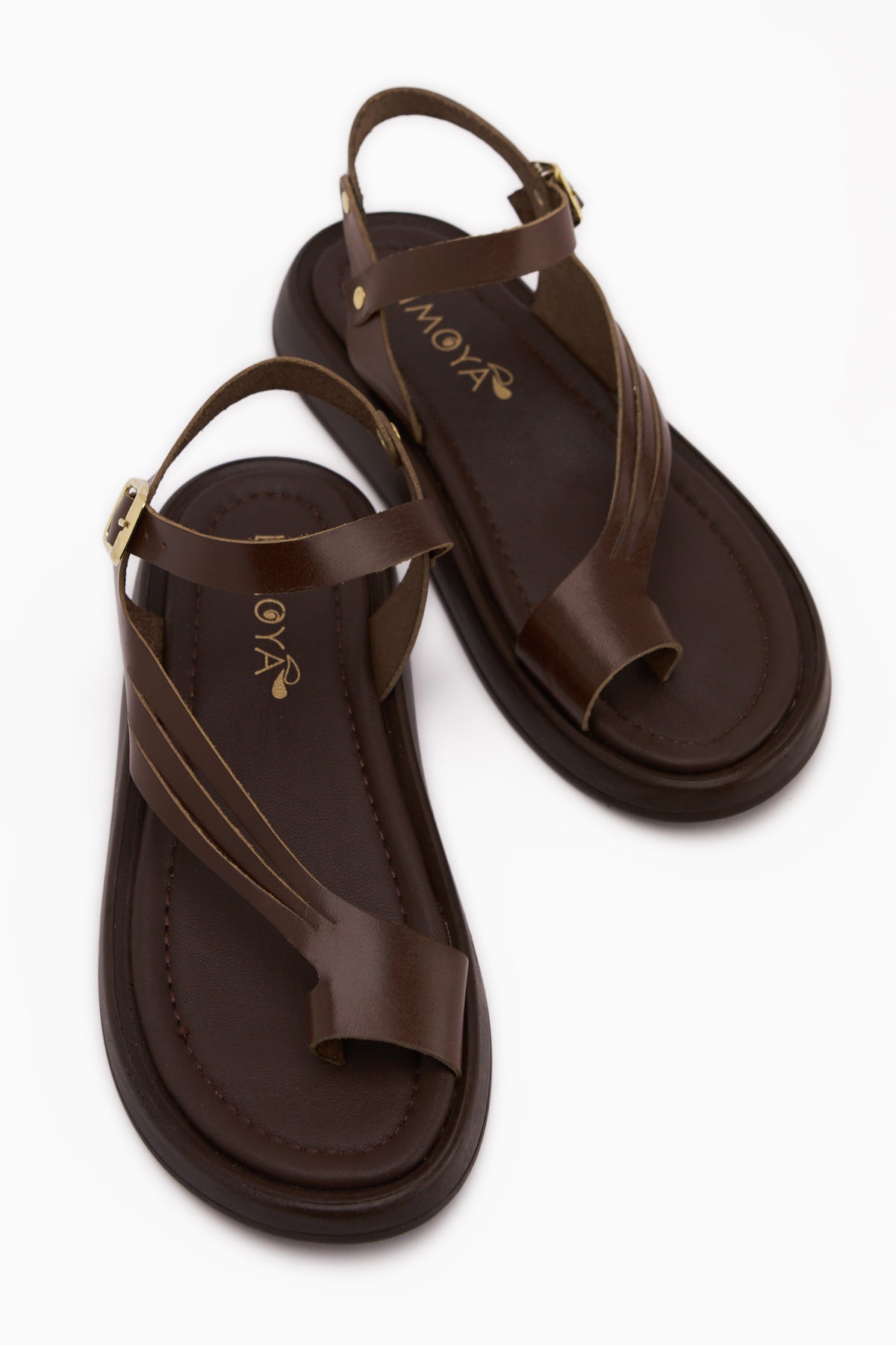 Annia Hakiki Deri Kahve Parmak Arası Kadın Sandalet