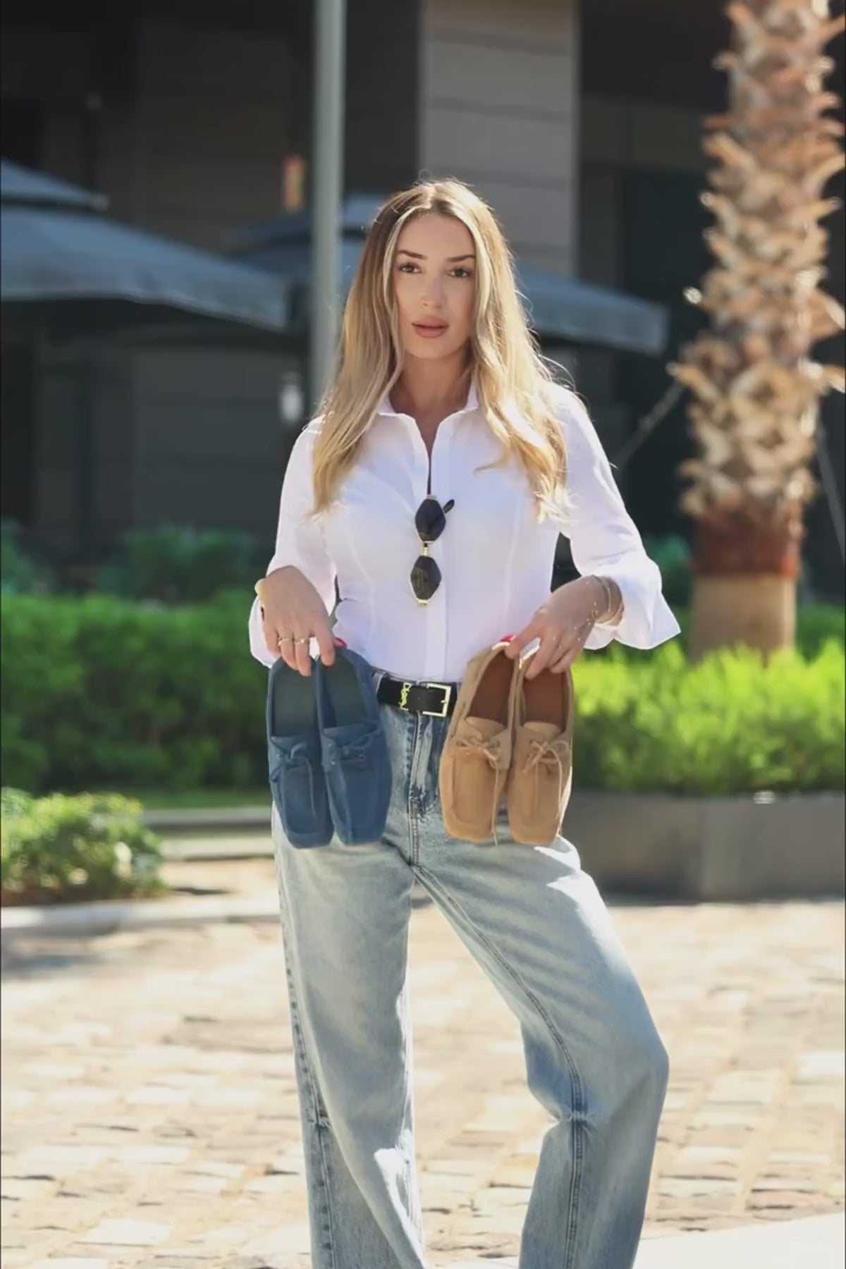 Arian Hakiki Deri Kahve Süet Bağcıklı Makosen Günlük Loafer Kadın Ayakkabı