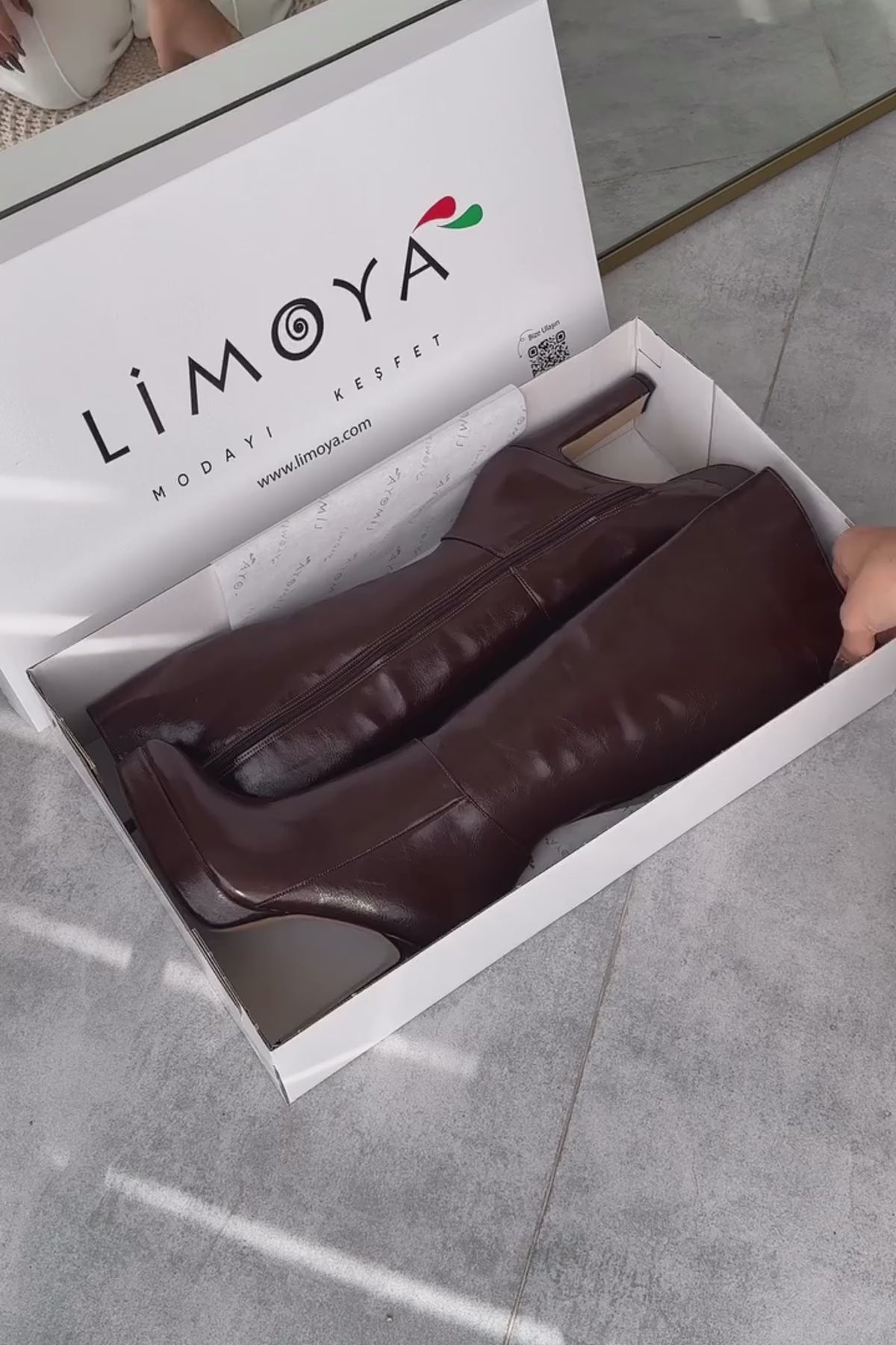 Ariya Kahve Platform Topuklu Fermuarlı Kadın Çizme
