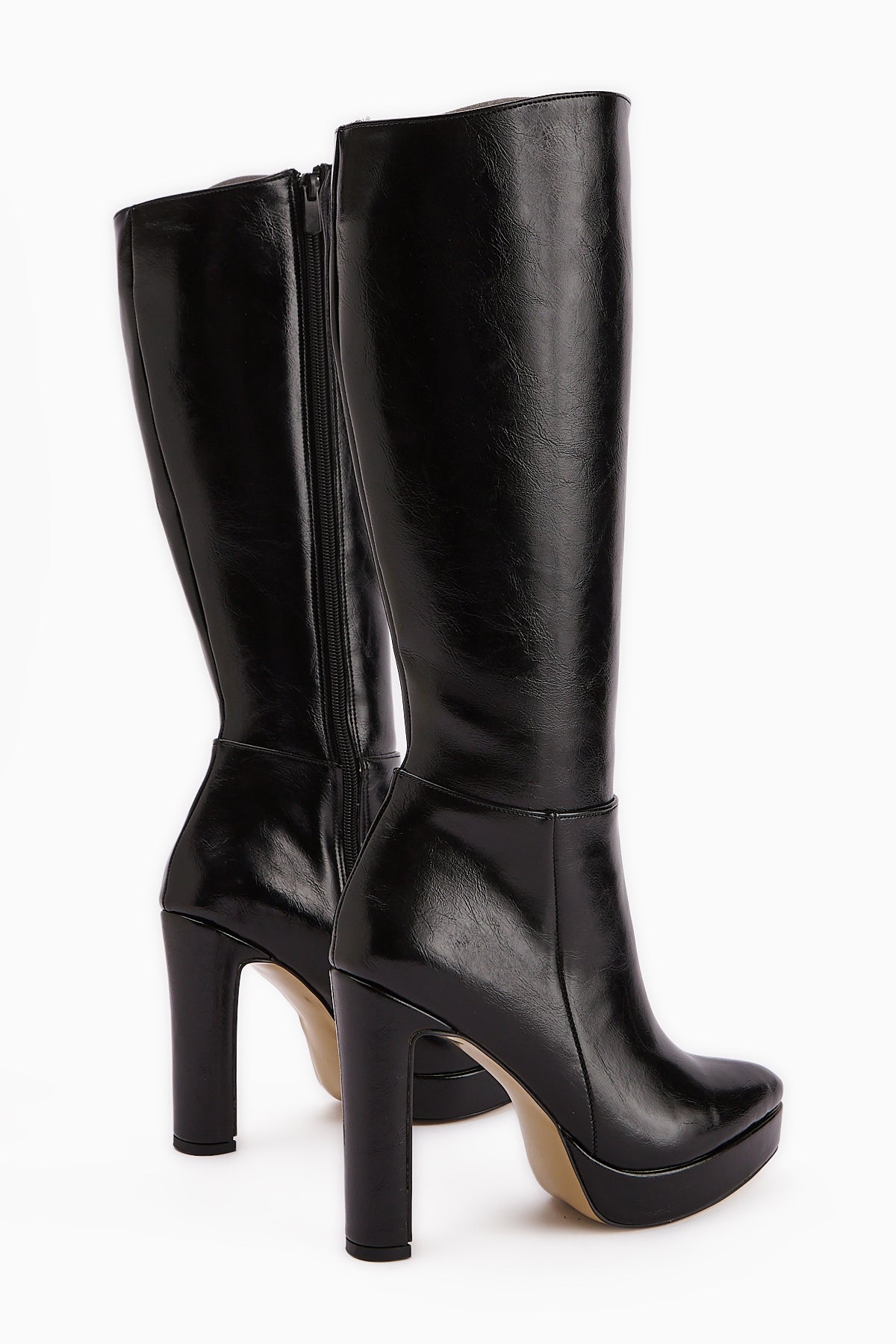 Ariya Siyah Platform Topuklu Fermuarlı Kadın Çizme