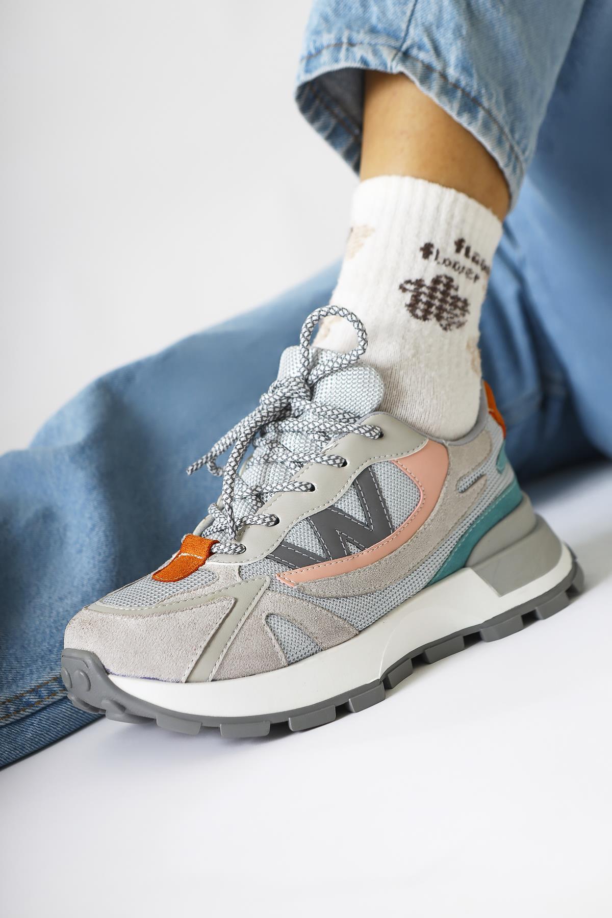 Bach Gri Süet Tekstil Detaylı Bağcıklı Kadın Sneakers