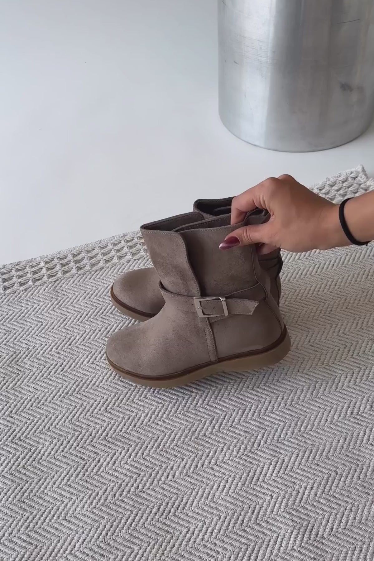Behnoush Vizon Süet Oval Burunlu Toka Detaylı Bot