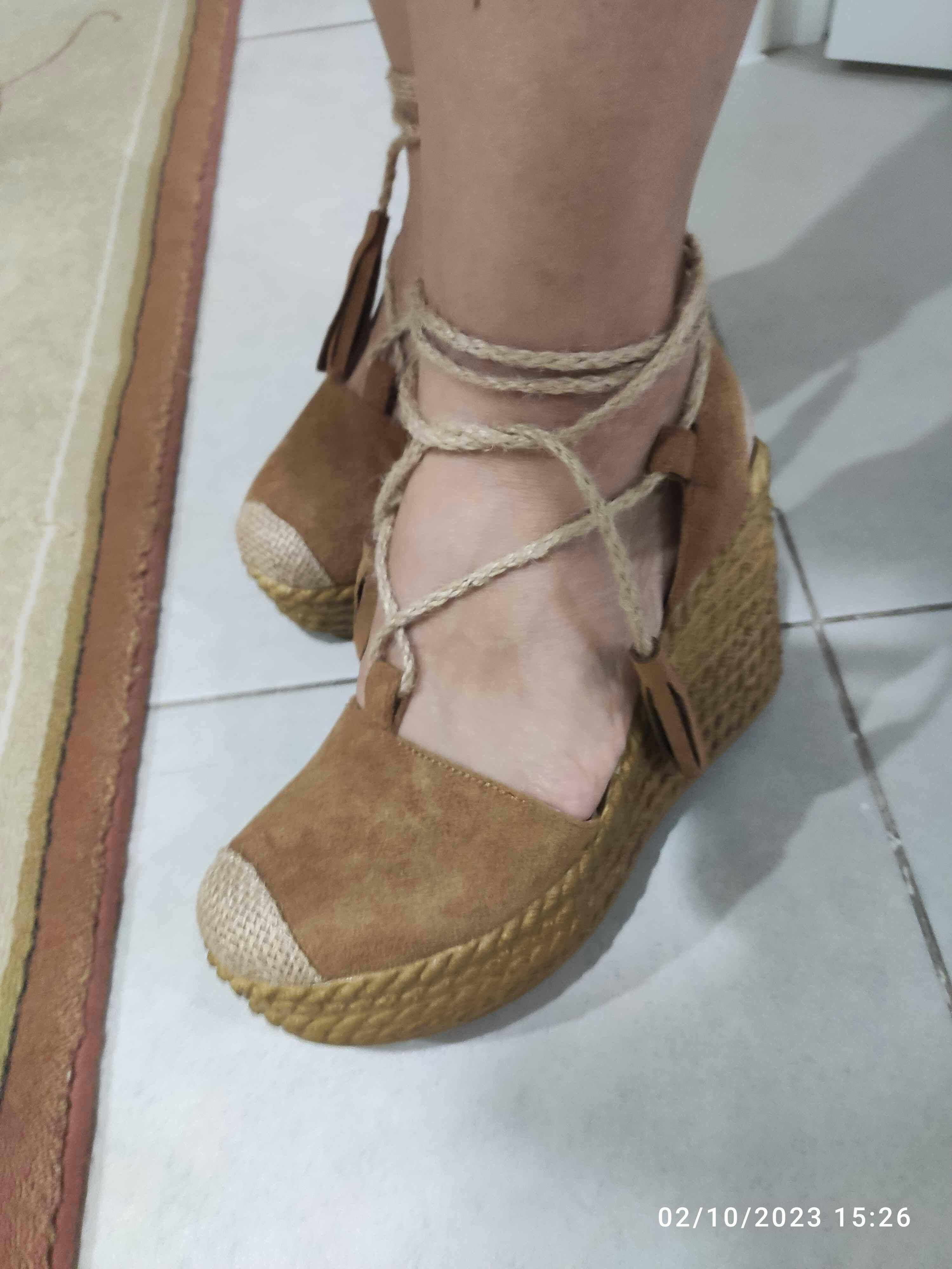 Bella Taba Süet Dolgu Tabanlı Hasır Bilekten Bağlamalı Sandalet