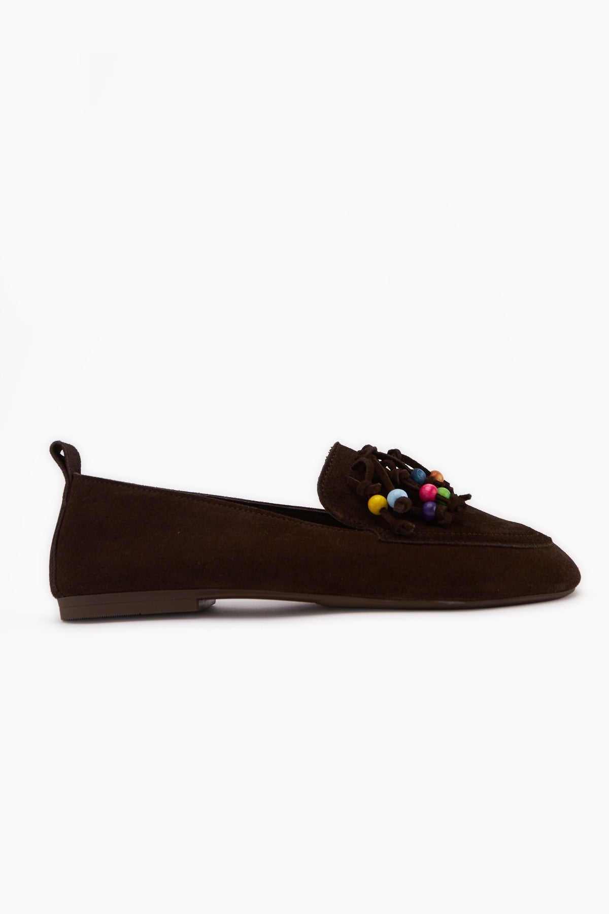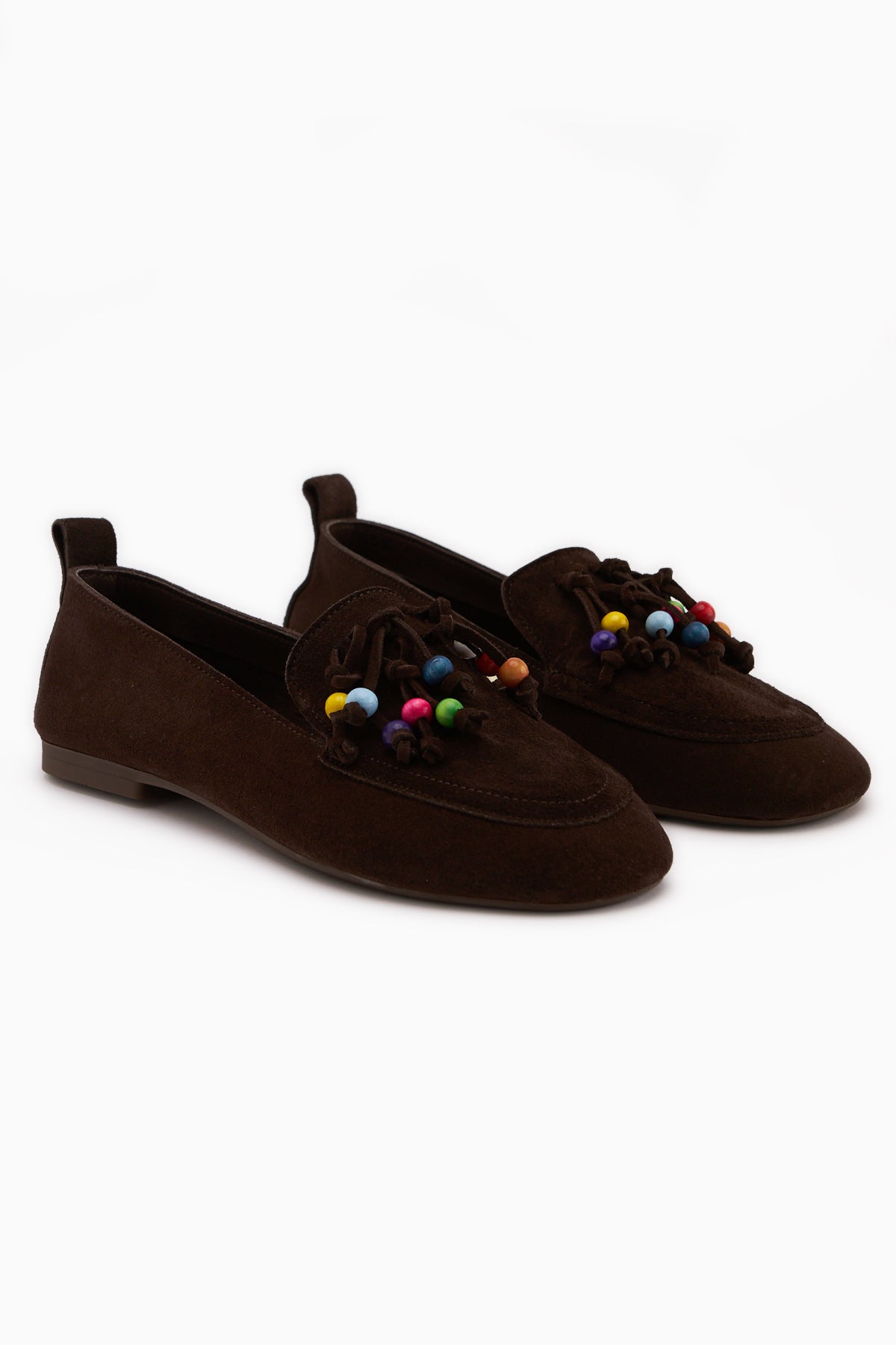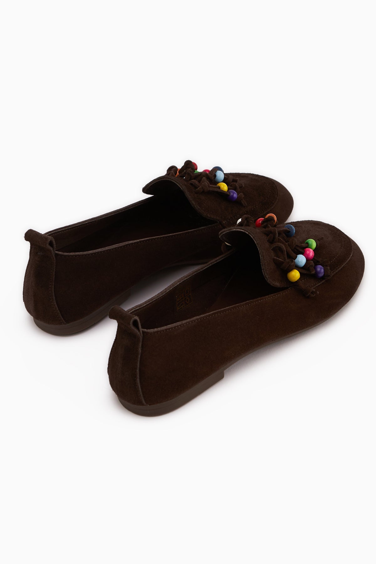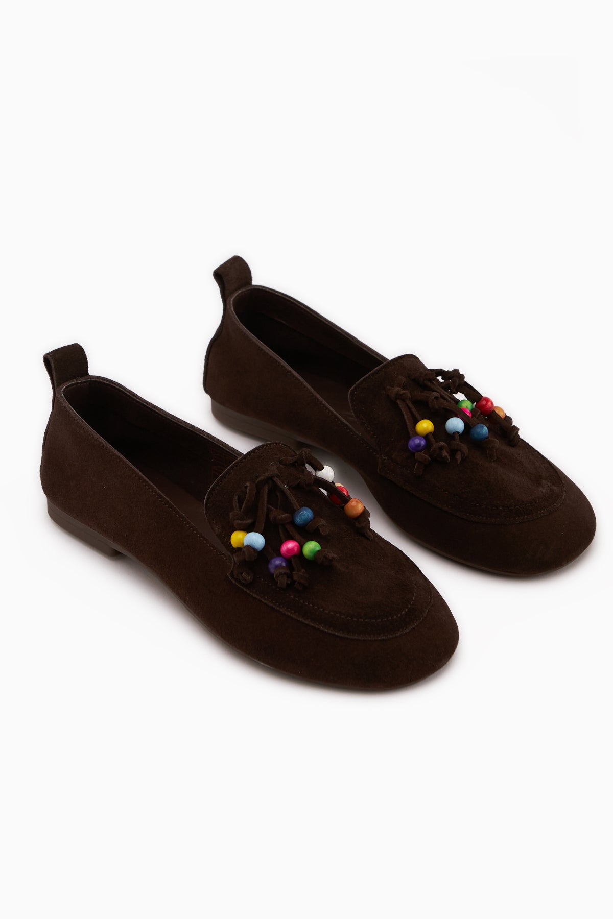 Benita Hakiki Deri Kahve Boncuk Detaylı Püsküllü Loafer Kadın Günlük Ayakkabı