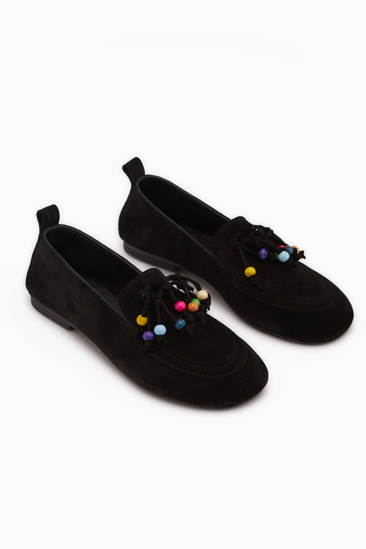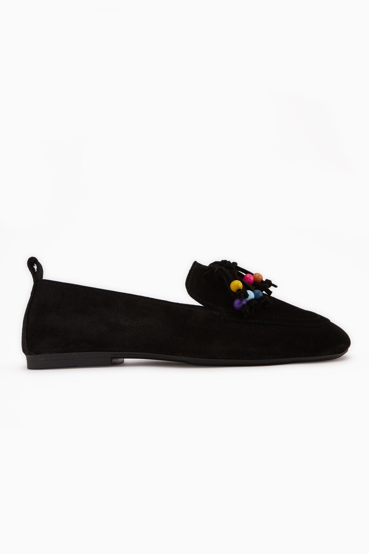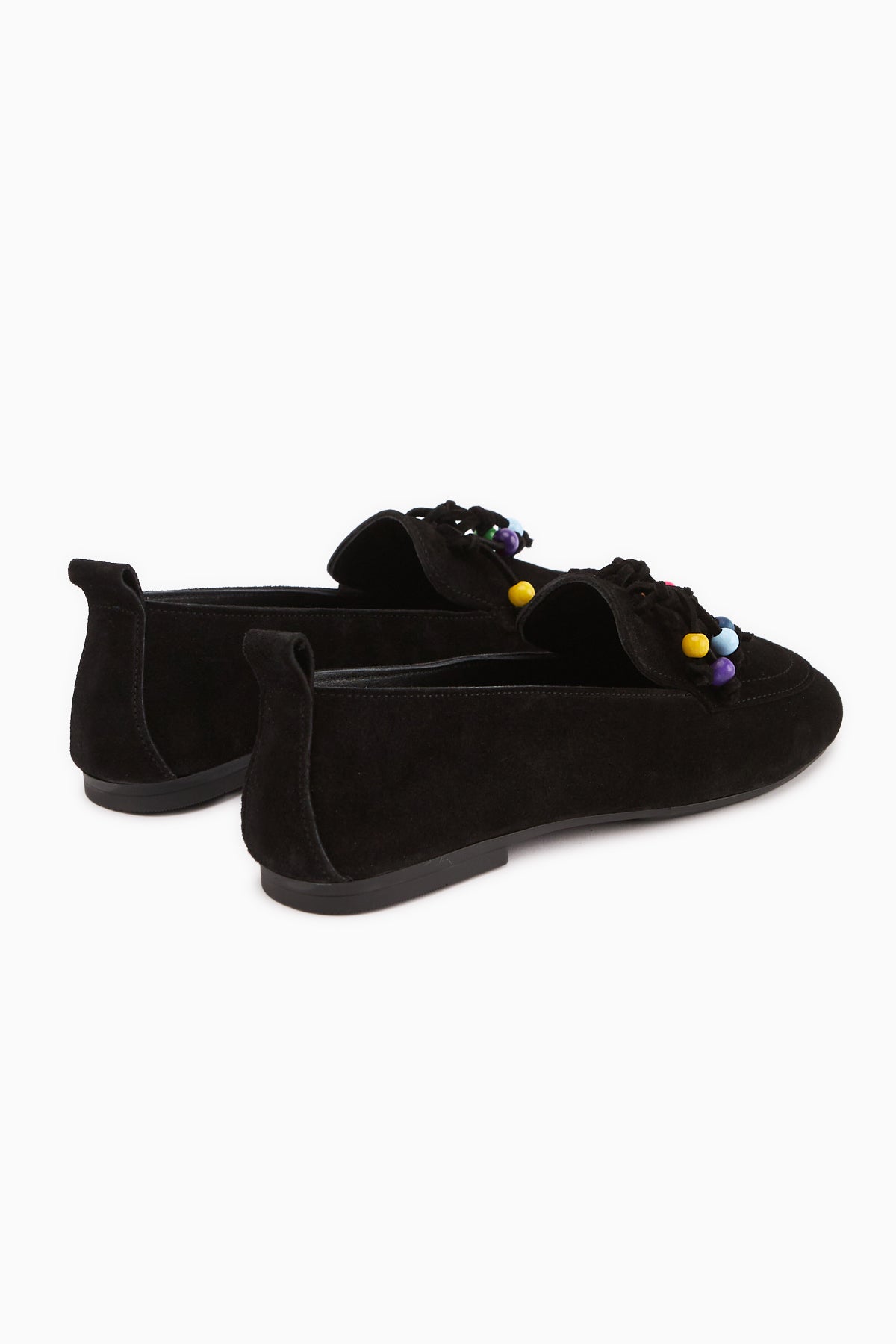 Benita Hakiki Deri Siyah Boncuk Detaylı Püsküllü Loafer Kadın Günlük Ayakkabı