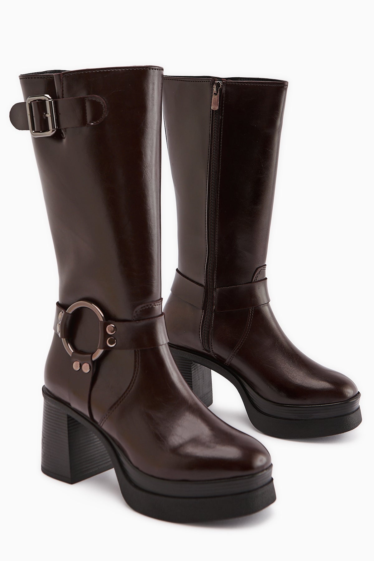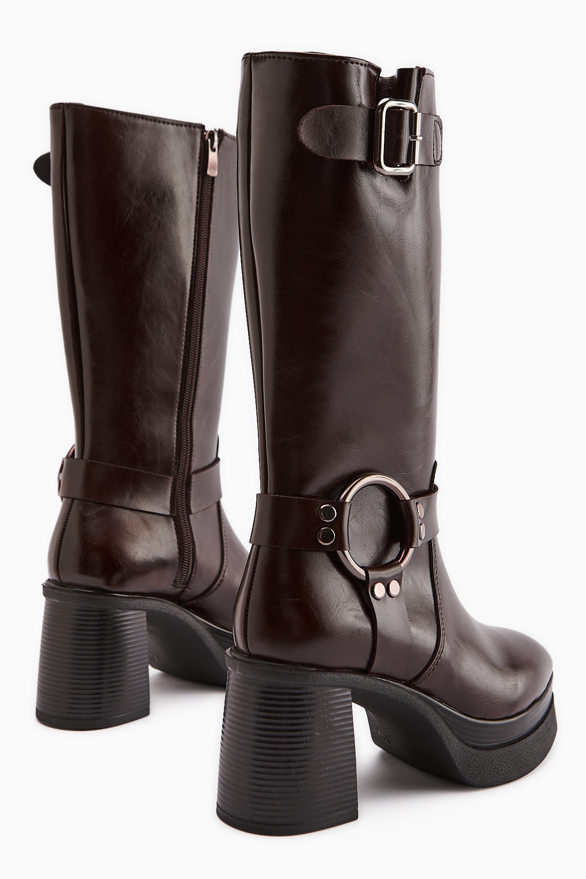 Beris Bordo Toka Detaylı Platform Topuklu Kadın Çizme
