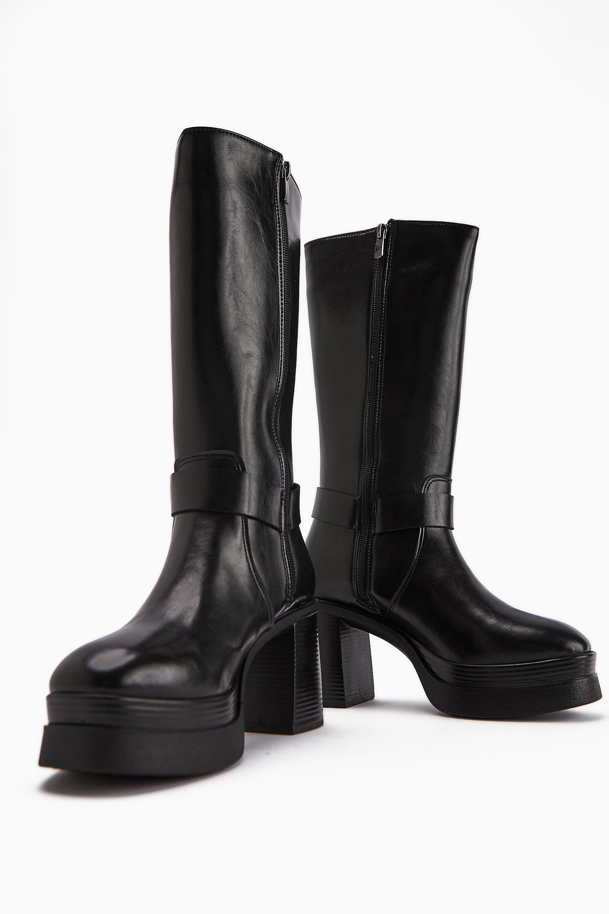 Beris Siyah Toka Detaylı Platform Topuklu Kadın Çizme