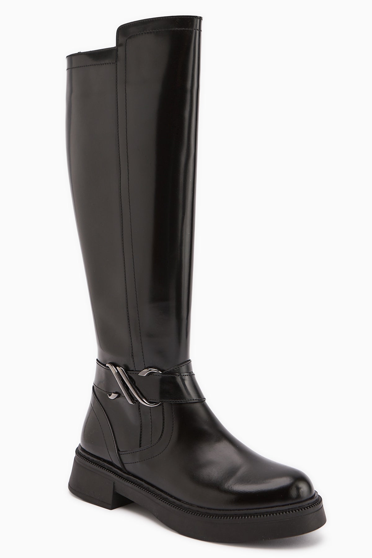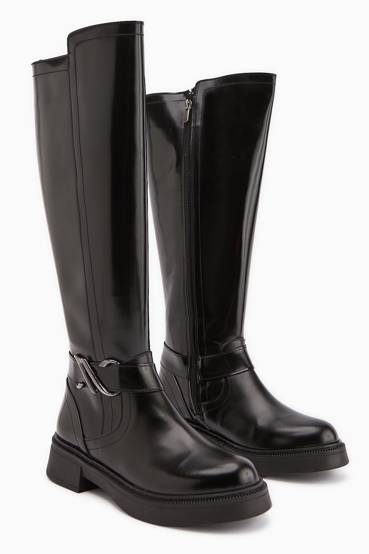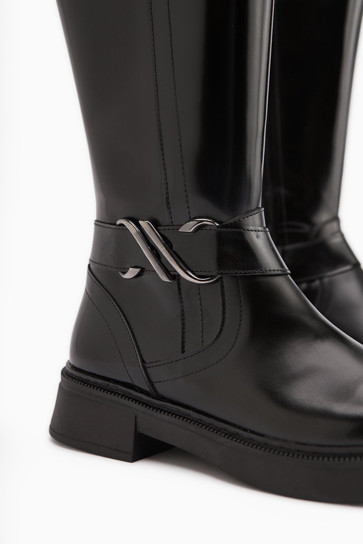 Birgita Siyah Rugan Toka Detaylı Fermuarlı Çizme