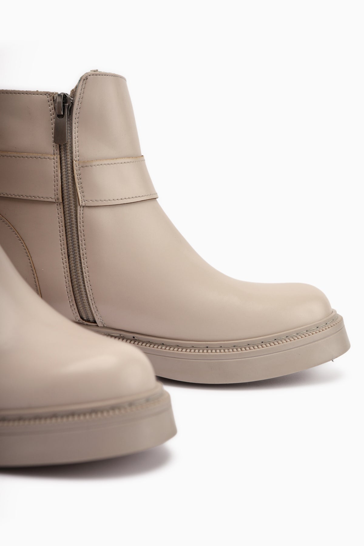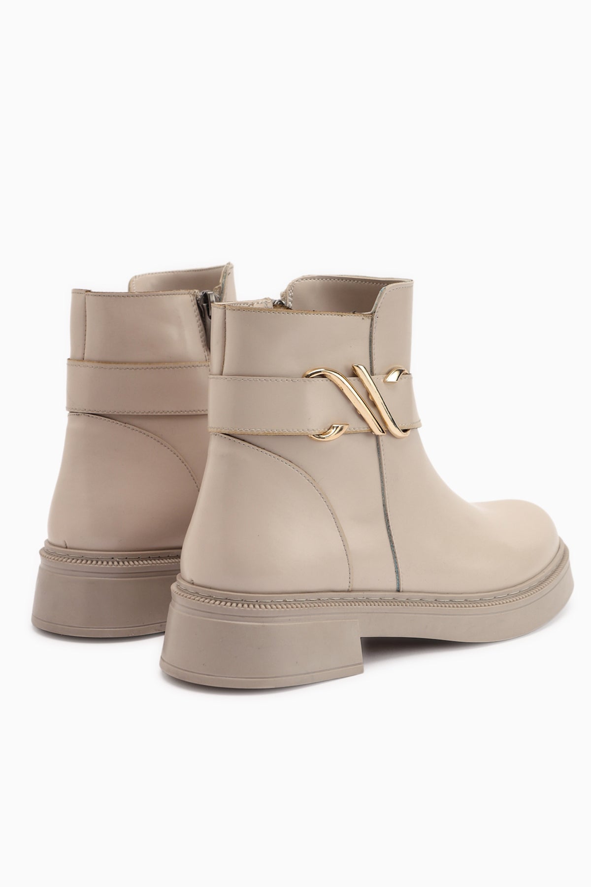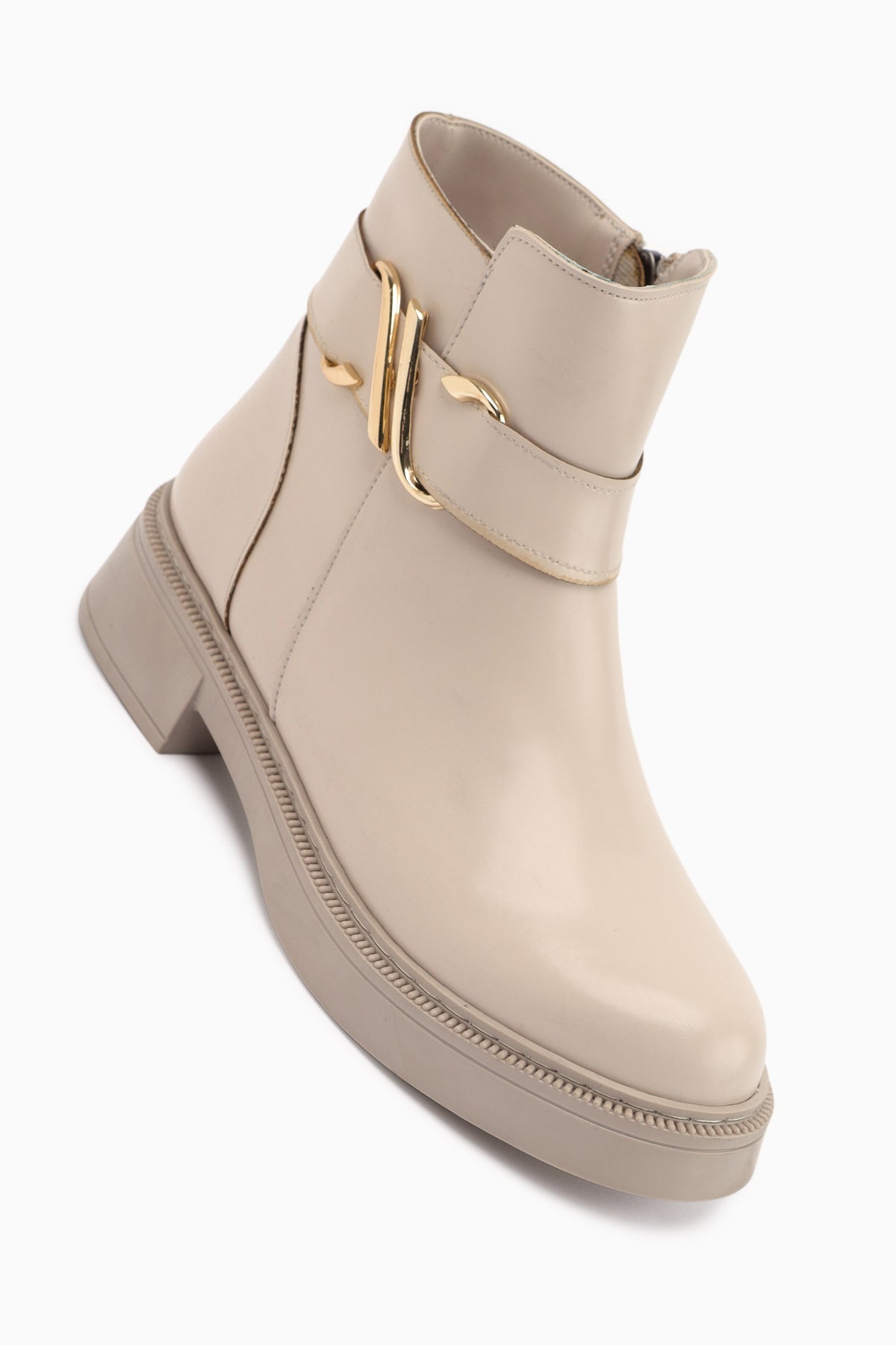 Birta Bej Toka Detaylı Oval Burunlu Bot