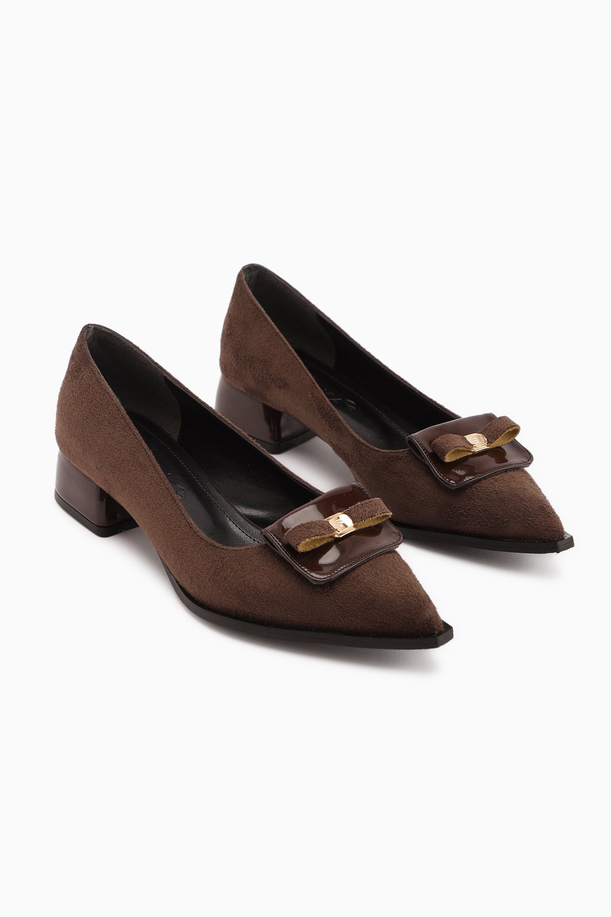 Boel Kahve Süet Tokalı Kısa Topuklu Kadın Ayakkabı