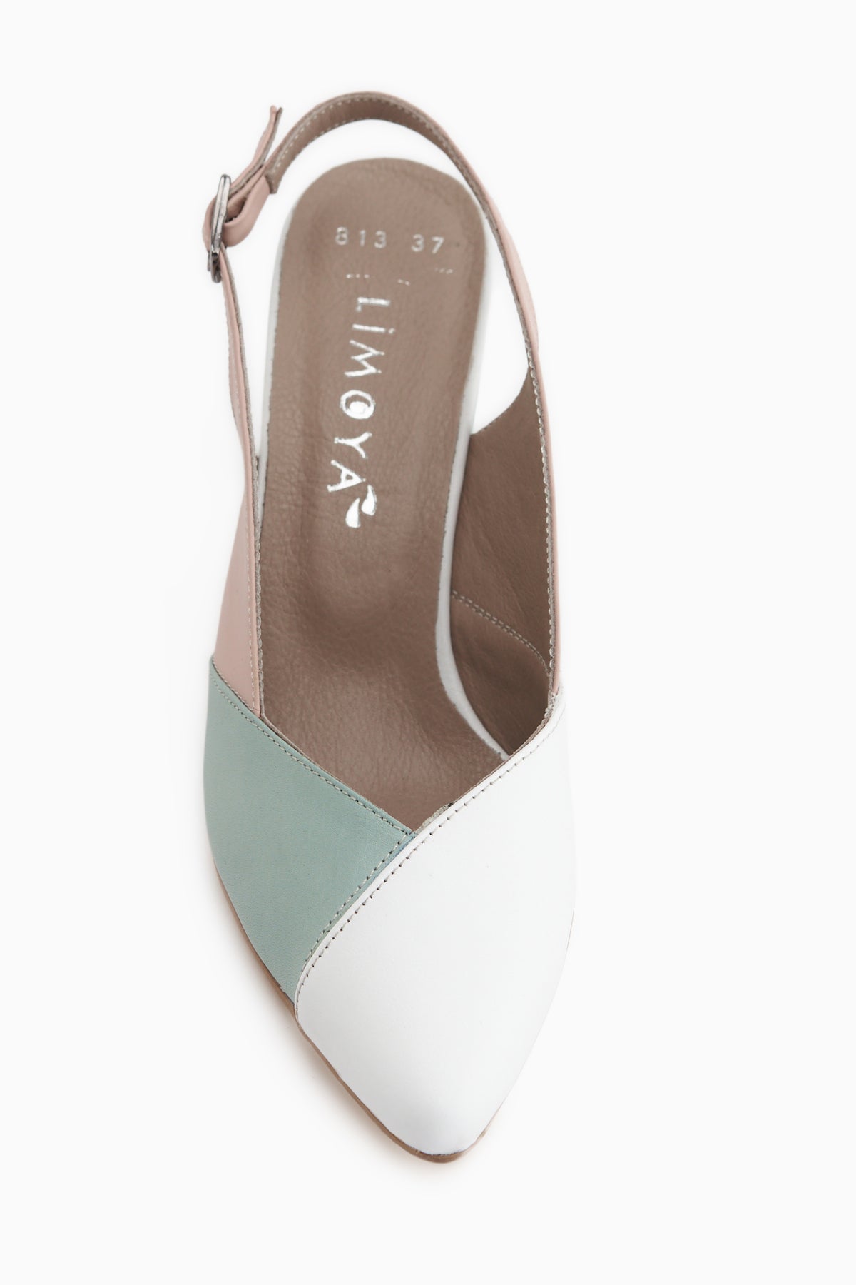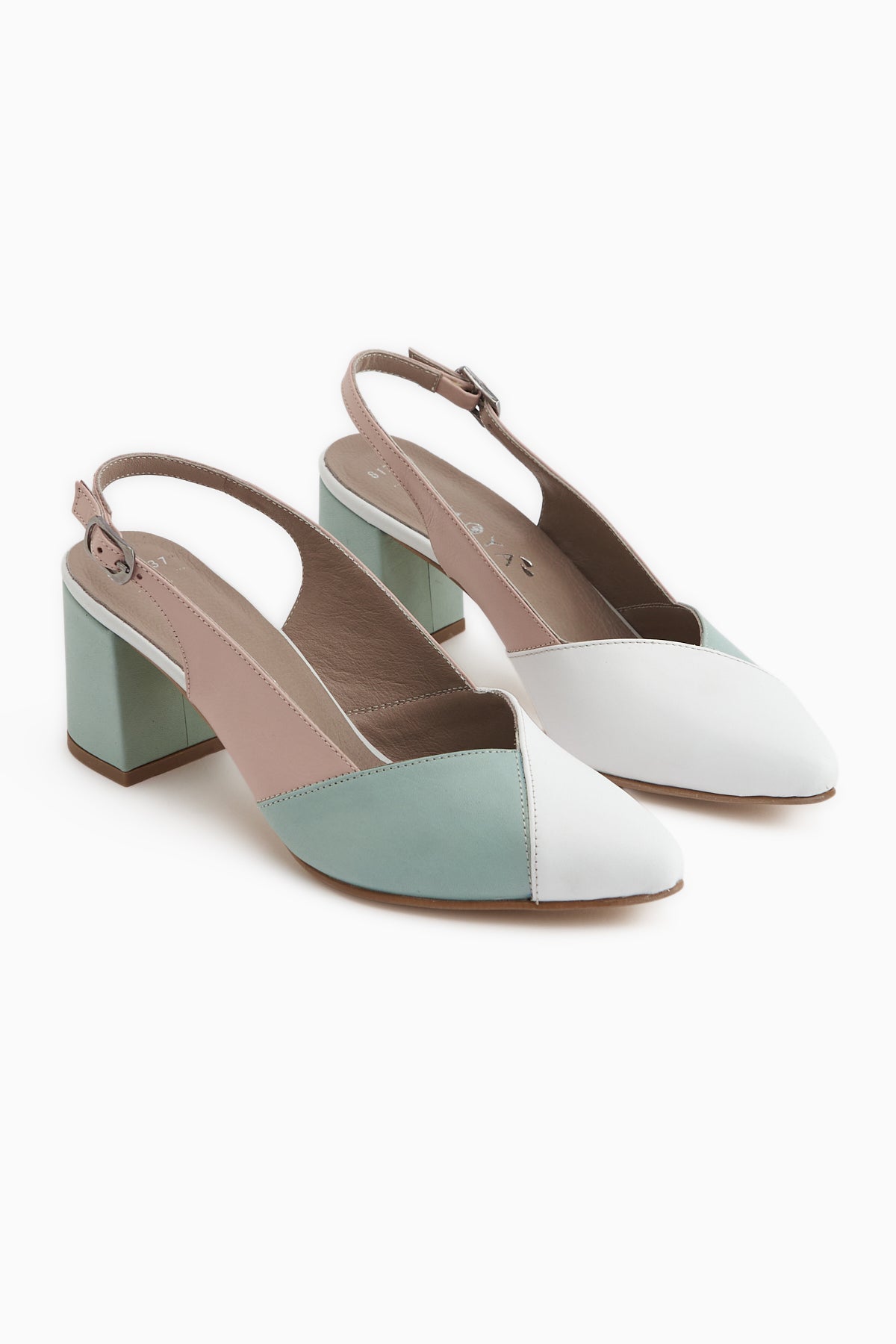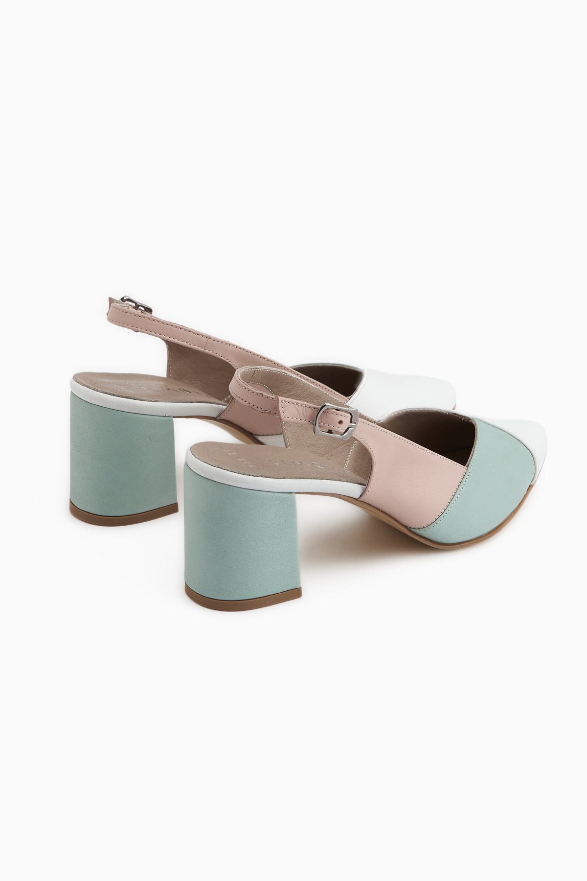 Brenda Hakiki Deri Beyaz Yeşil Kadın Topuklu Sandalet