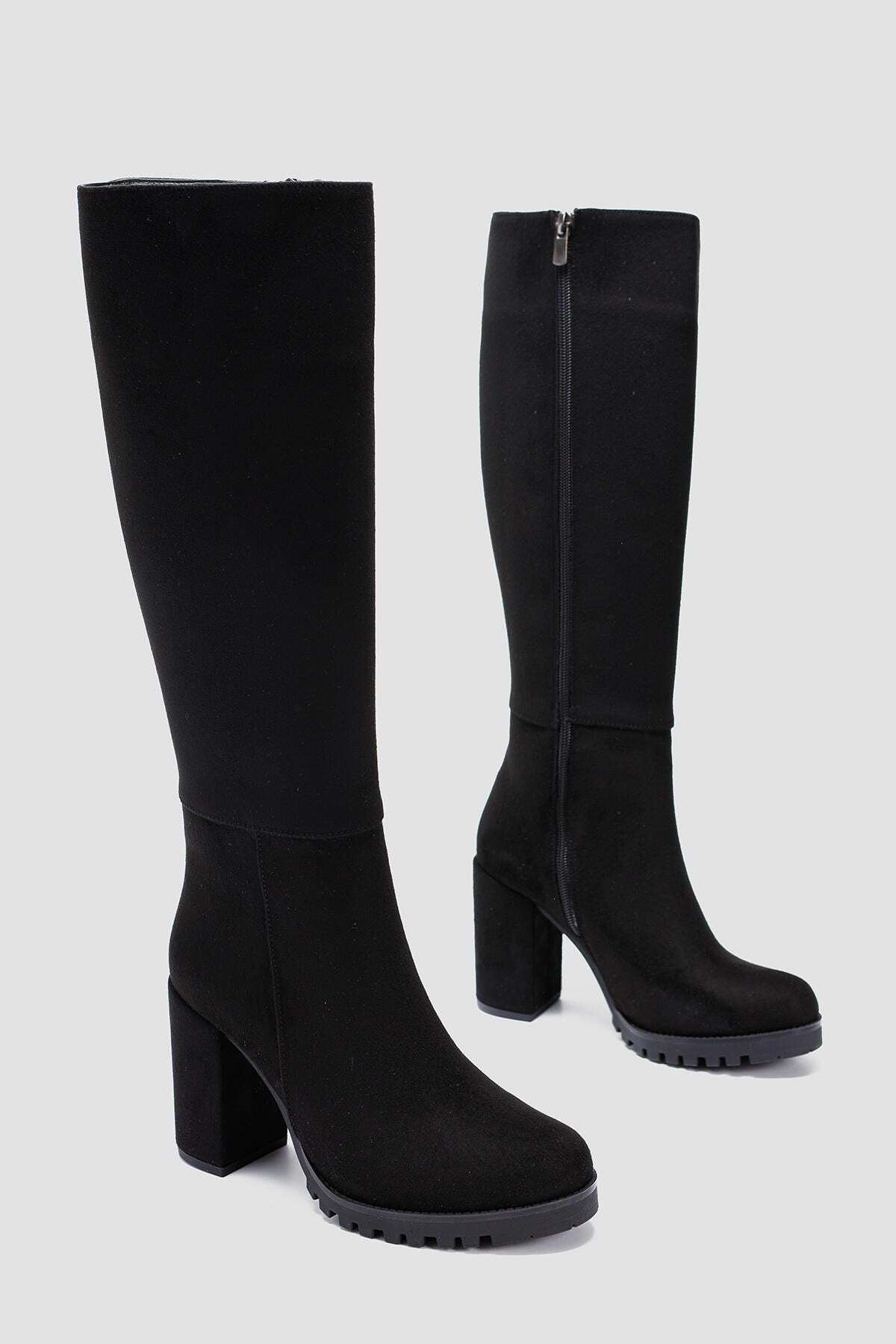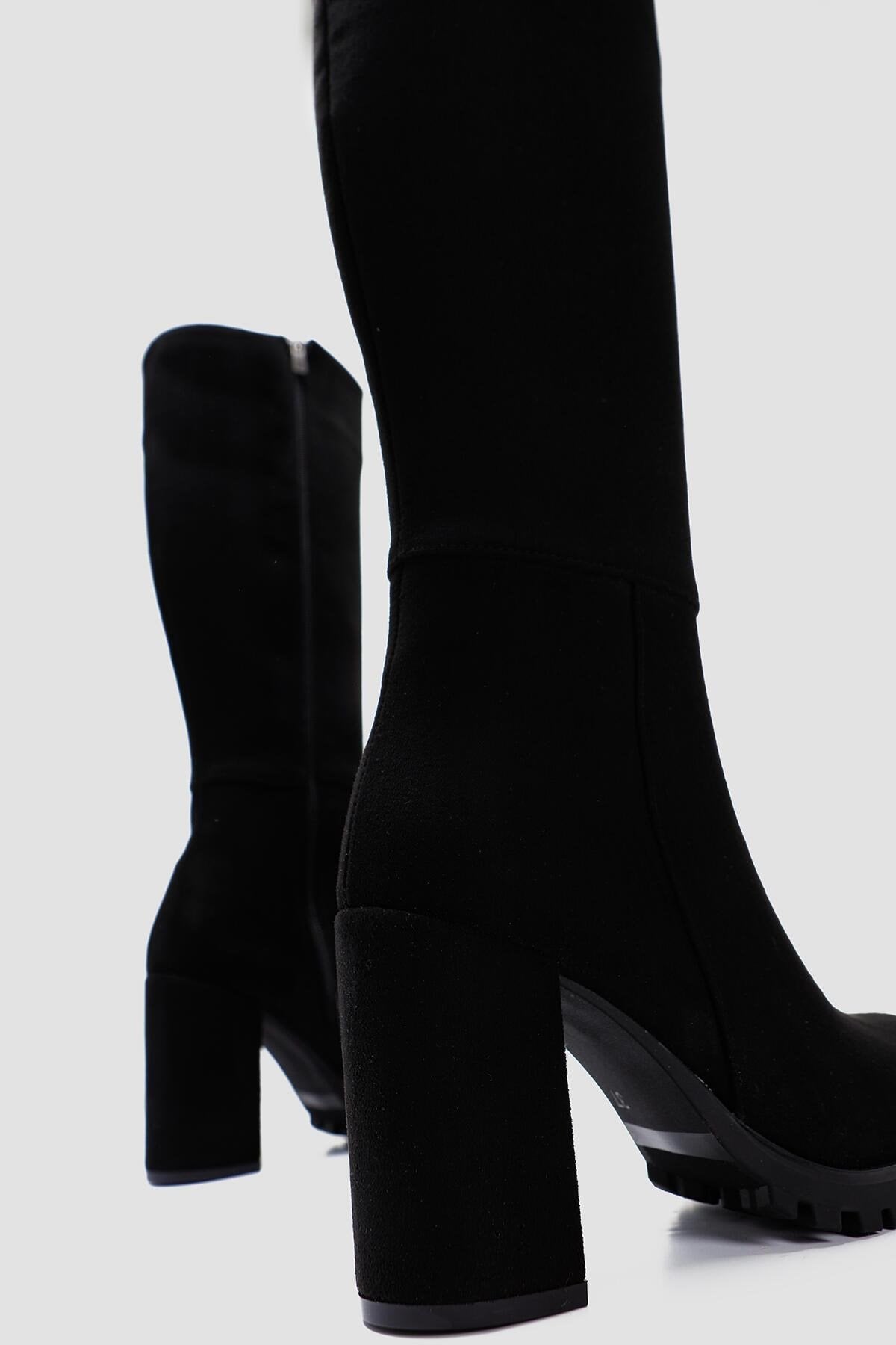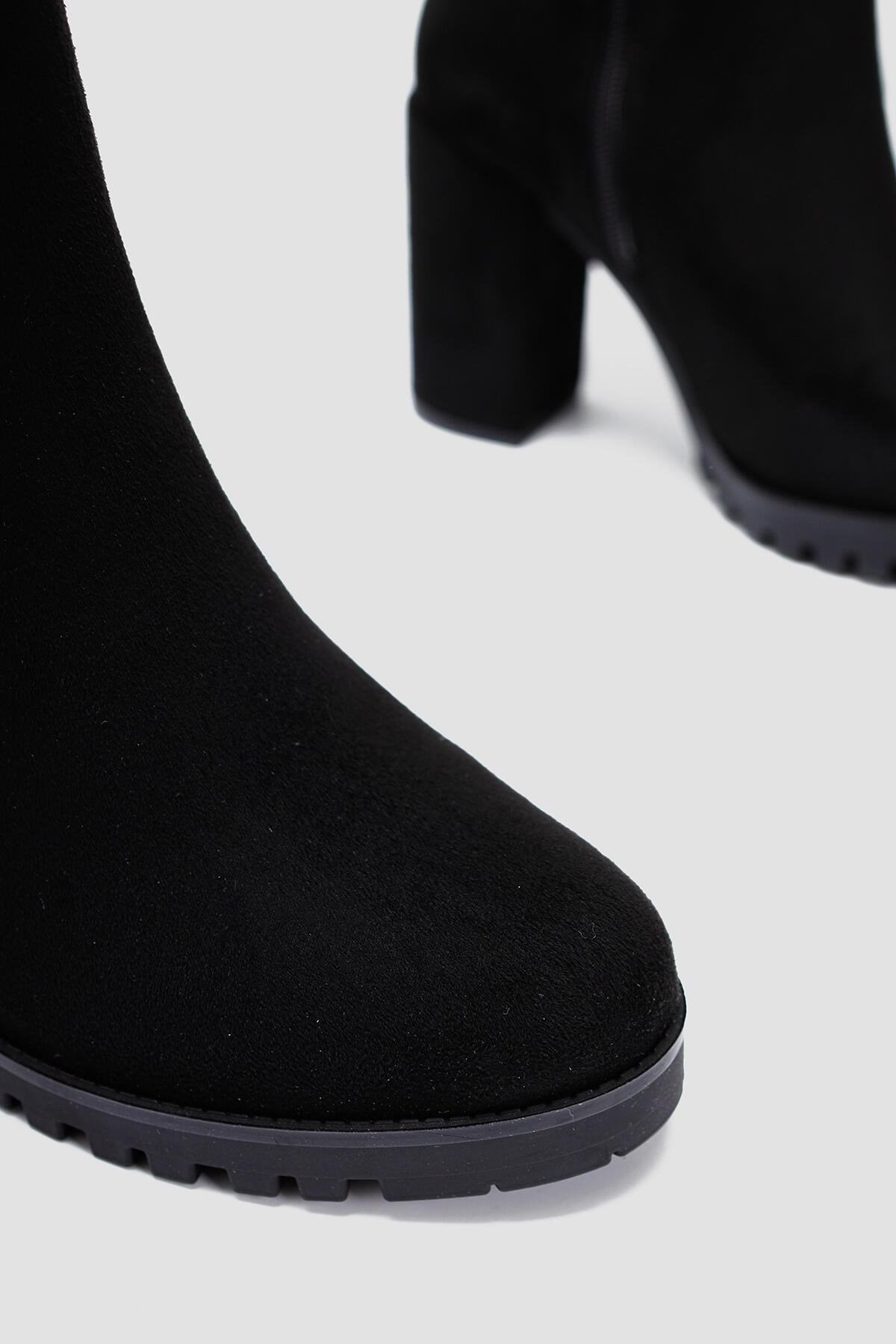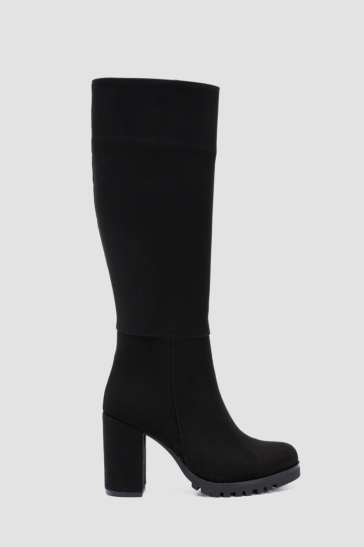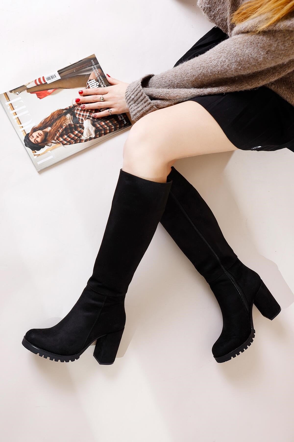 Brooklynn Siyah Süet Kalın Topuklu Diz Altı Çizme