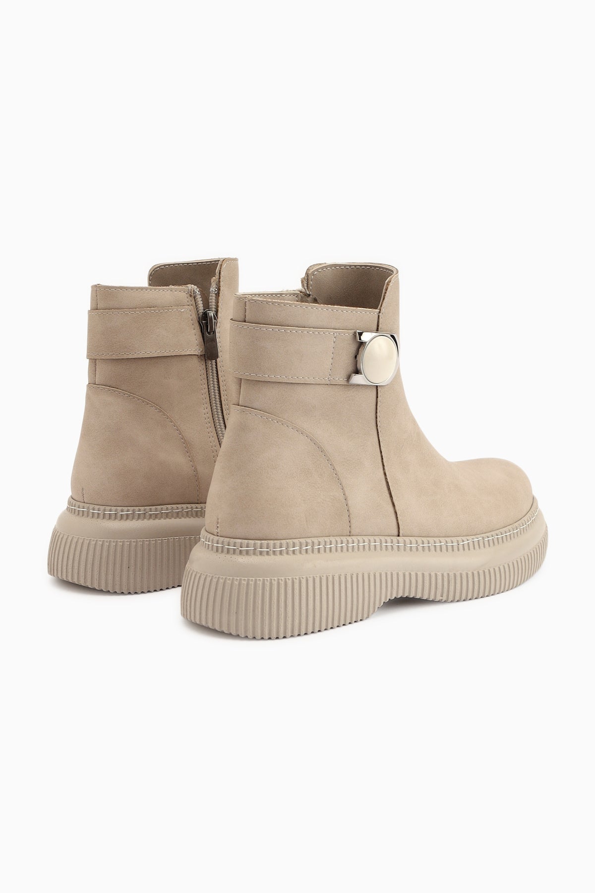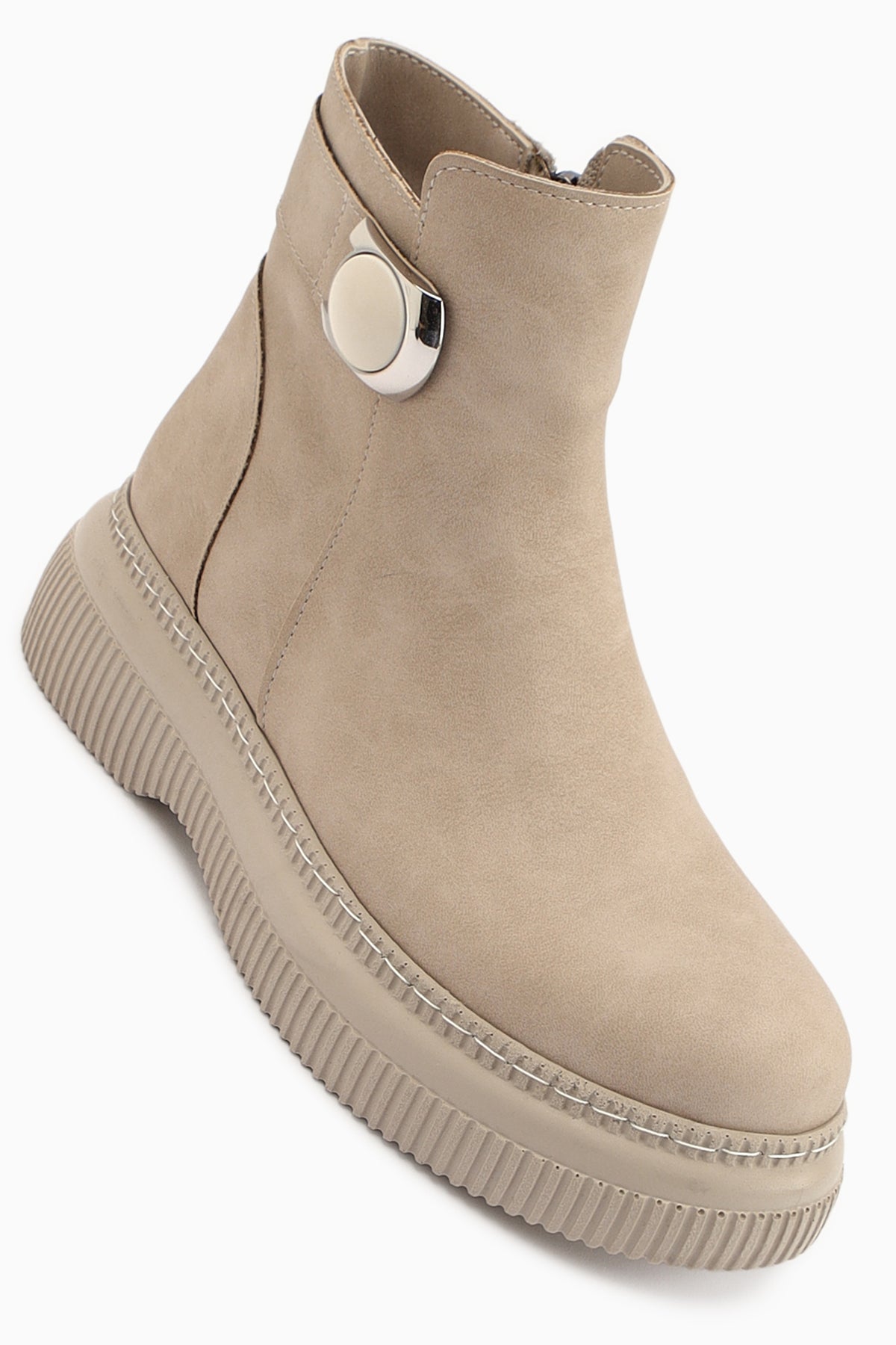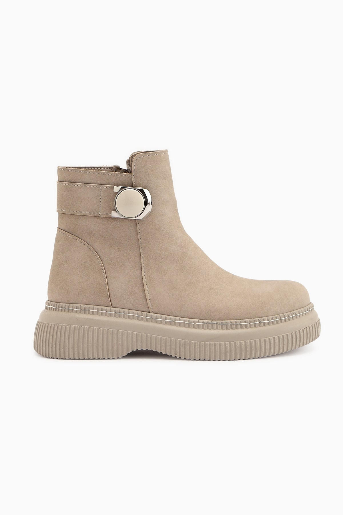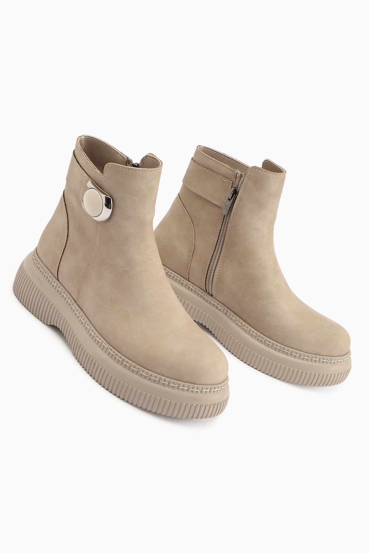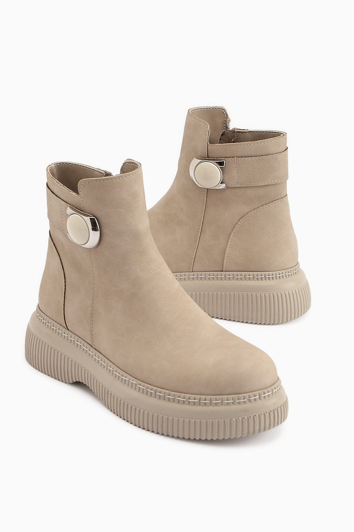Caiza Krem Toka Detaylı Oval Burunlu Bot