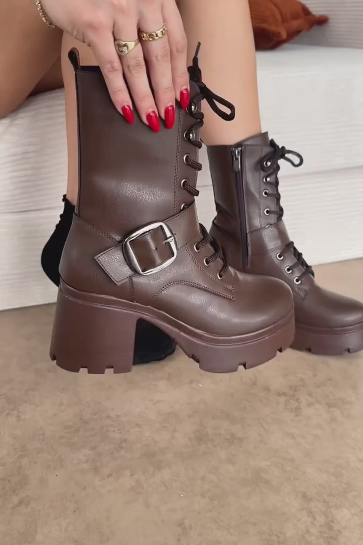 Caklin Kahve Kemerli Kadın Platform Topuklu Postal Bot
