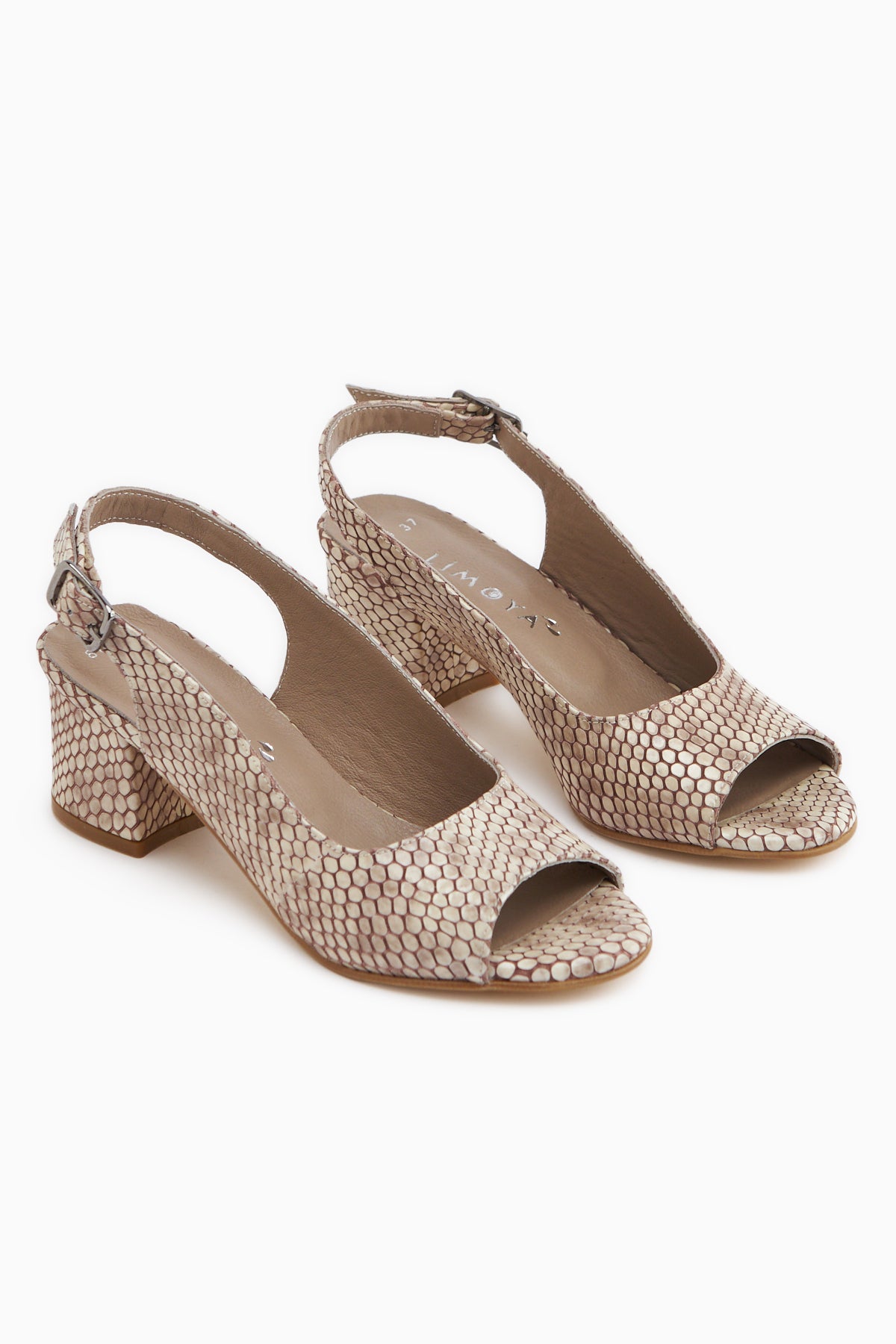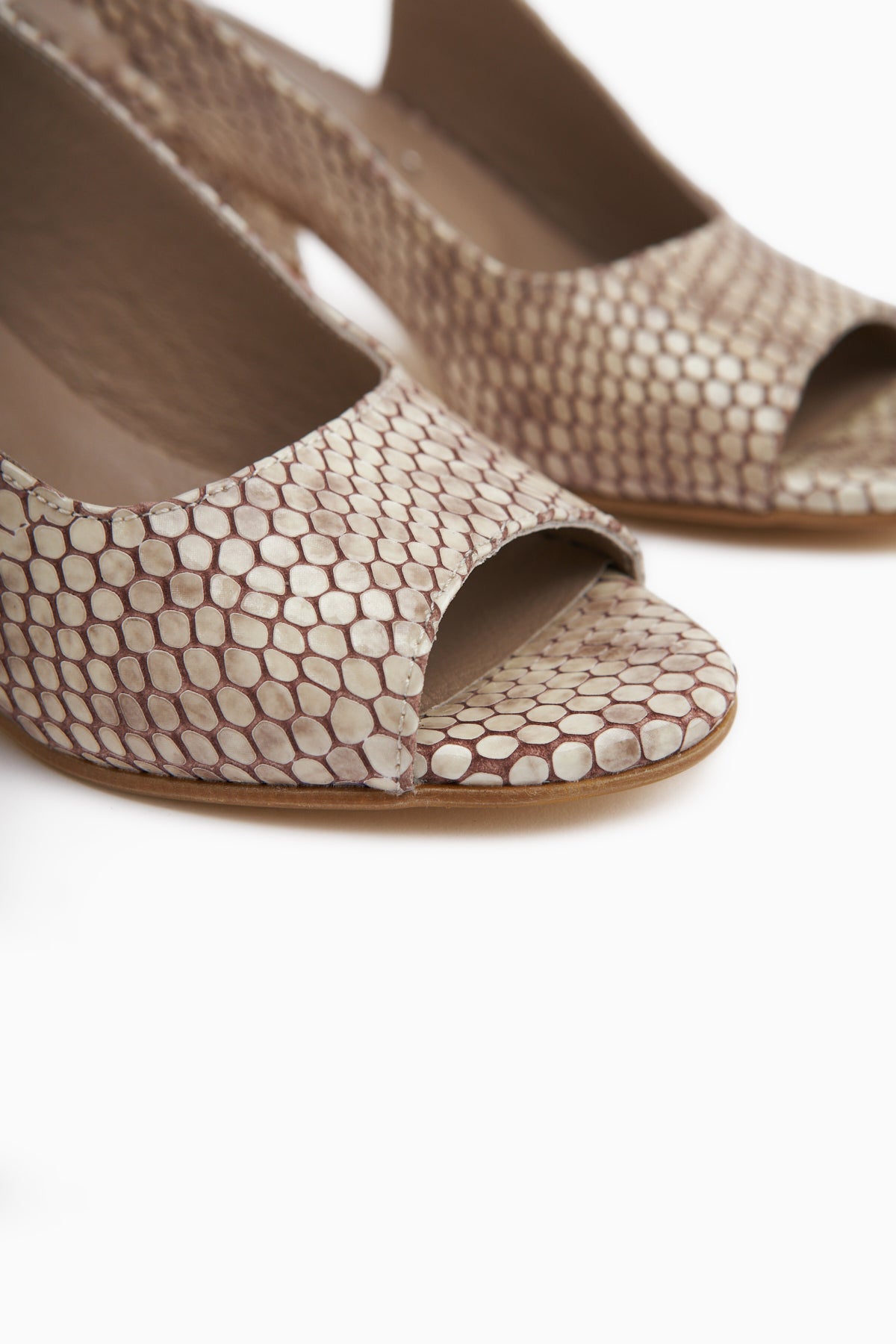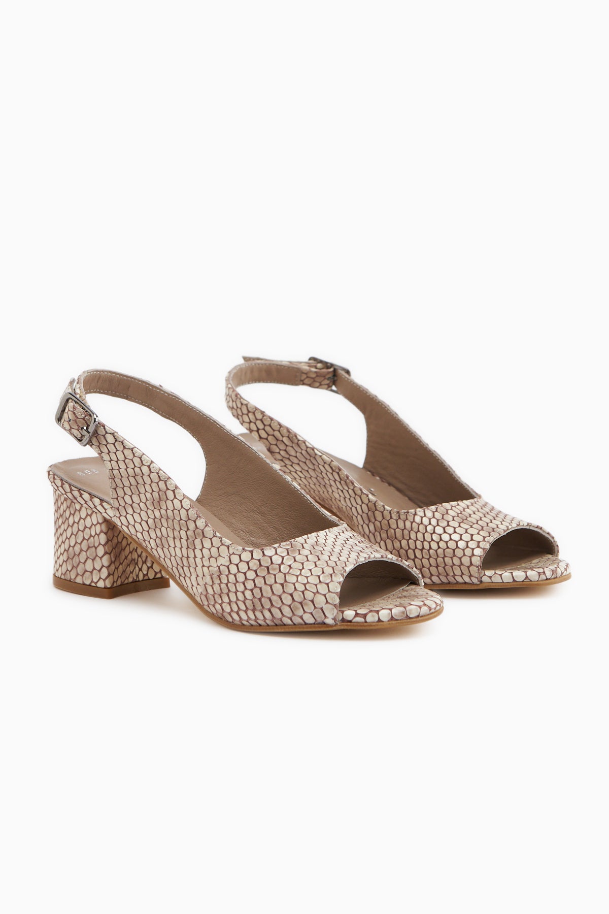 Catia Hakiki Deri Bej Yılan Desenli Kadın Topuklu Sandalet