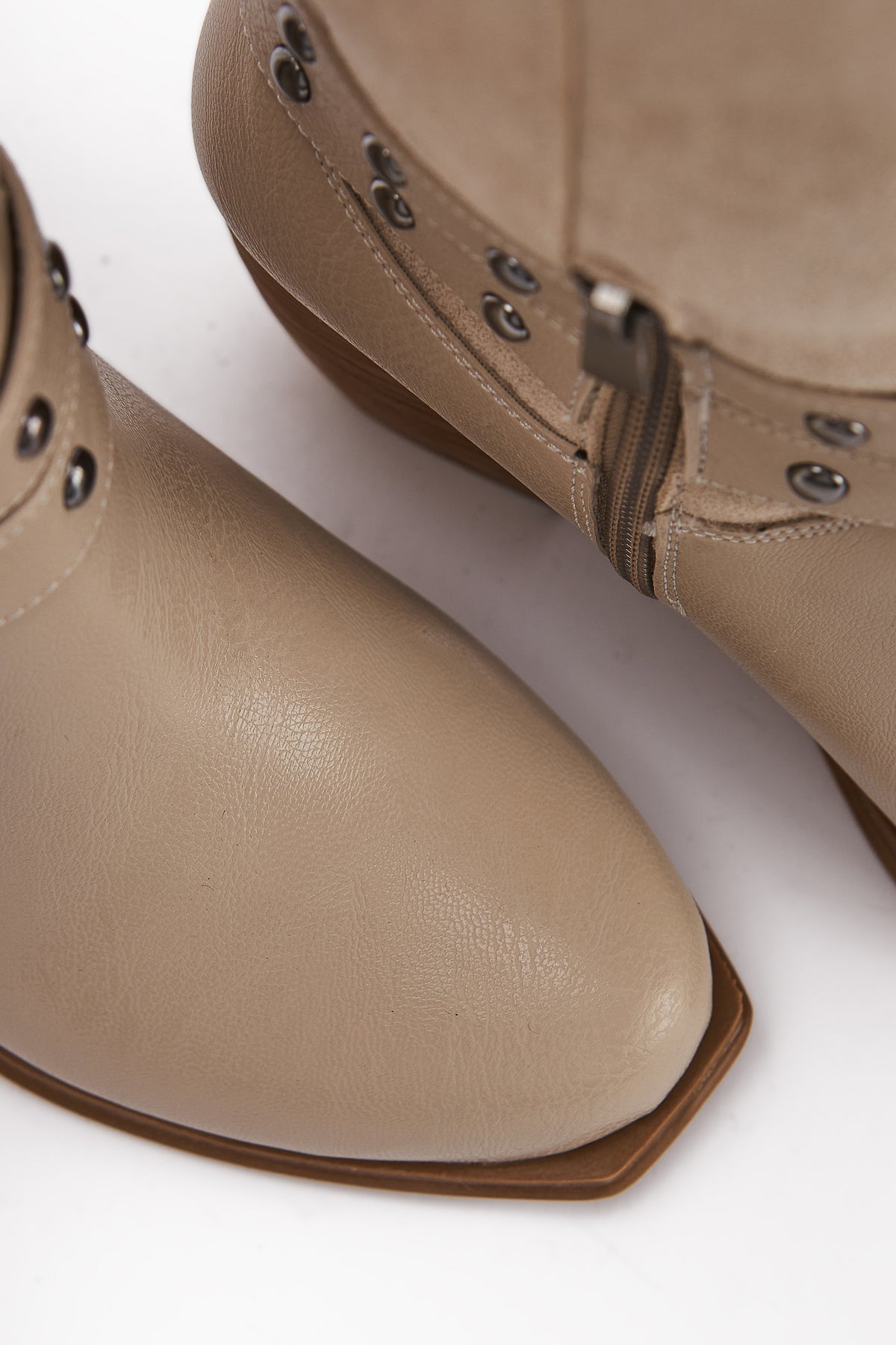 Catrin Bej Zımba Detaylı Topuklu Kadın Çizme