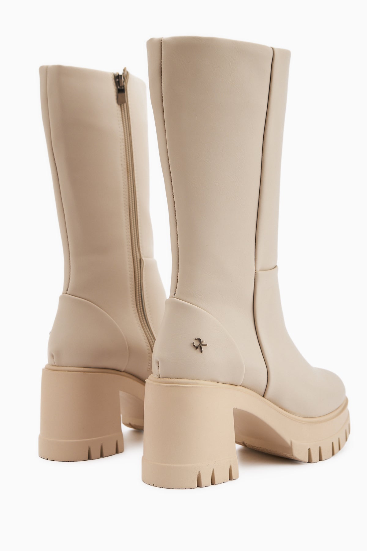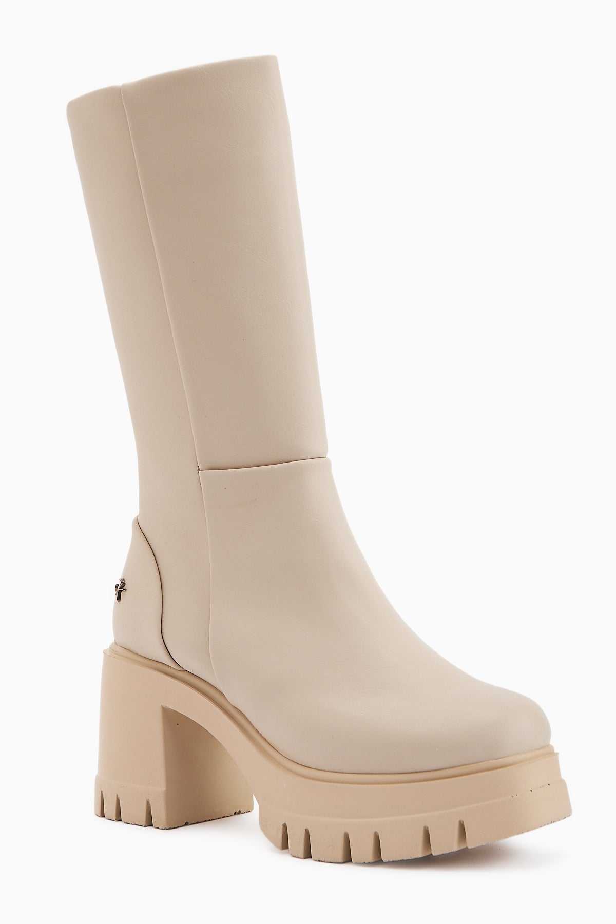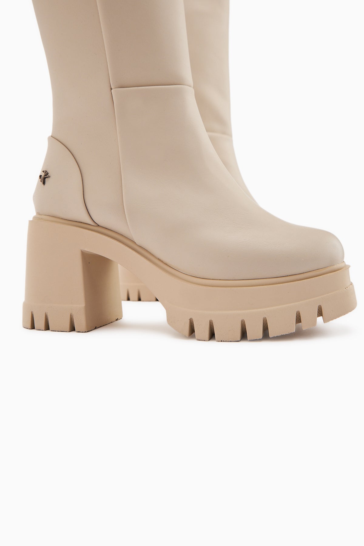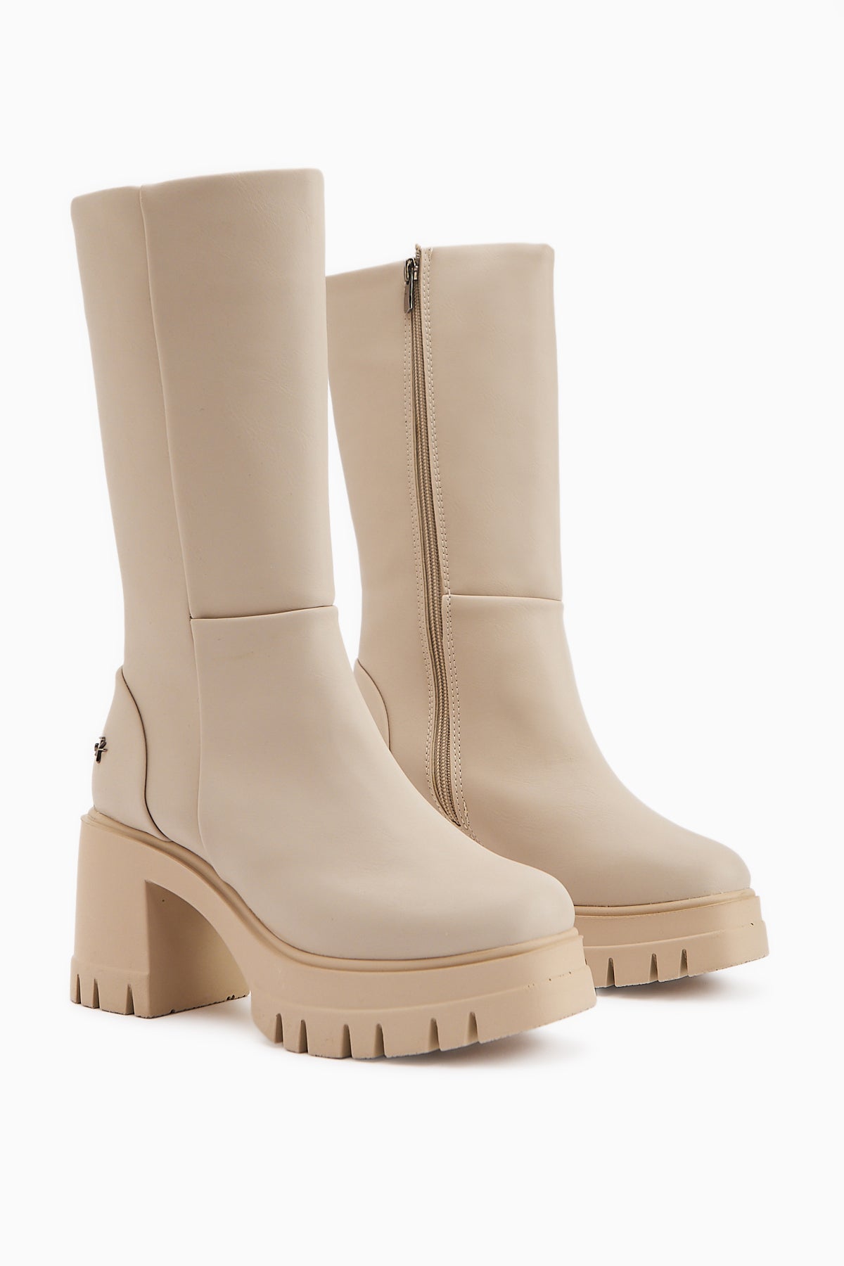 Chelsie Bej Yüksek Topuklu Platformlu Kısa Çizme