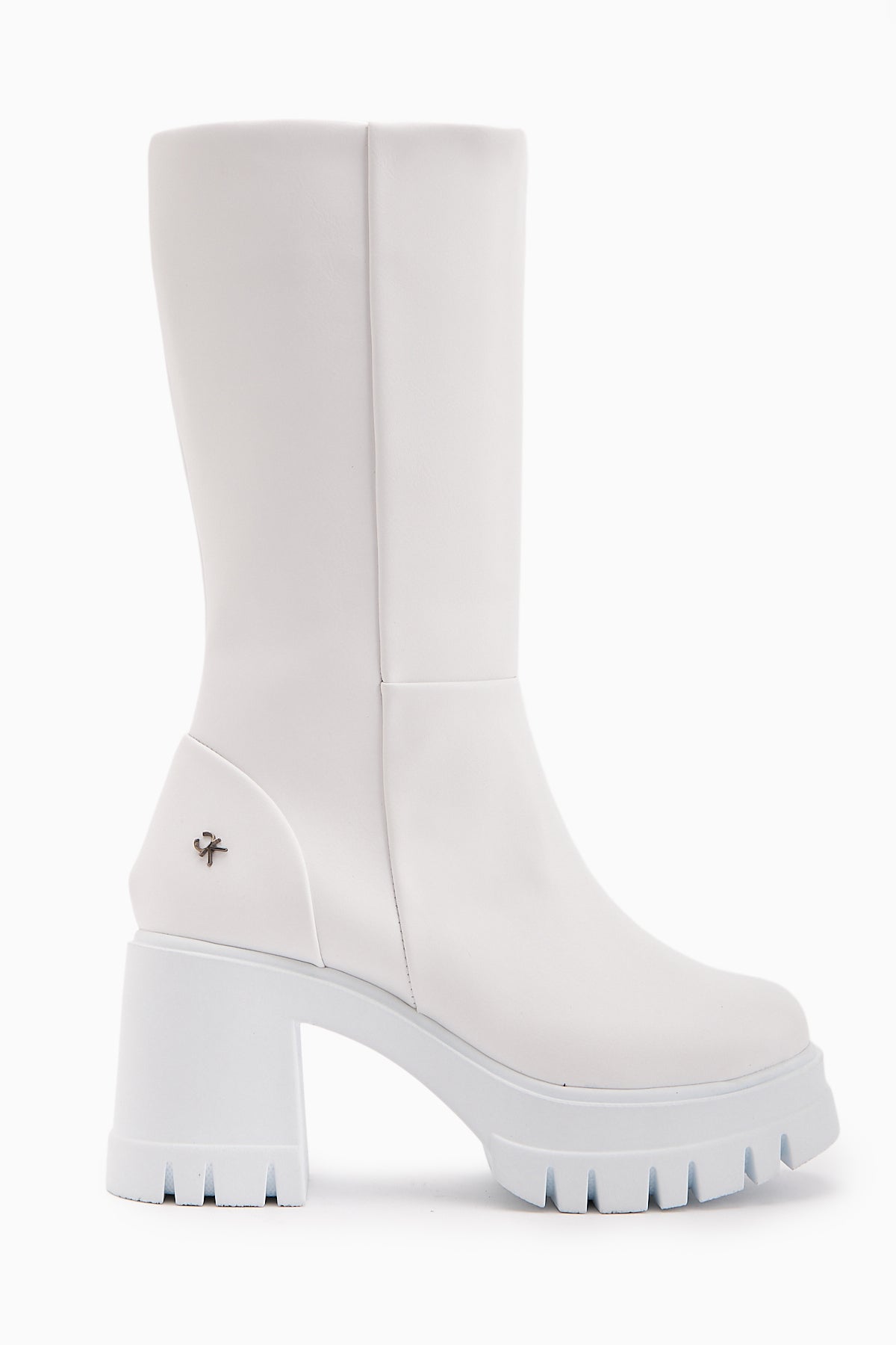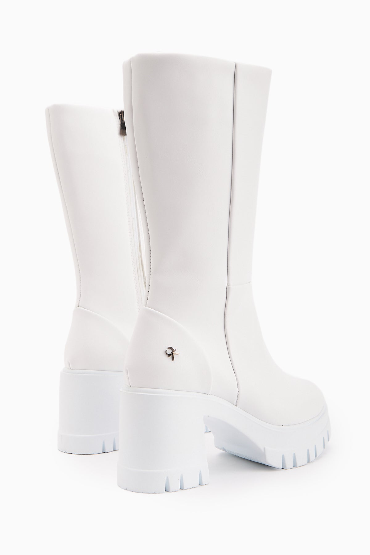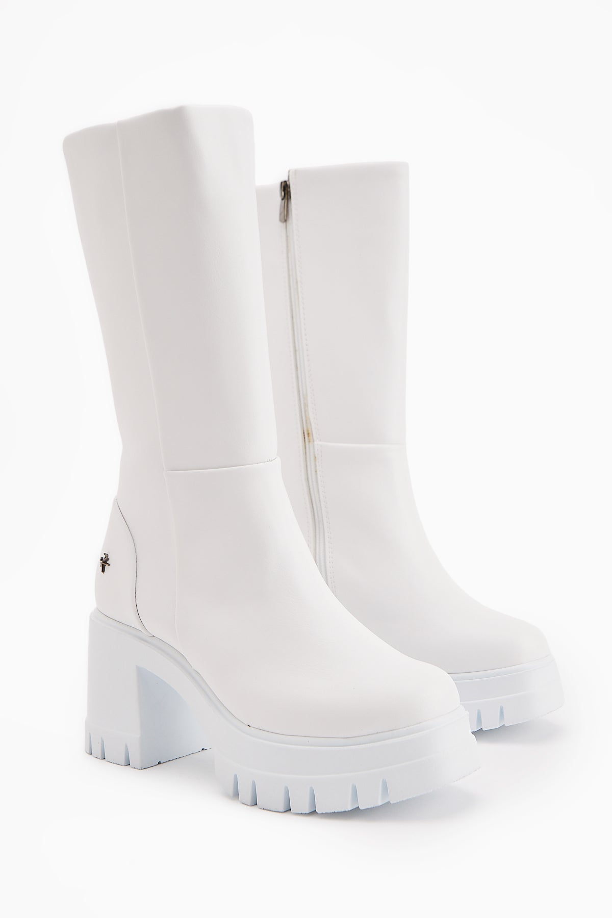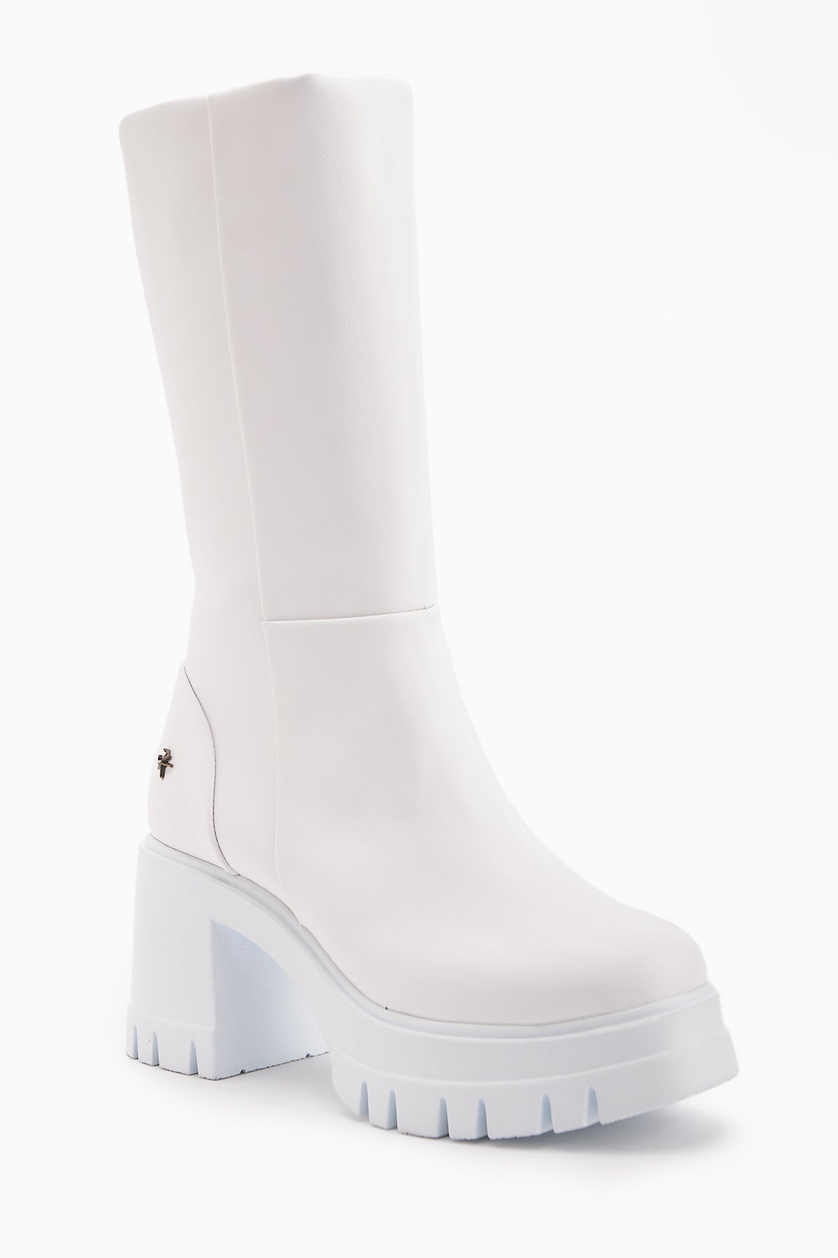 Chelsie Beyaz Yüksek Topuklu Platformlu Kısa Çizme
