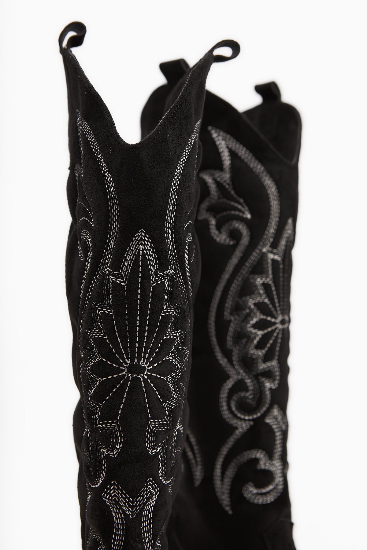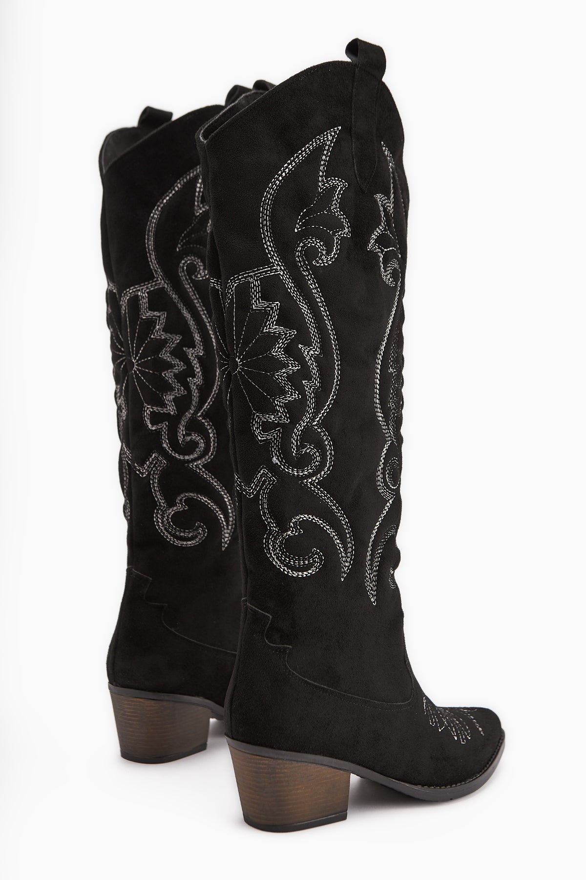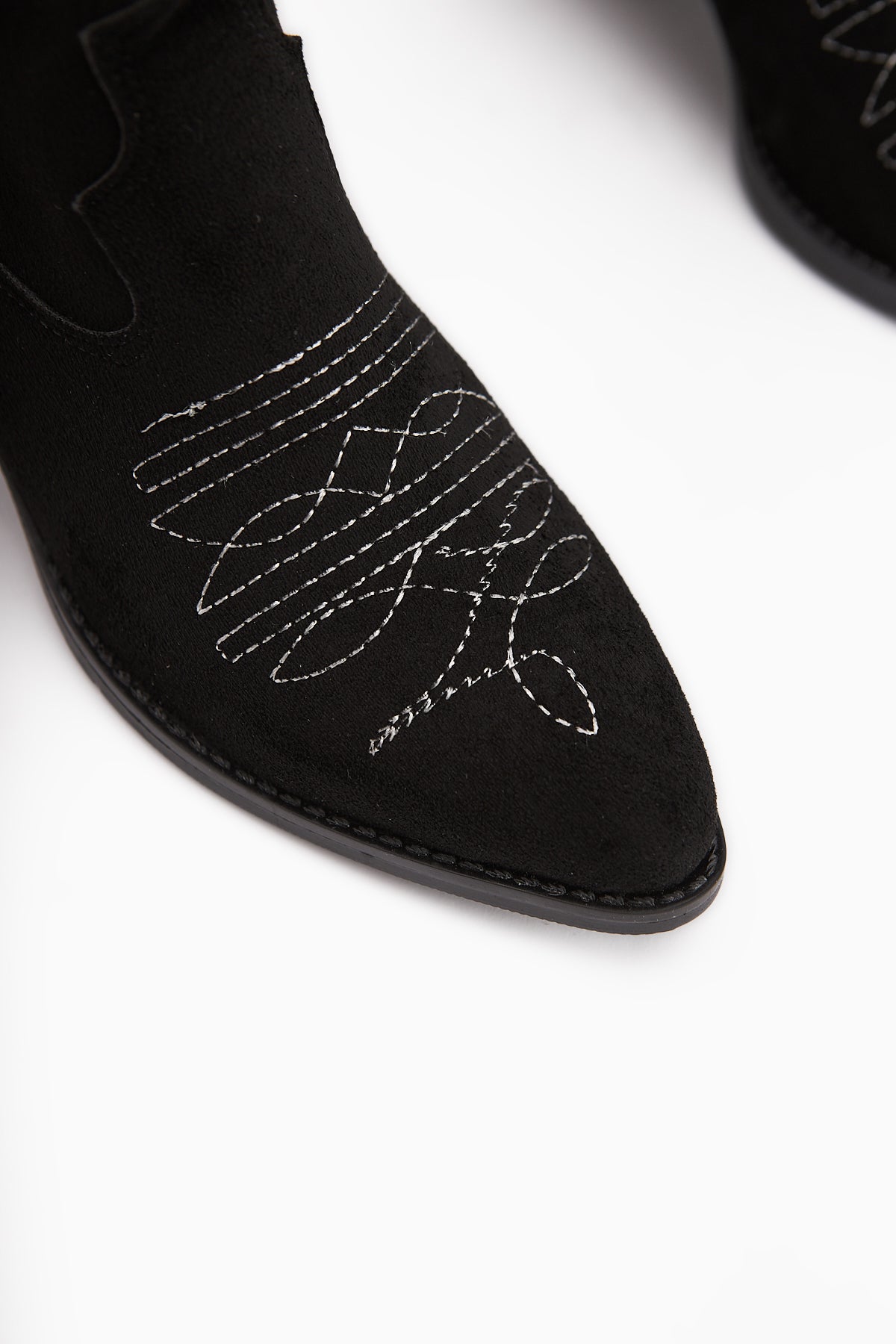 Dani Siyah Süet Nakış Detaylı Sivri Burunlu Western Çizme