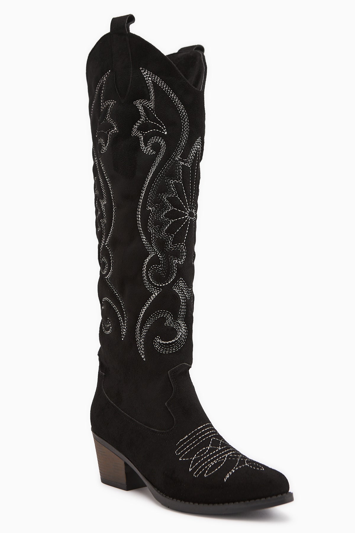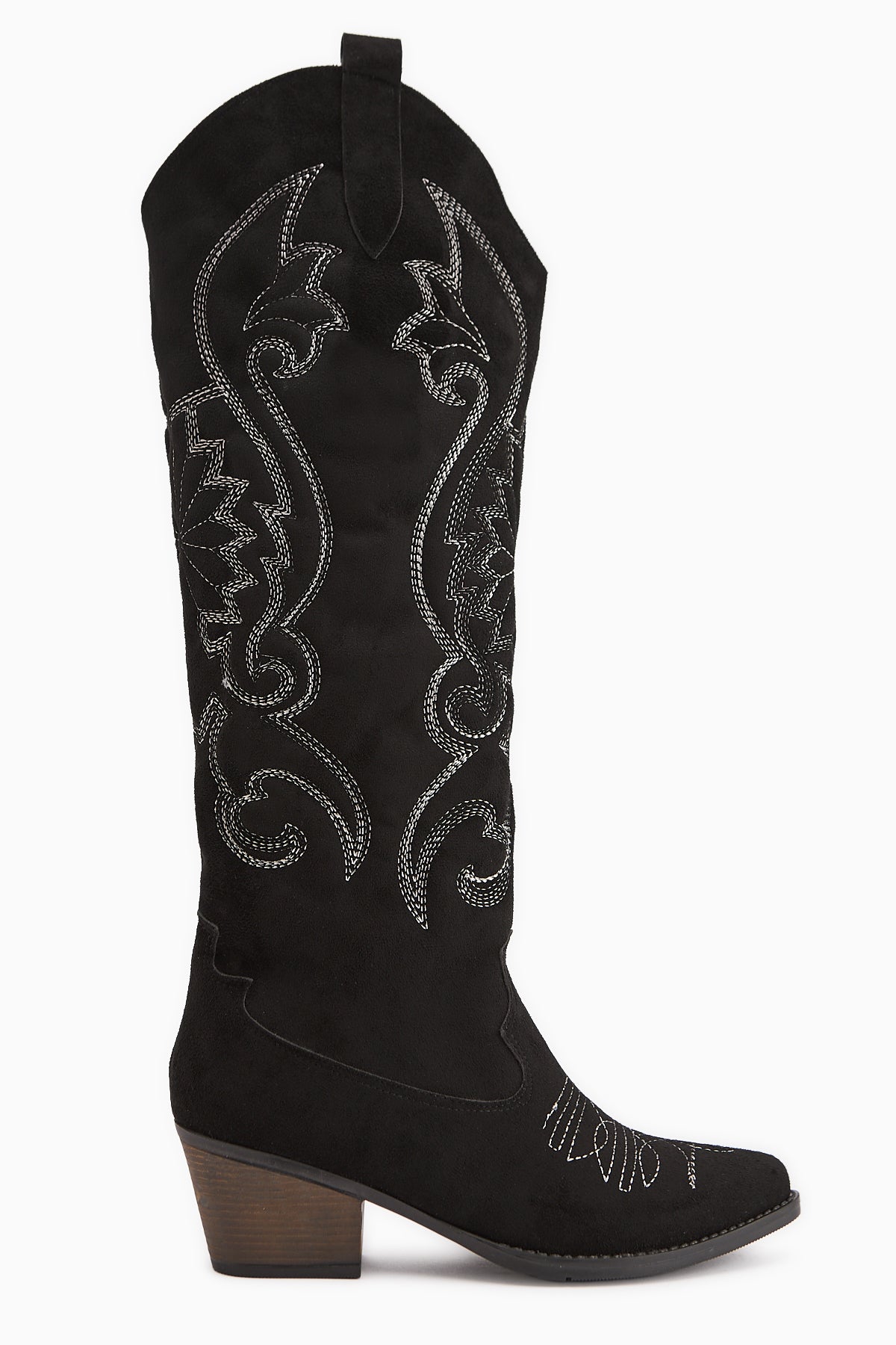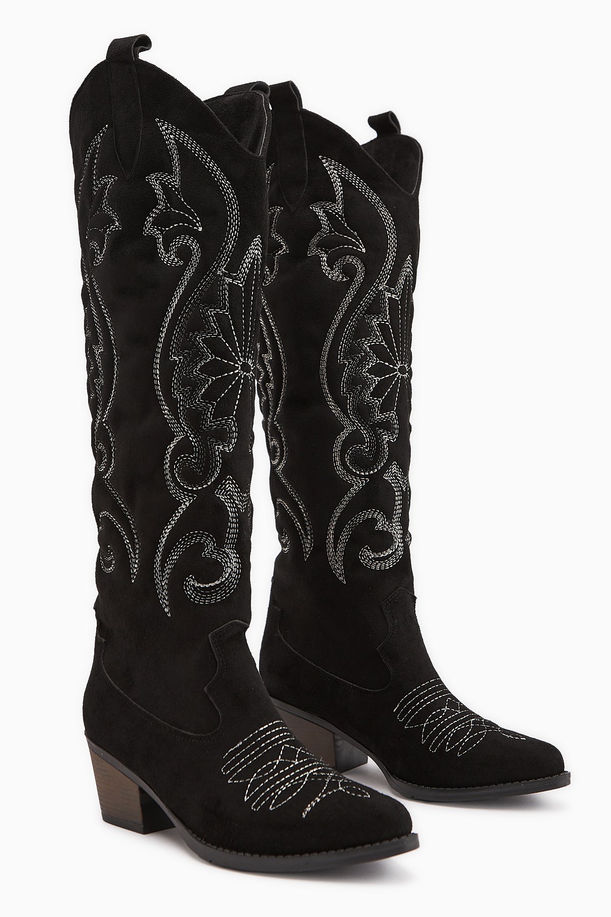 Dani Siyah Süet Nakış Detaylı Sivri Burunlu Western Çizme