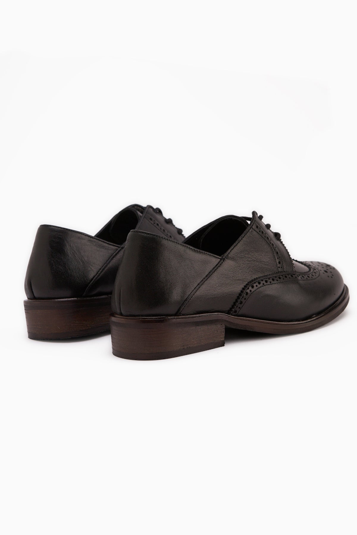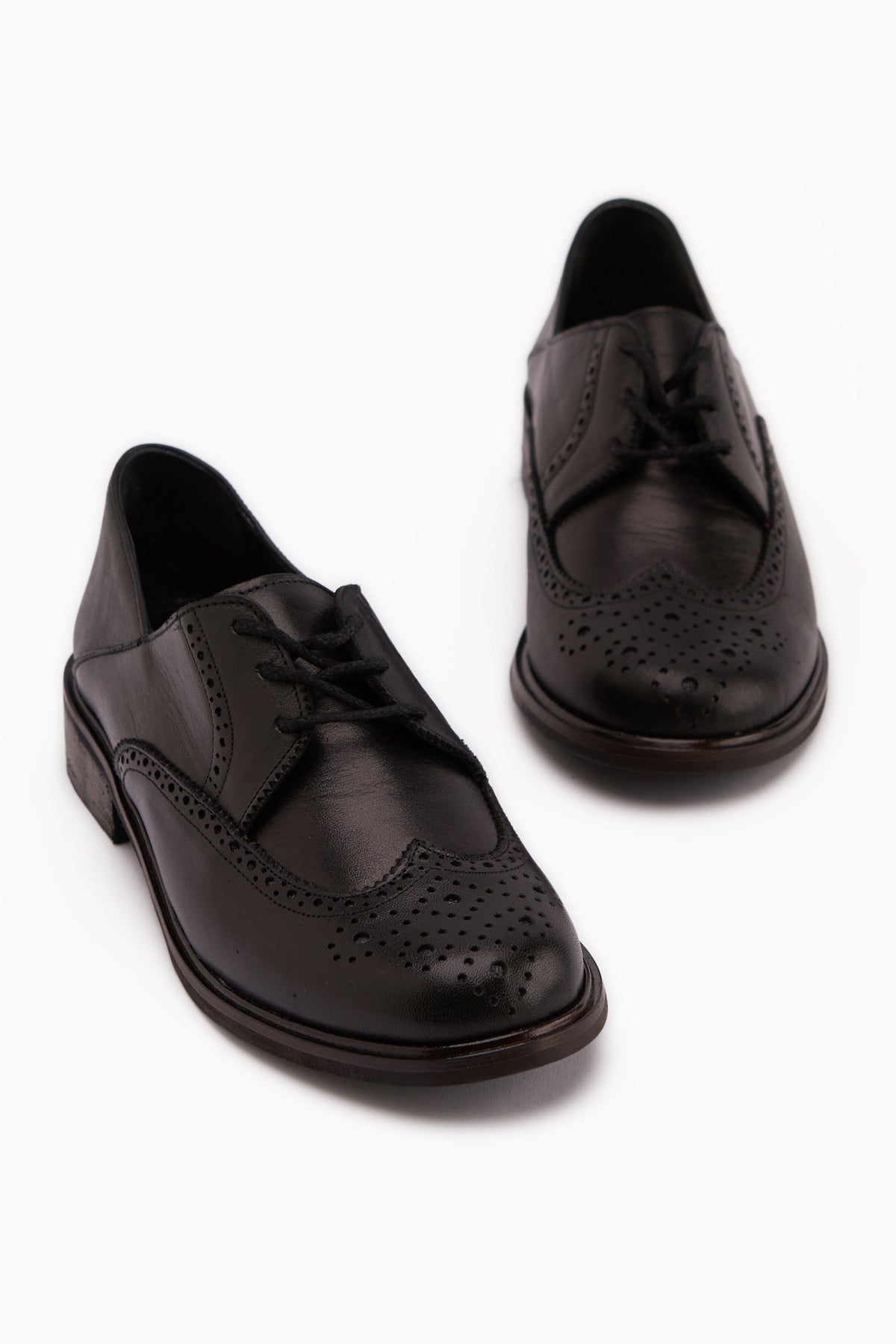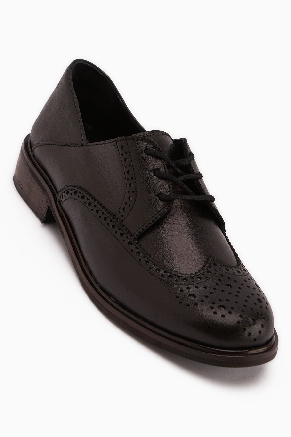 Dena Hakiki Deri Siyah Bağcıklı Brogue Oxford Kadın Ayakkabı