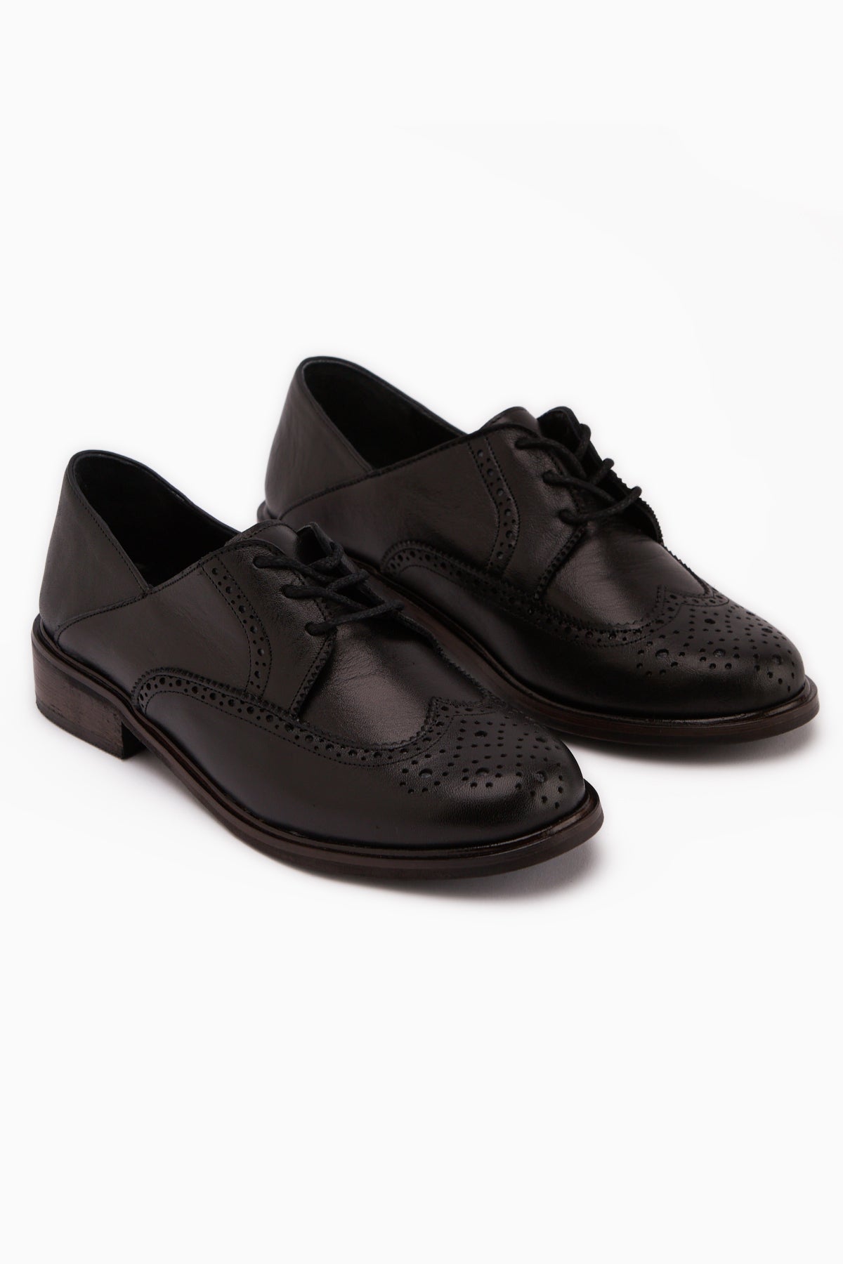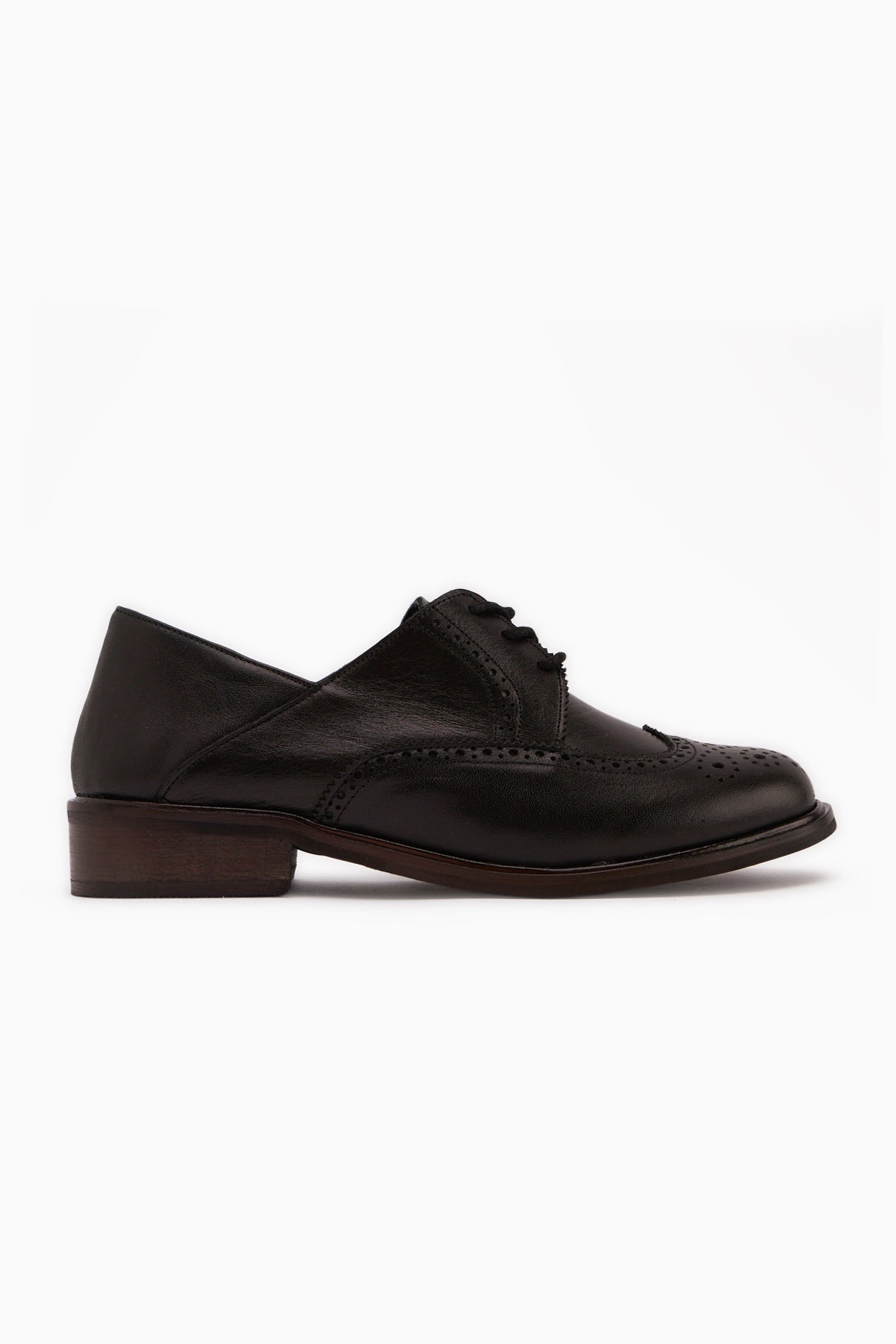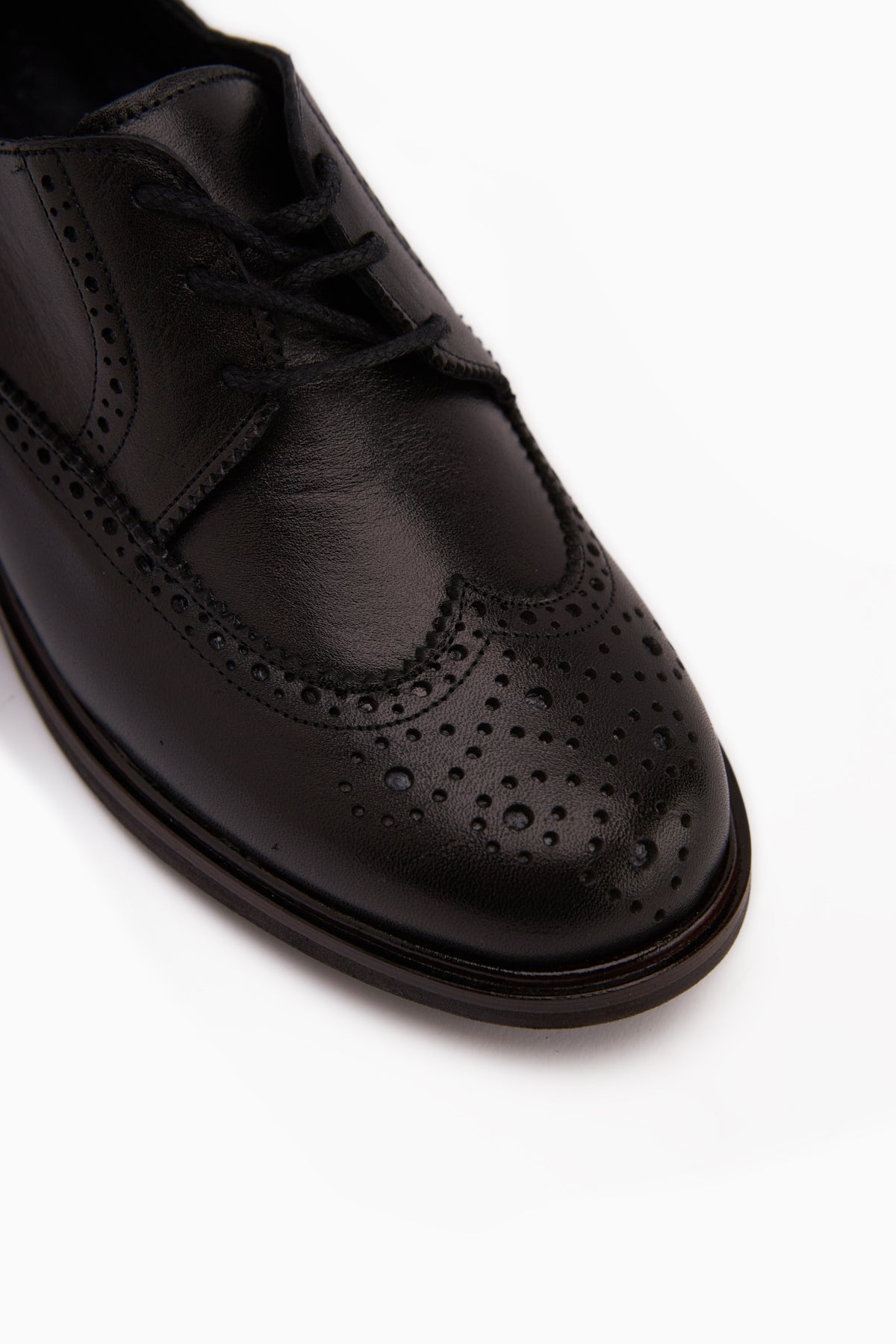 Dena Hakiki Deri Siyah Bağcıklı Brogue Oxford Kadın Ayakkabı