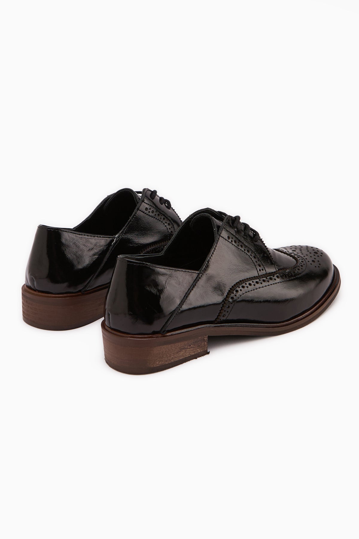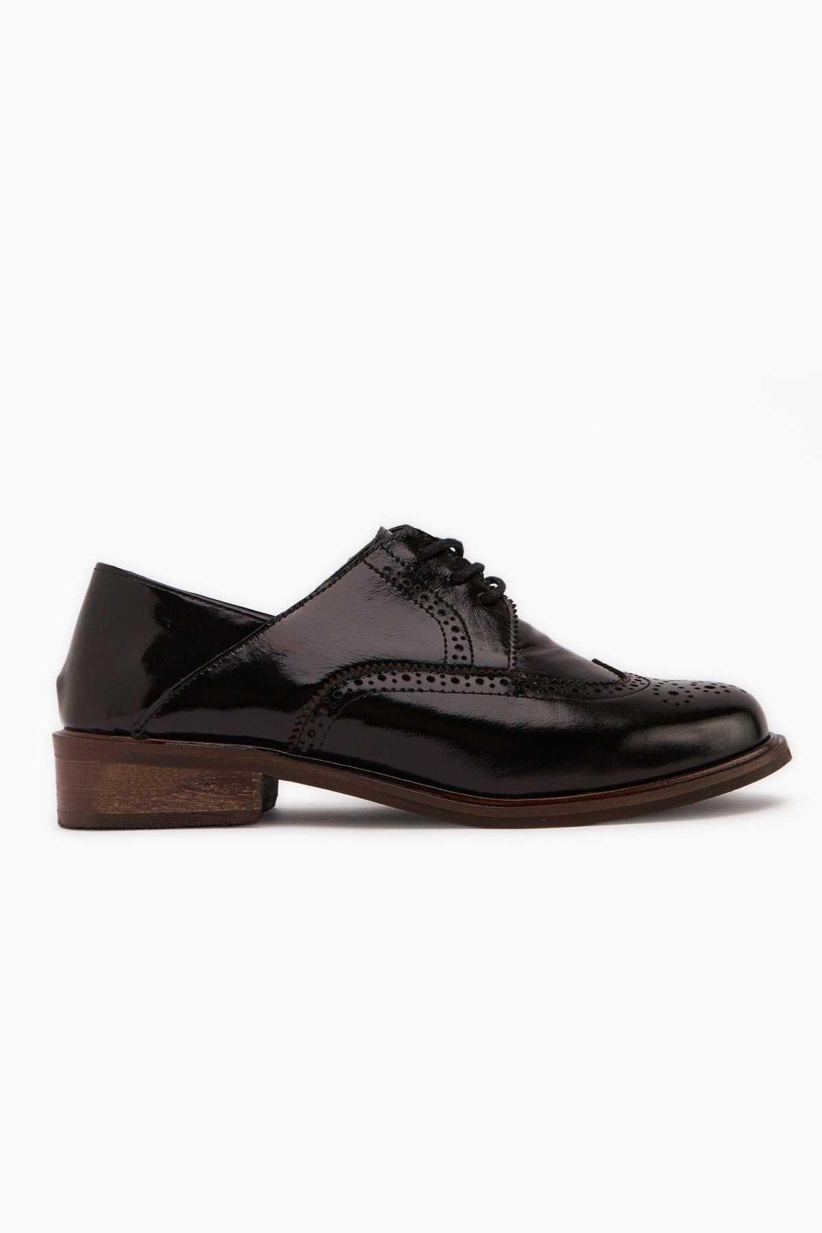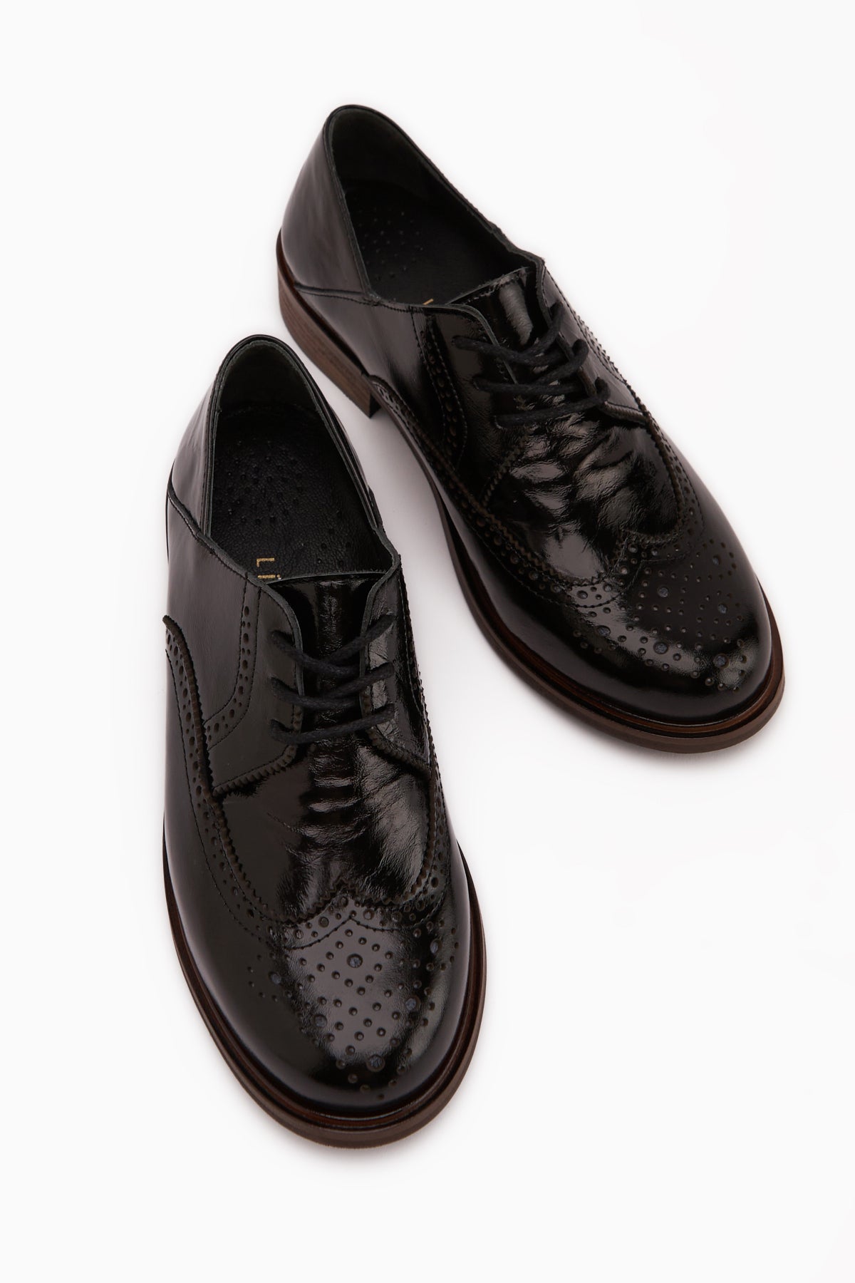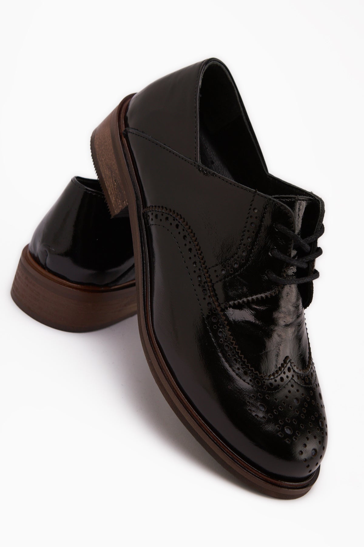 Dena Hakiki Deri Siyah Rugan Bağcıklı Brogue Oxford Kadın Ayakkabı