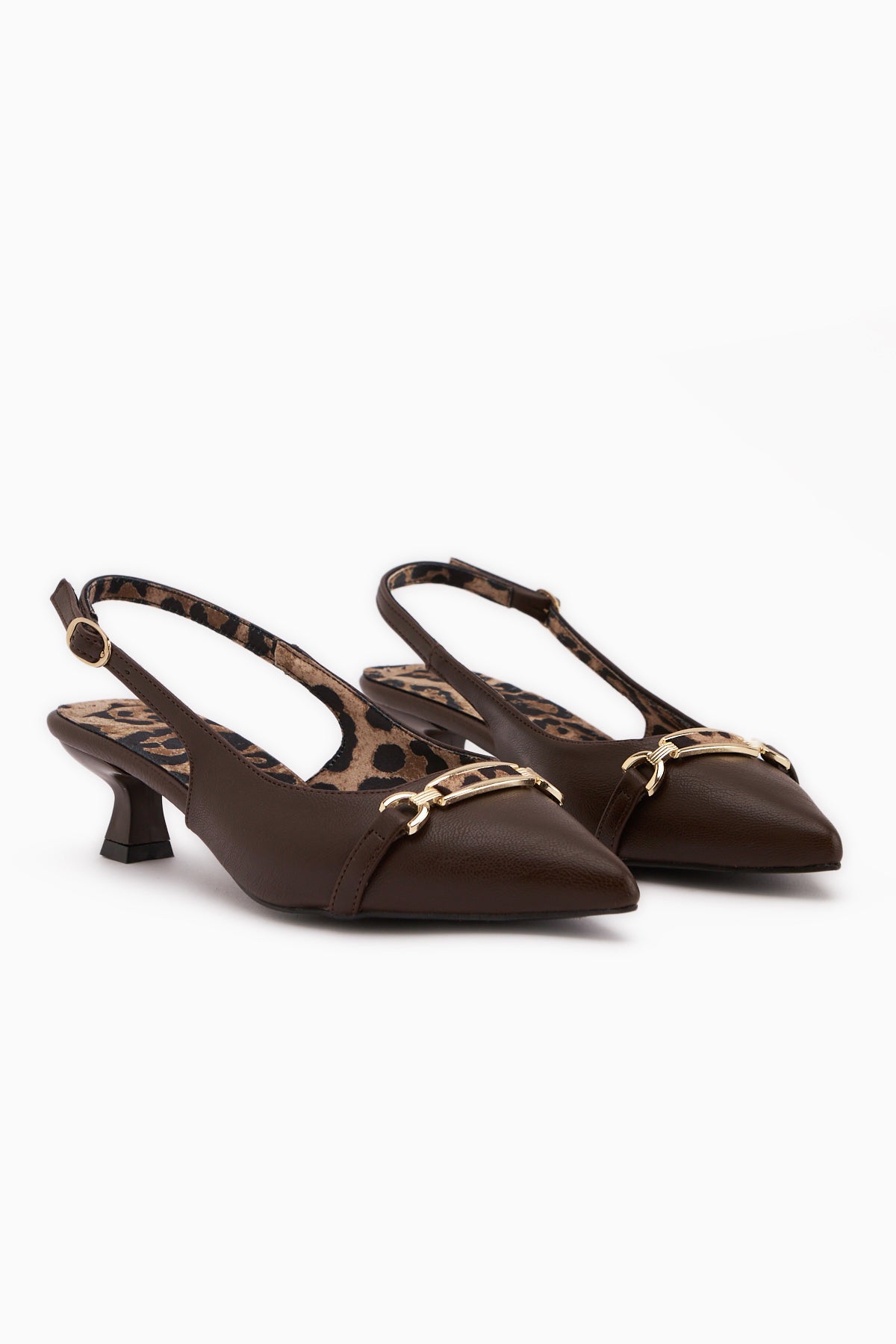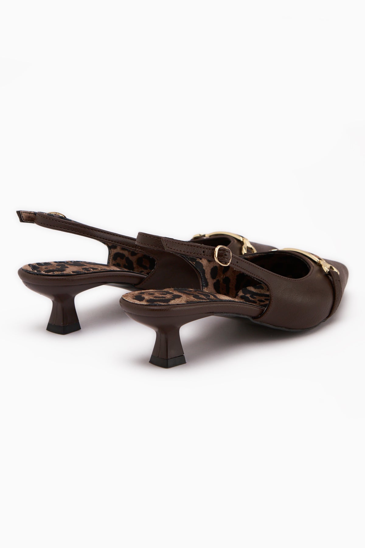 Dima Kahve Leopar Desenli Kısa Topuklu Kadın Ayakkabı