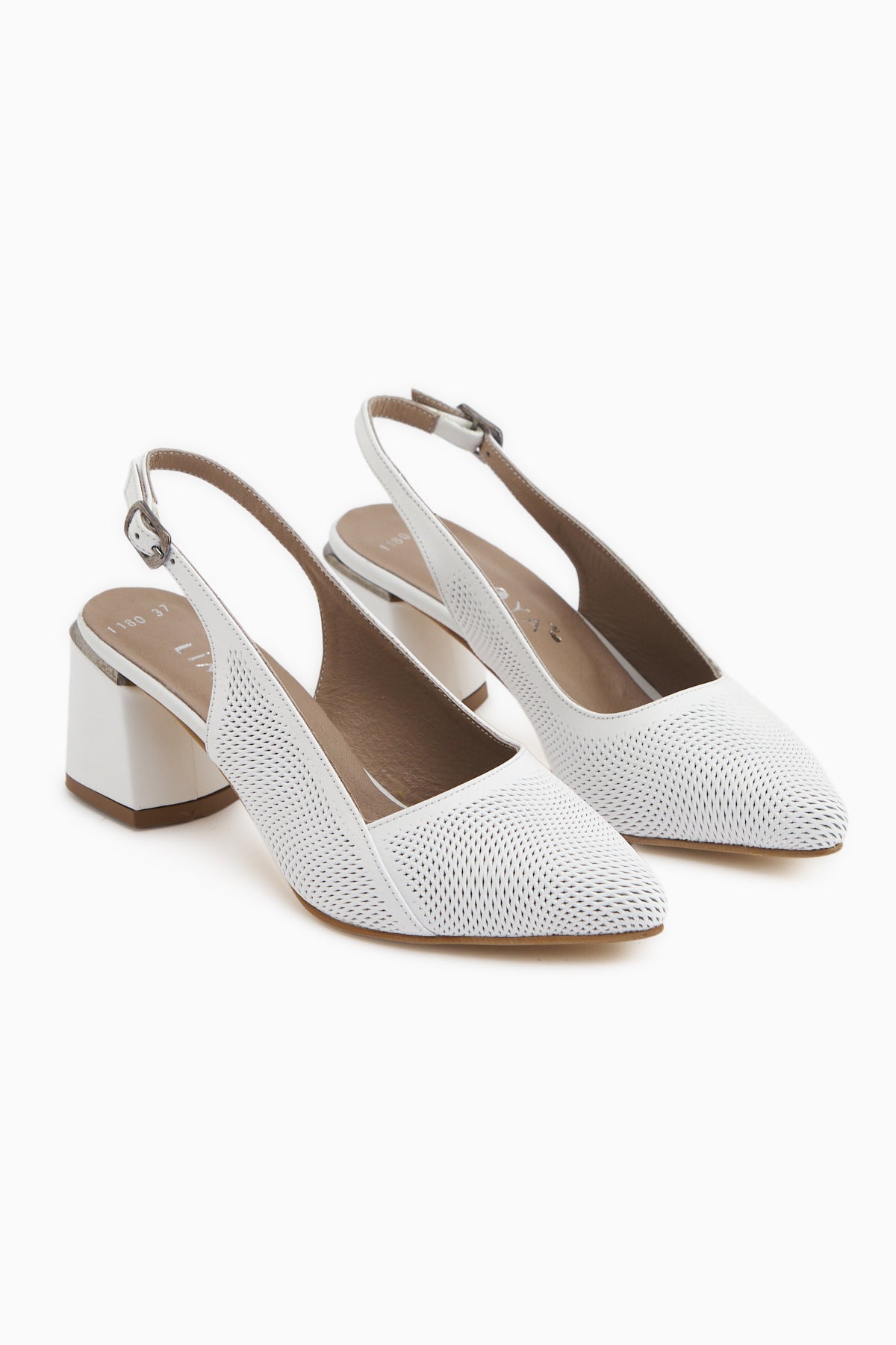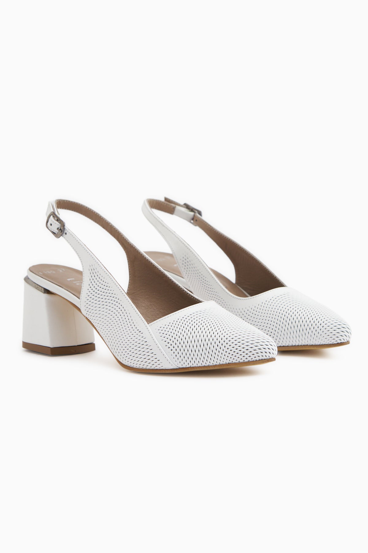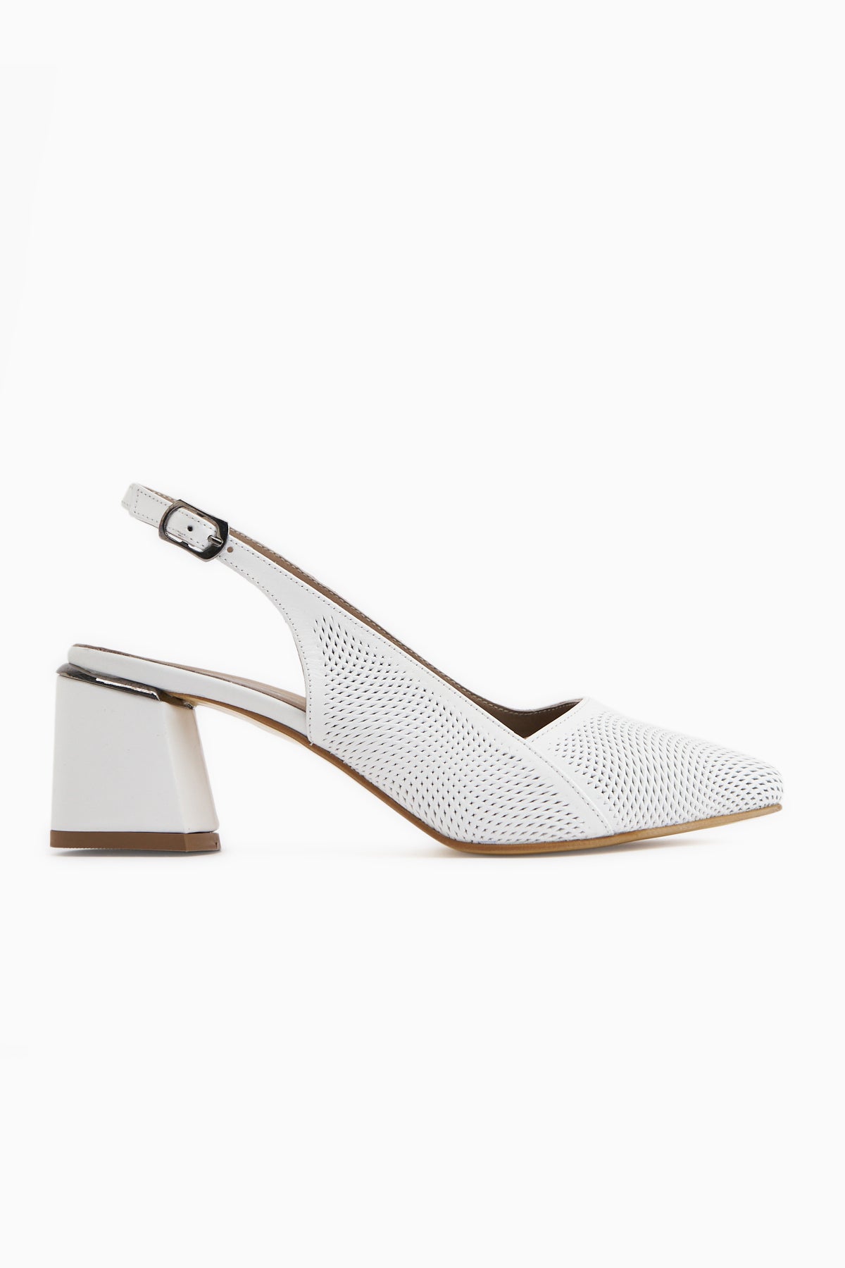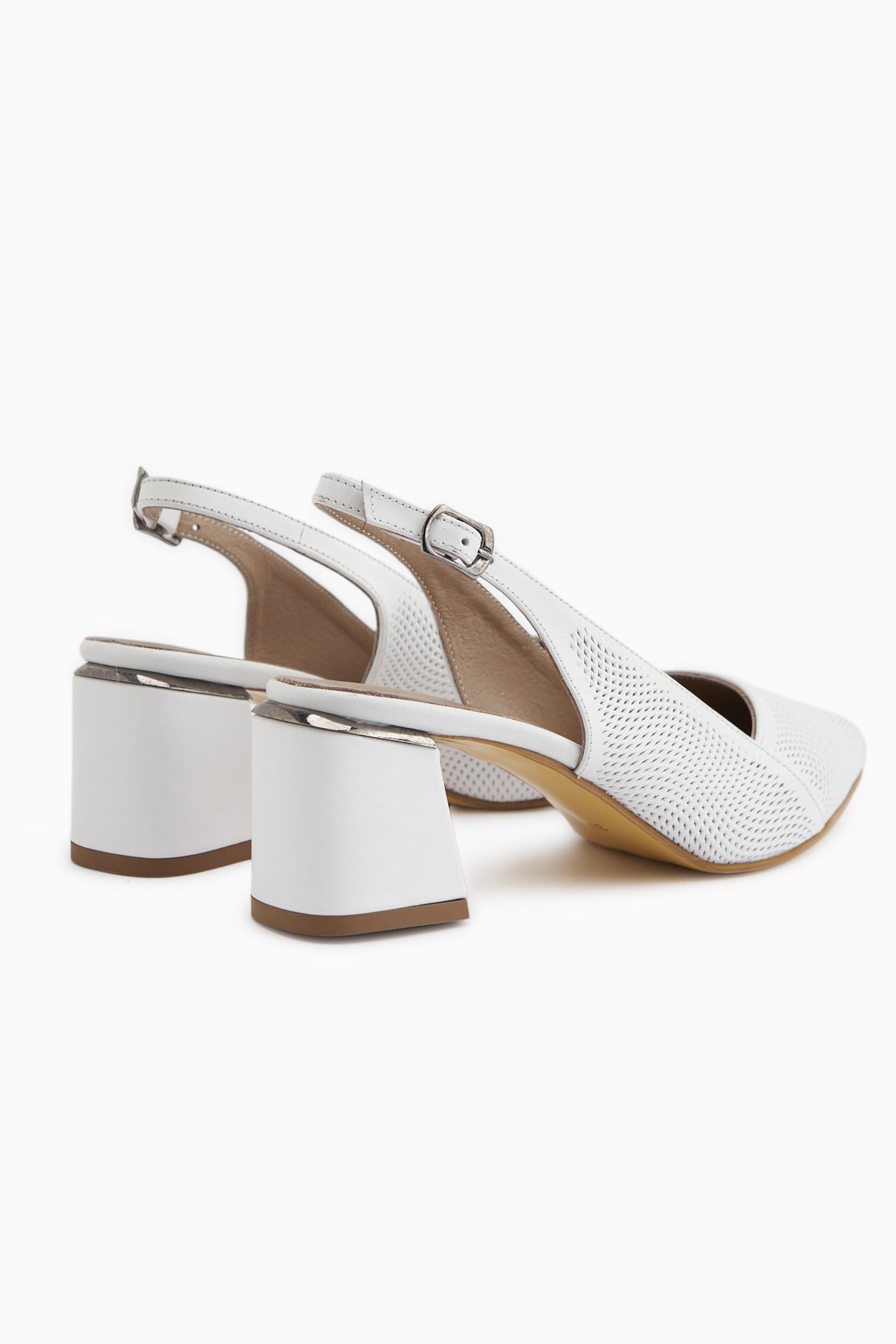 Donia Hakiki Deri Beyaz Topuklu Kadın Sandalet