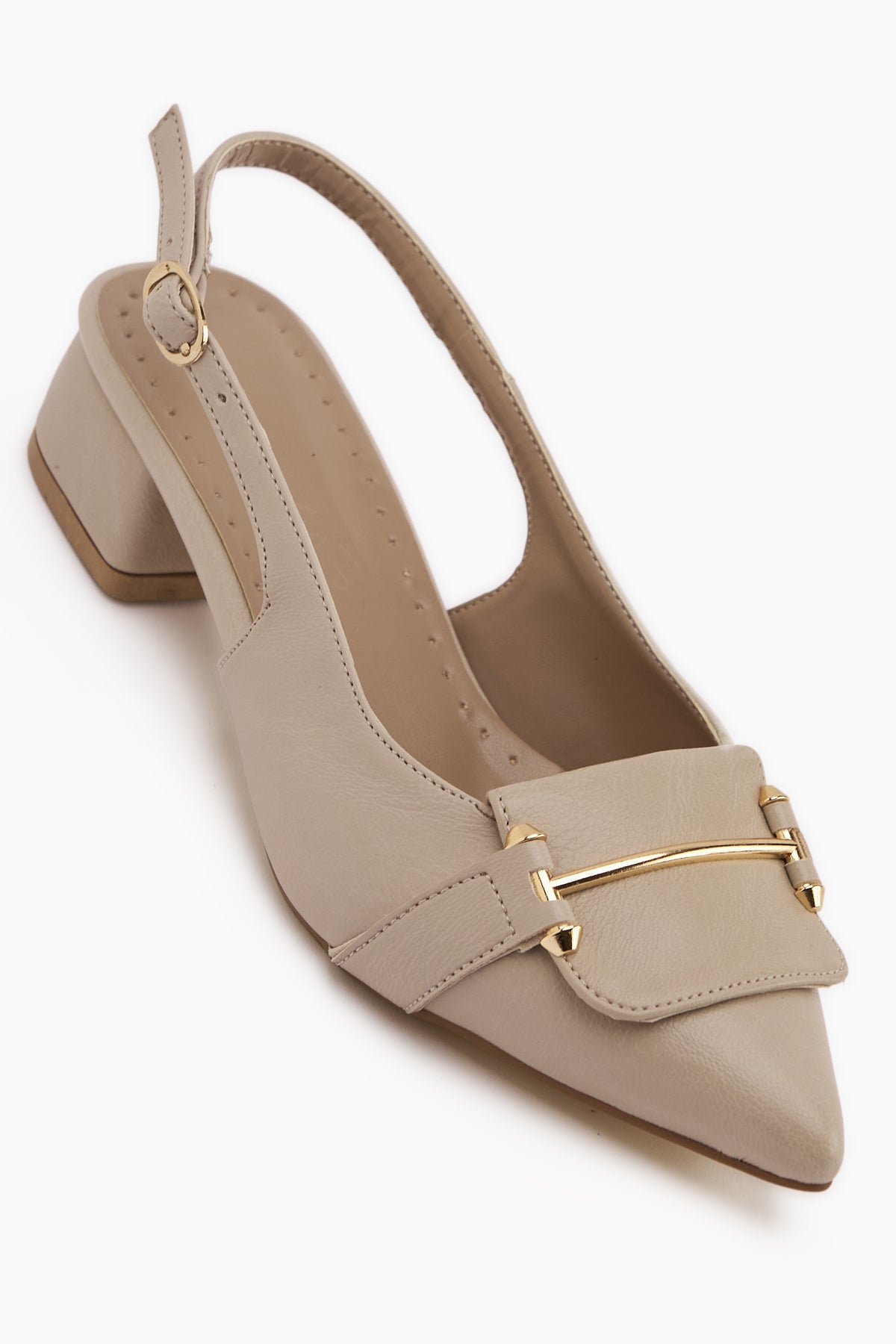 Enja Bej Tokalı Kısa Topuklu Kadın Topuklu Ayakkabı