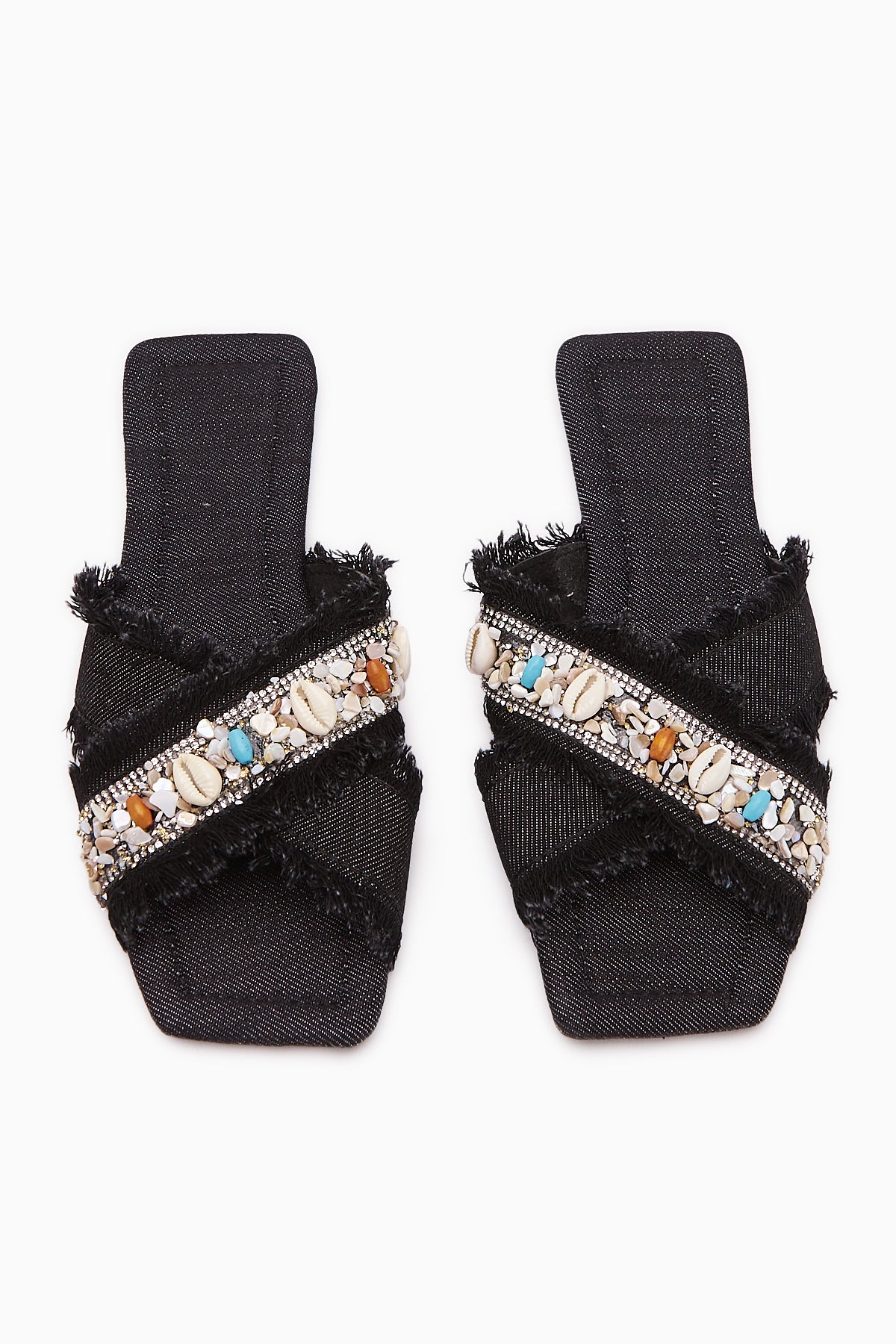 Felisa Siyah Taş ve Deniz Kabuğu Süslemeli Bohem Kadın Terlik