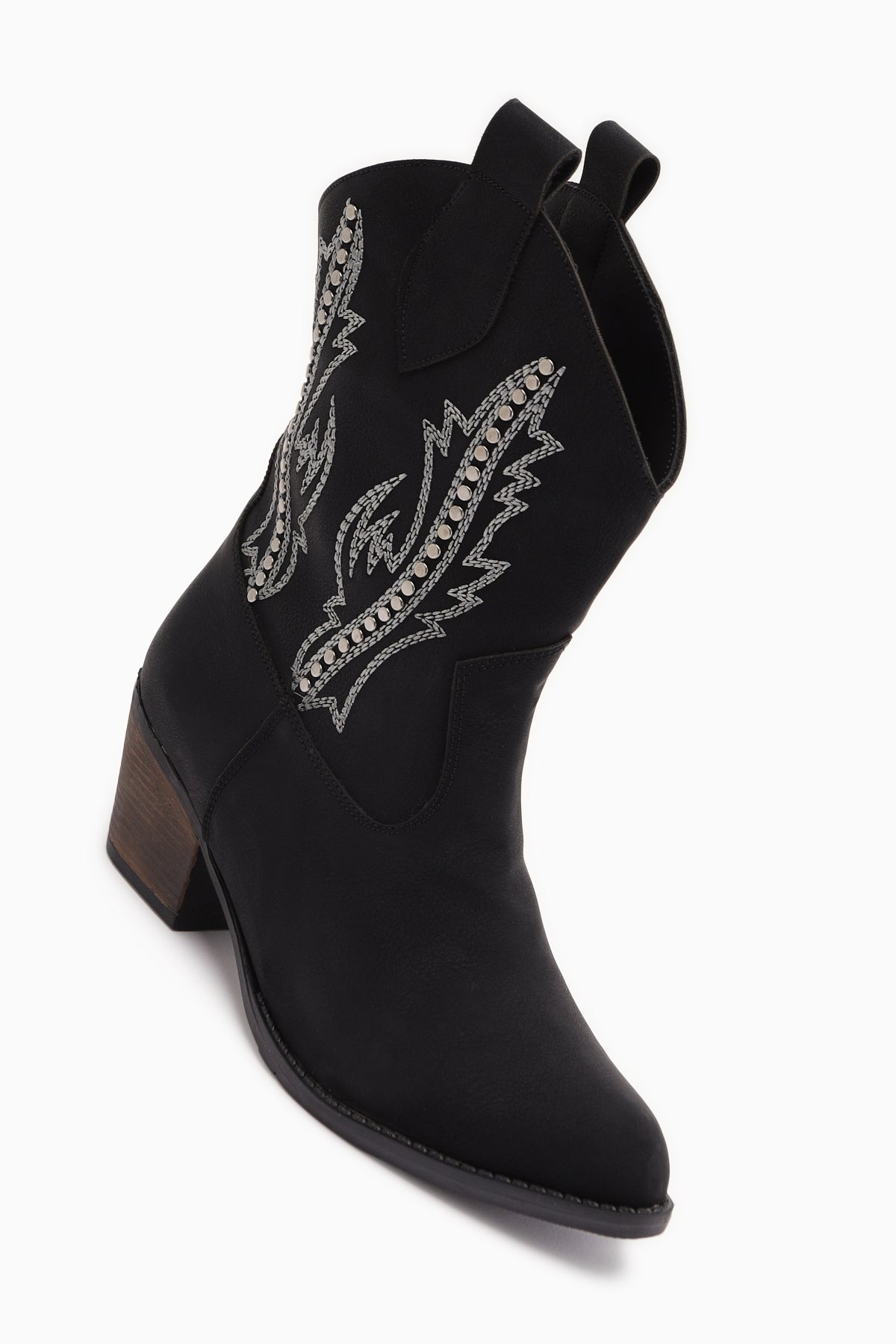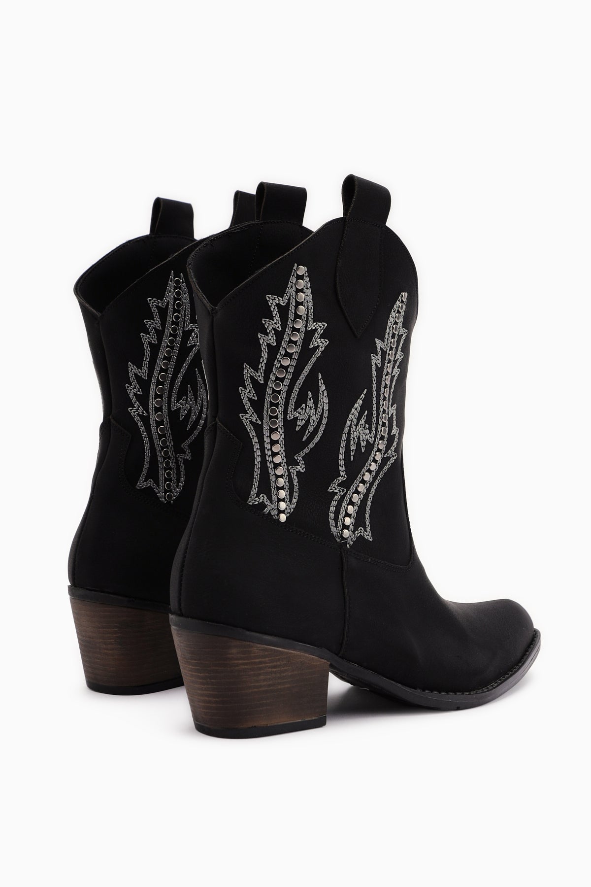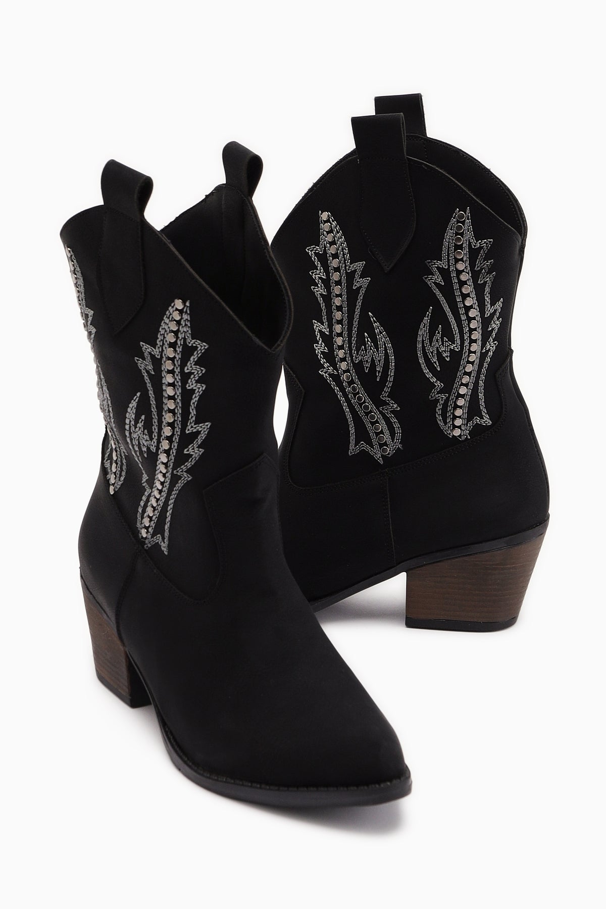 Fiza Siyah Sivri Burunlu Nakışlı Zımba Detaylı Western Bot