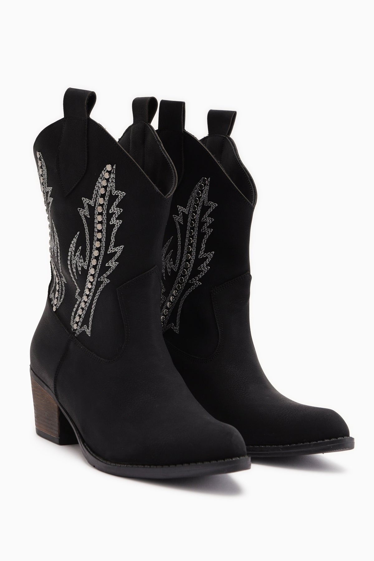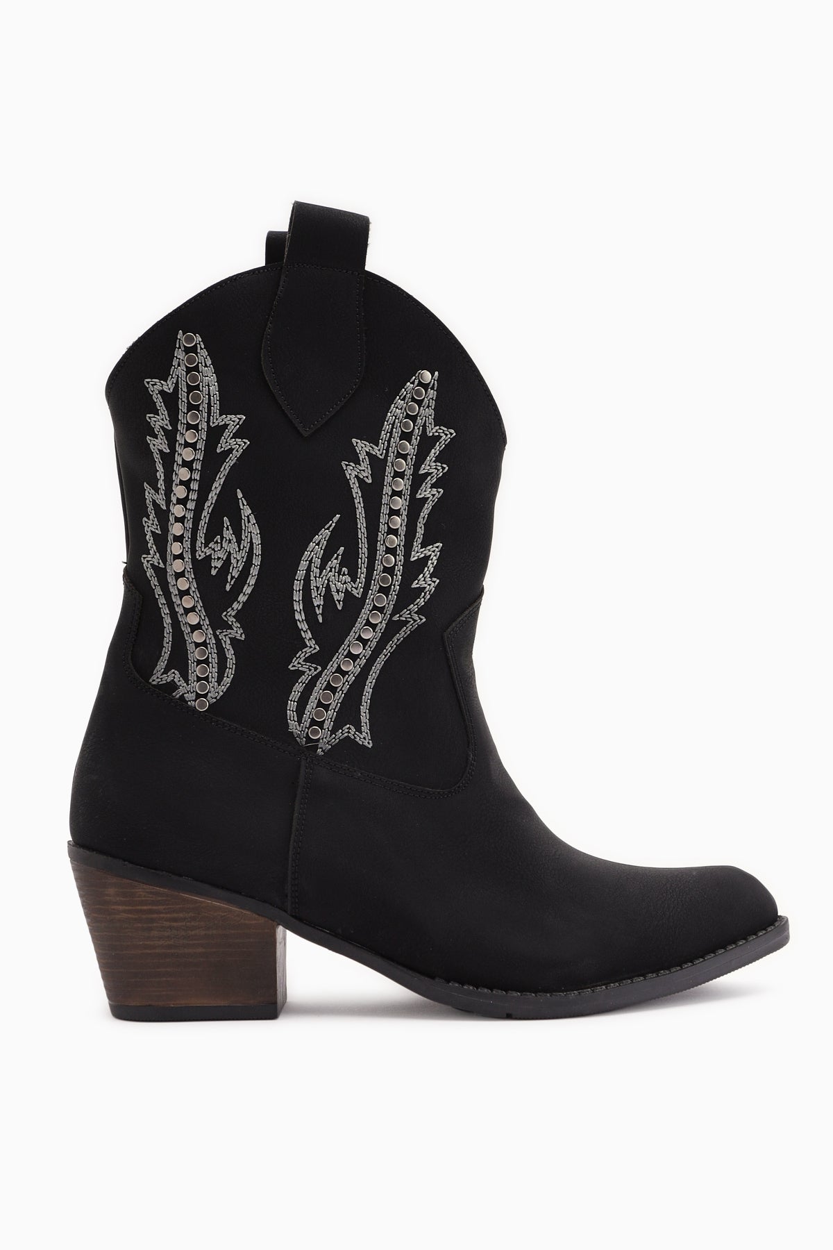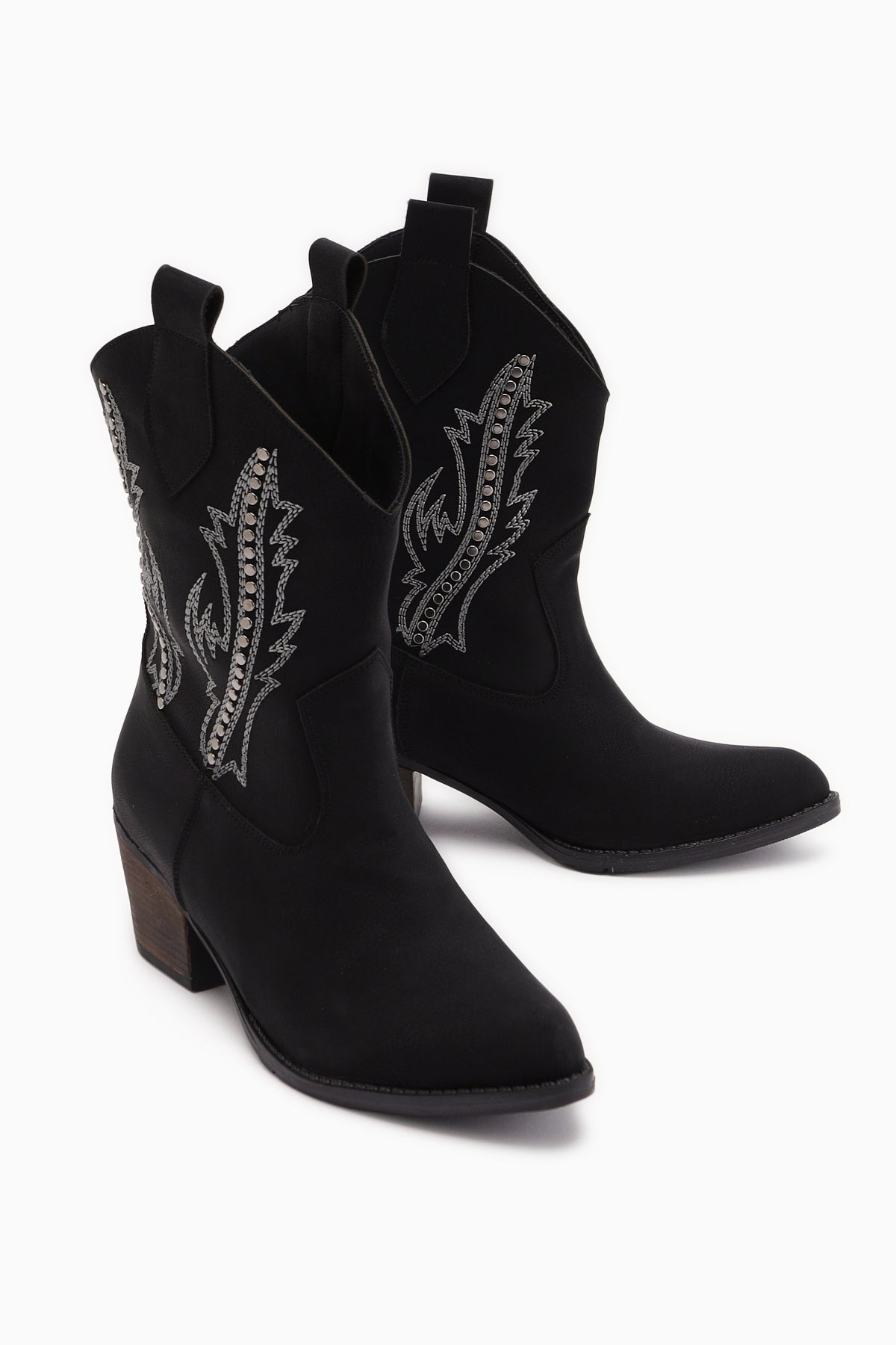 Fiza Siyah Sivri Burunlu Nakışlı Zımba Detaylı Western Bot