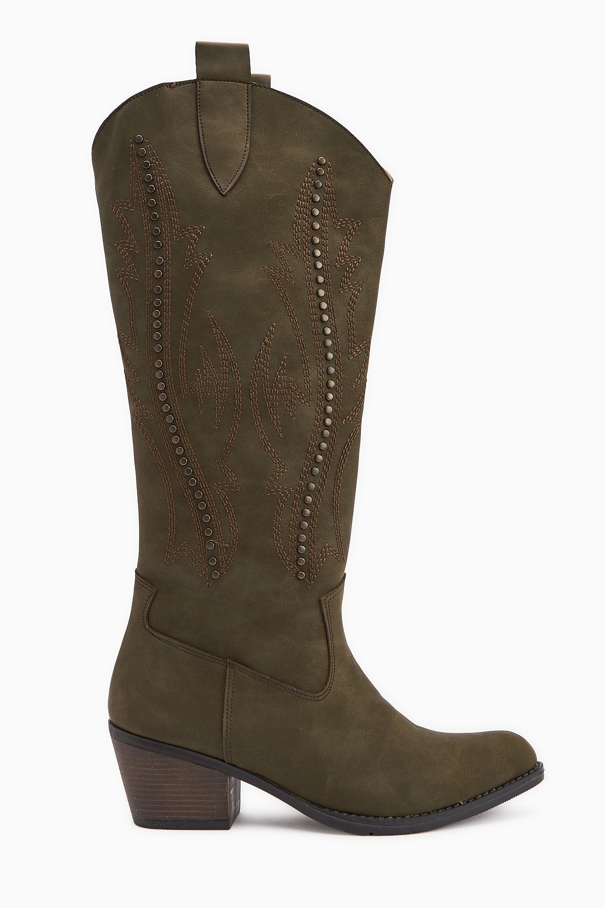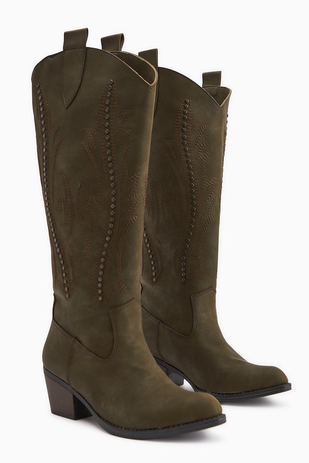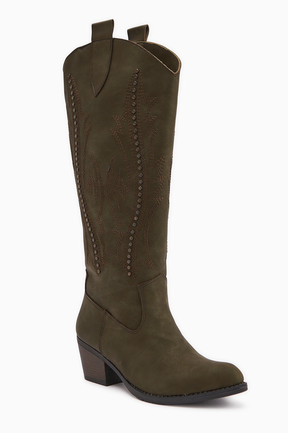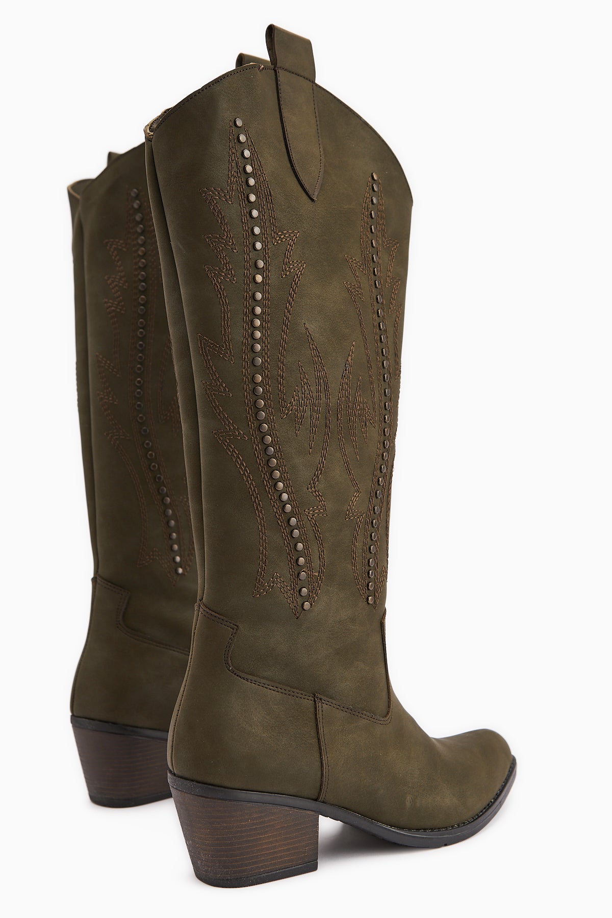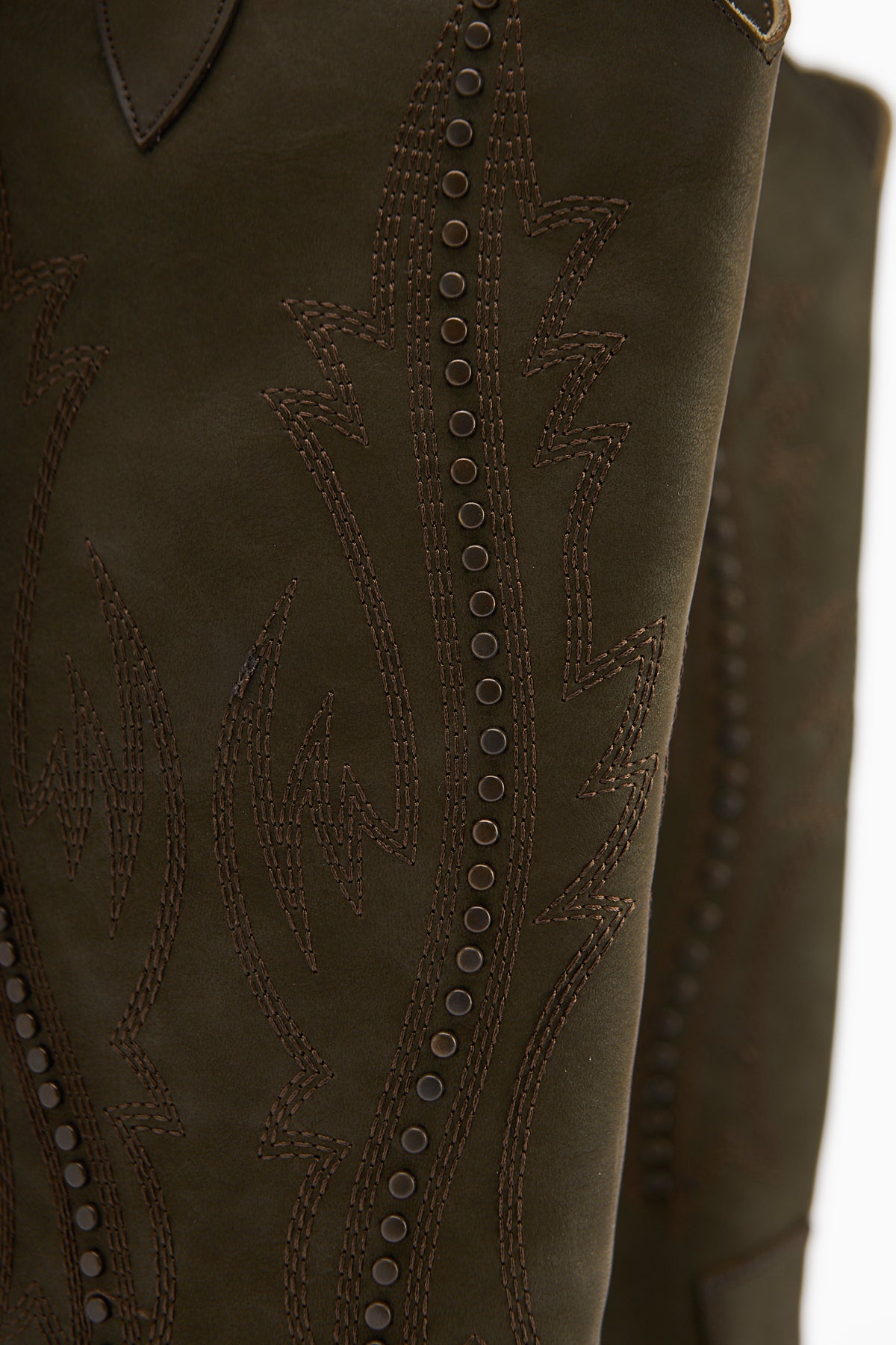 Fizaro Haki Sivri Burunlu Nakışlı Zımba Detaylı Western Çizme