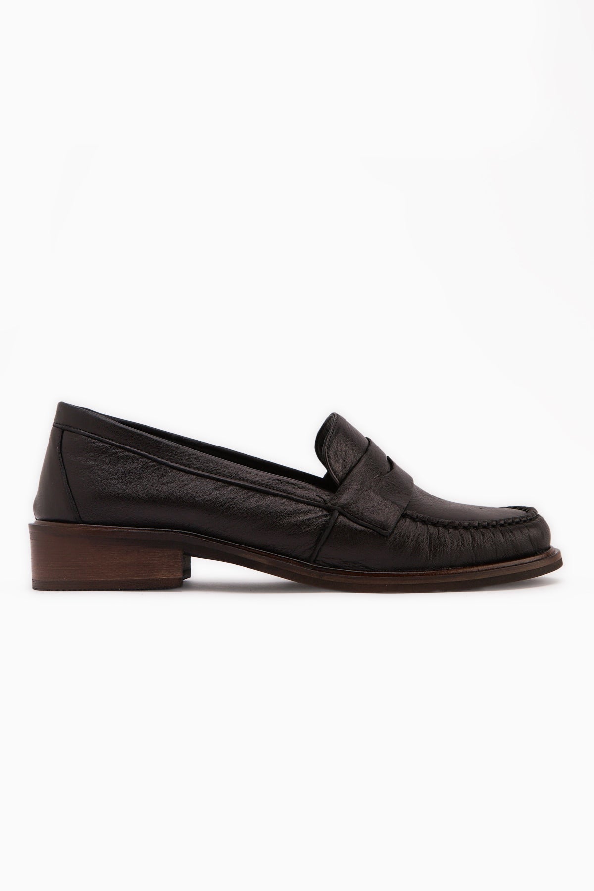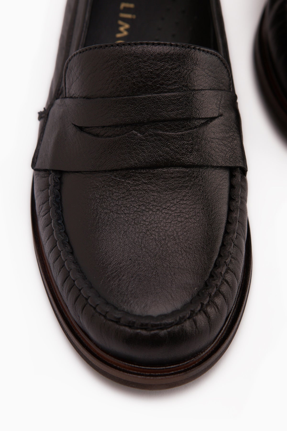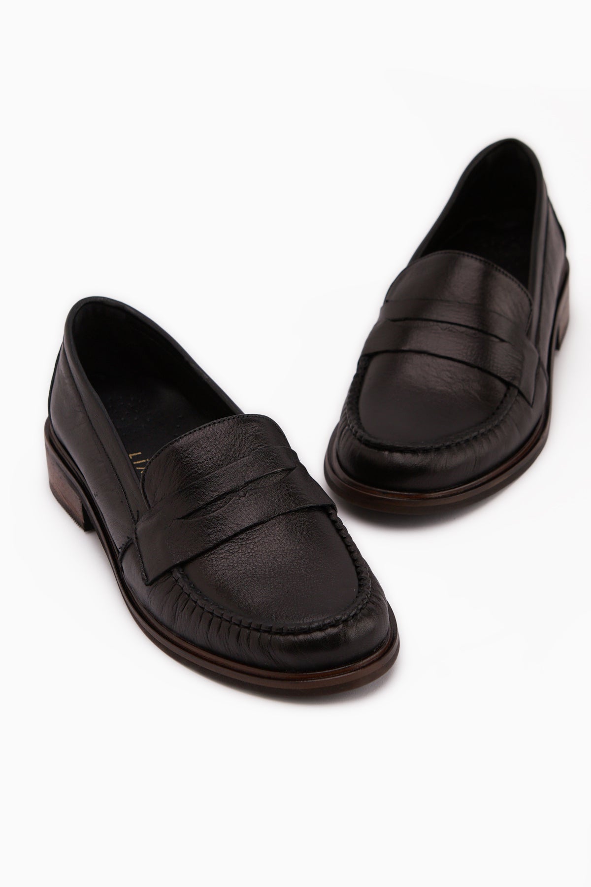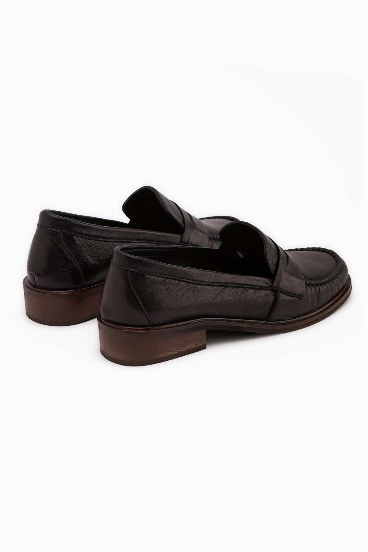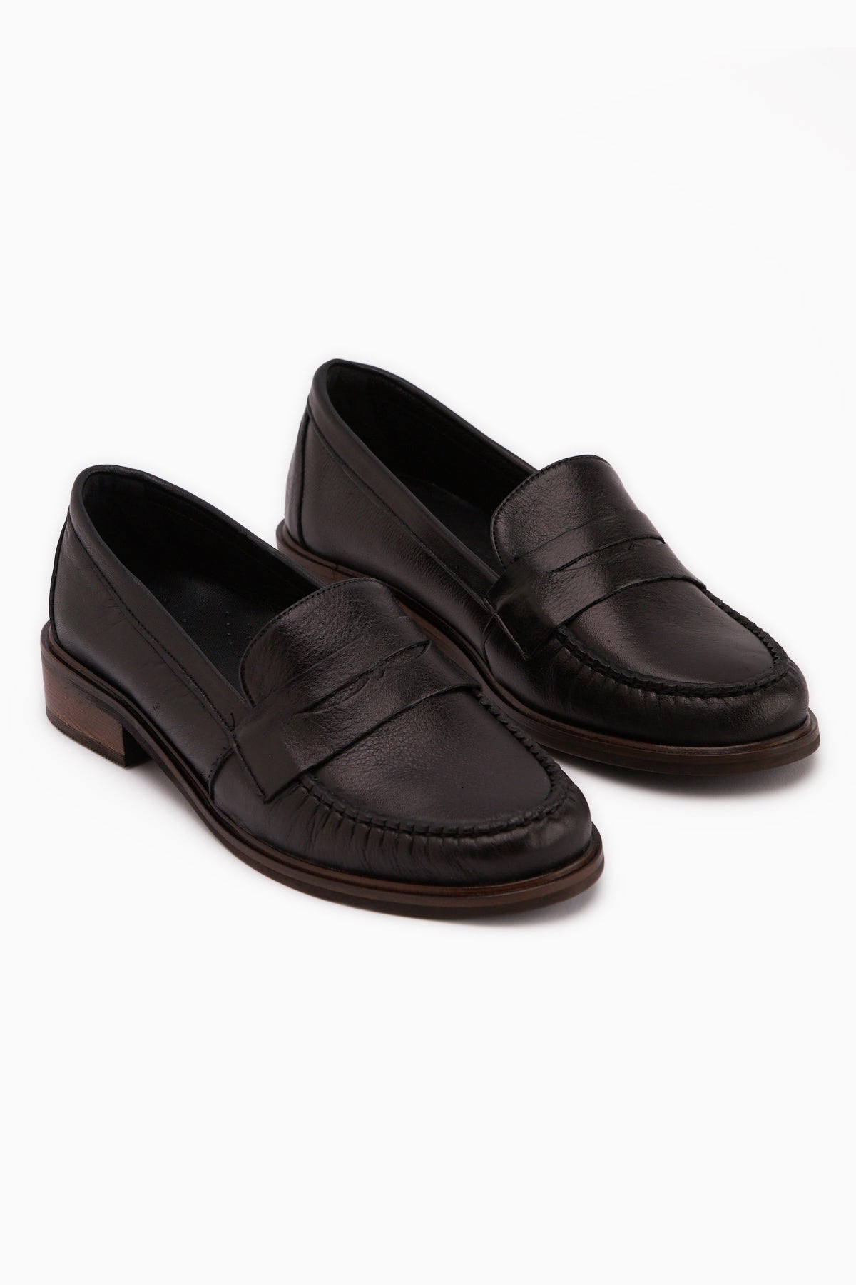 Fosia Hakiki Deri Siyah Penny Loafer Kadın Ayakkabı