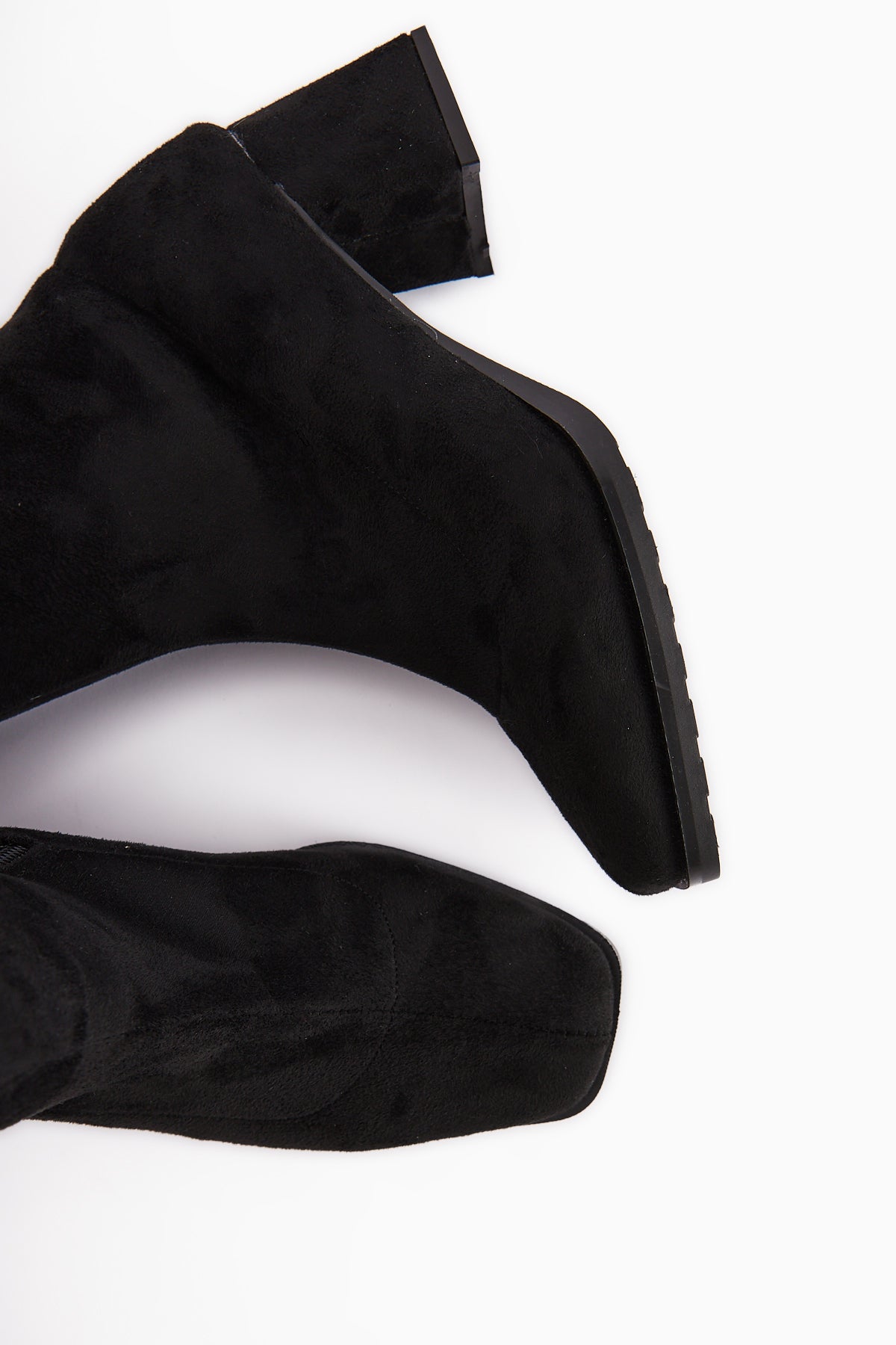Ghina Siyah Süet Küt Burunlu Topuklu Kadın Bot