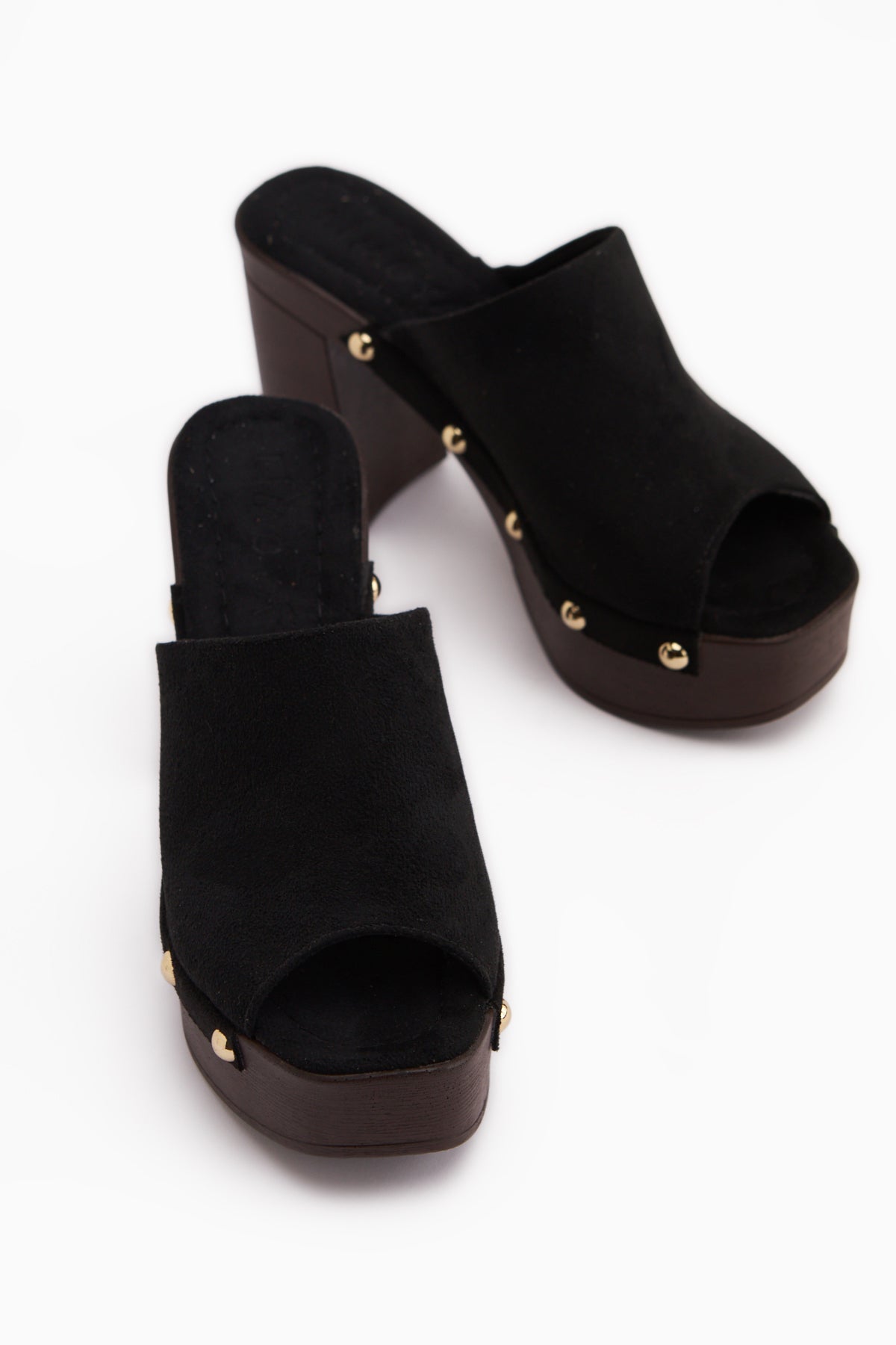 Gracia Siyah Süet Platform Topuklu Kadın Terlik