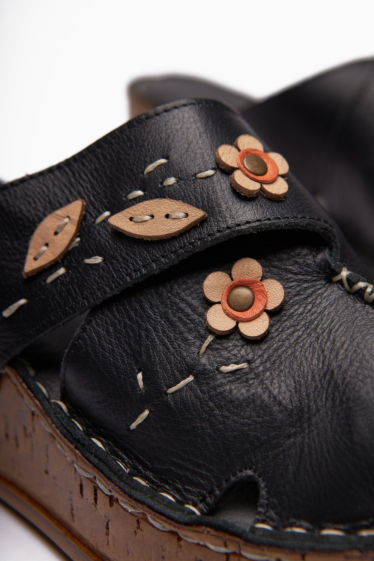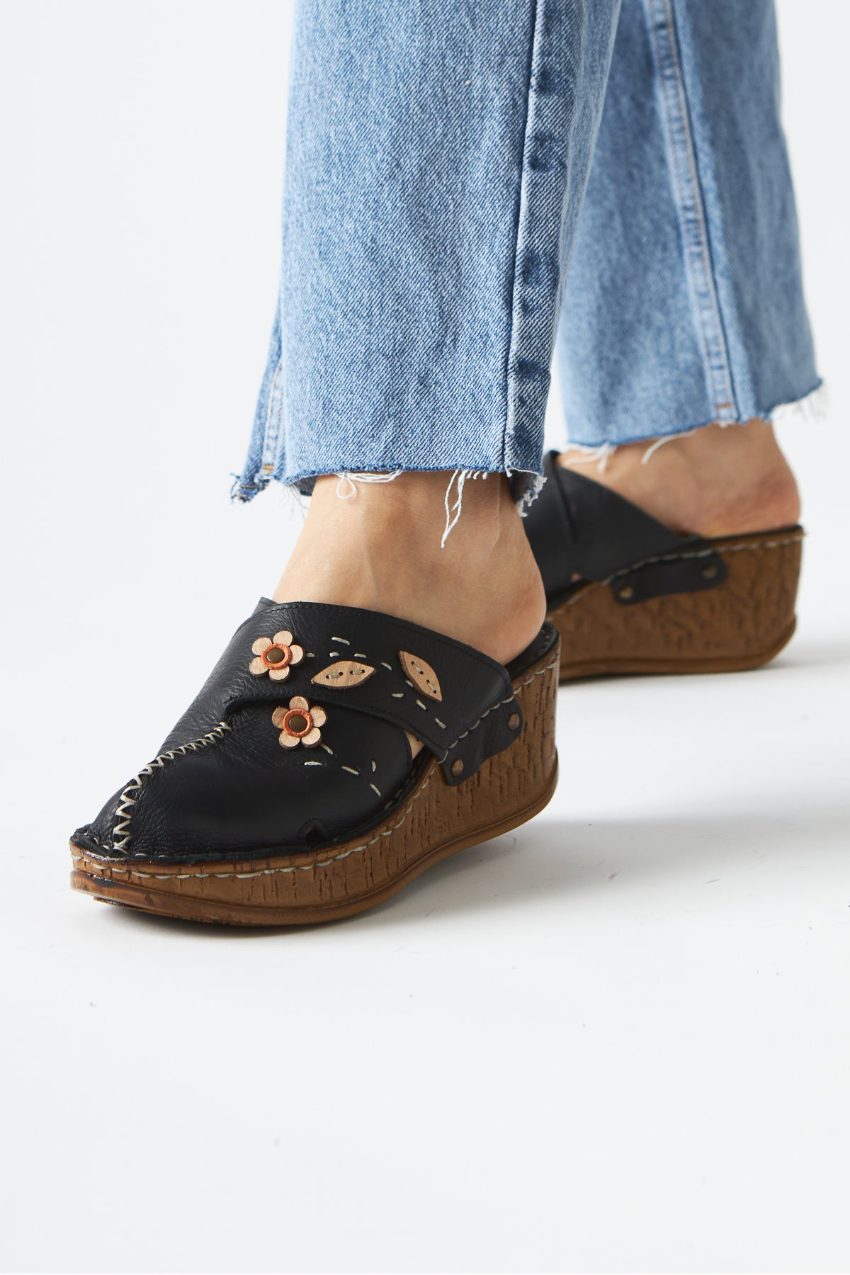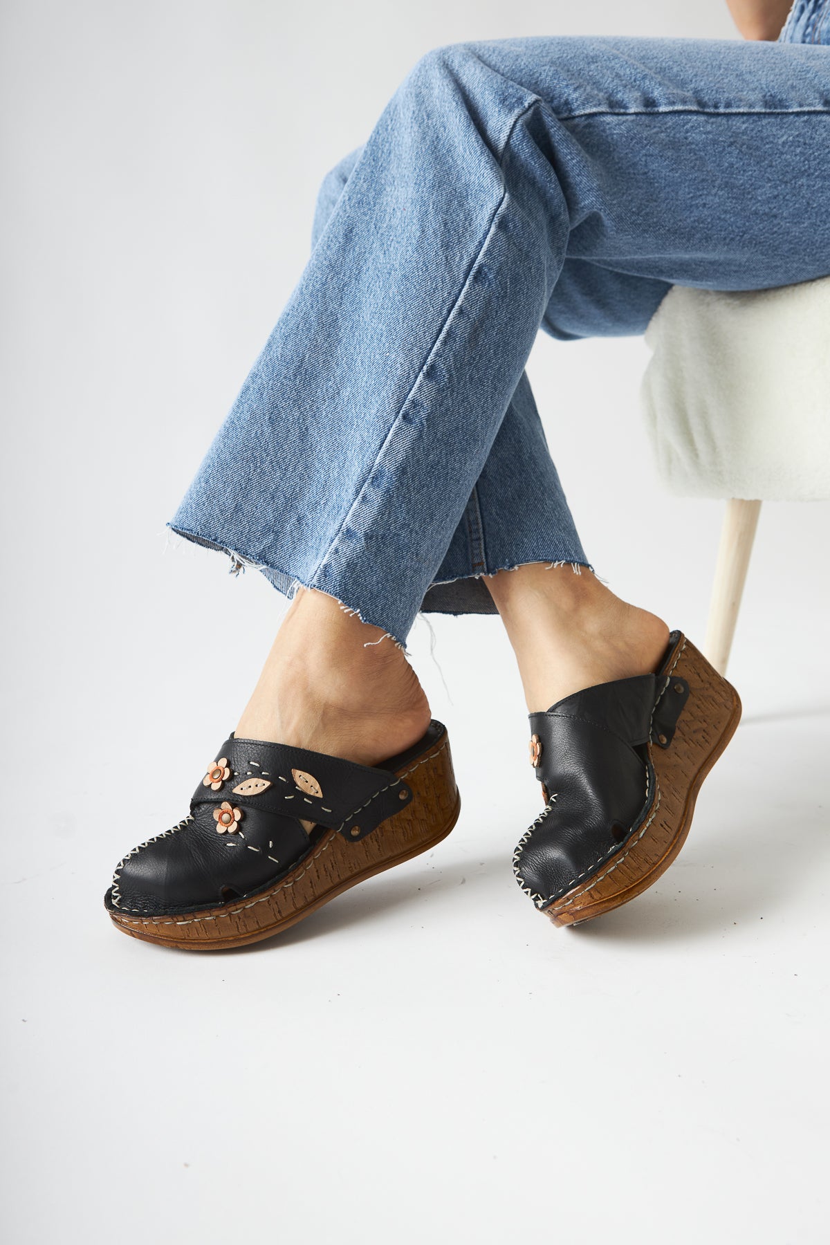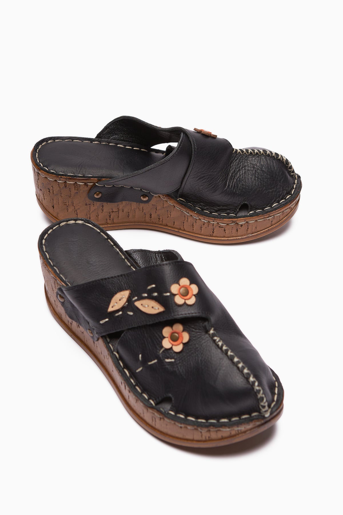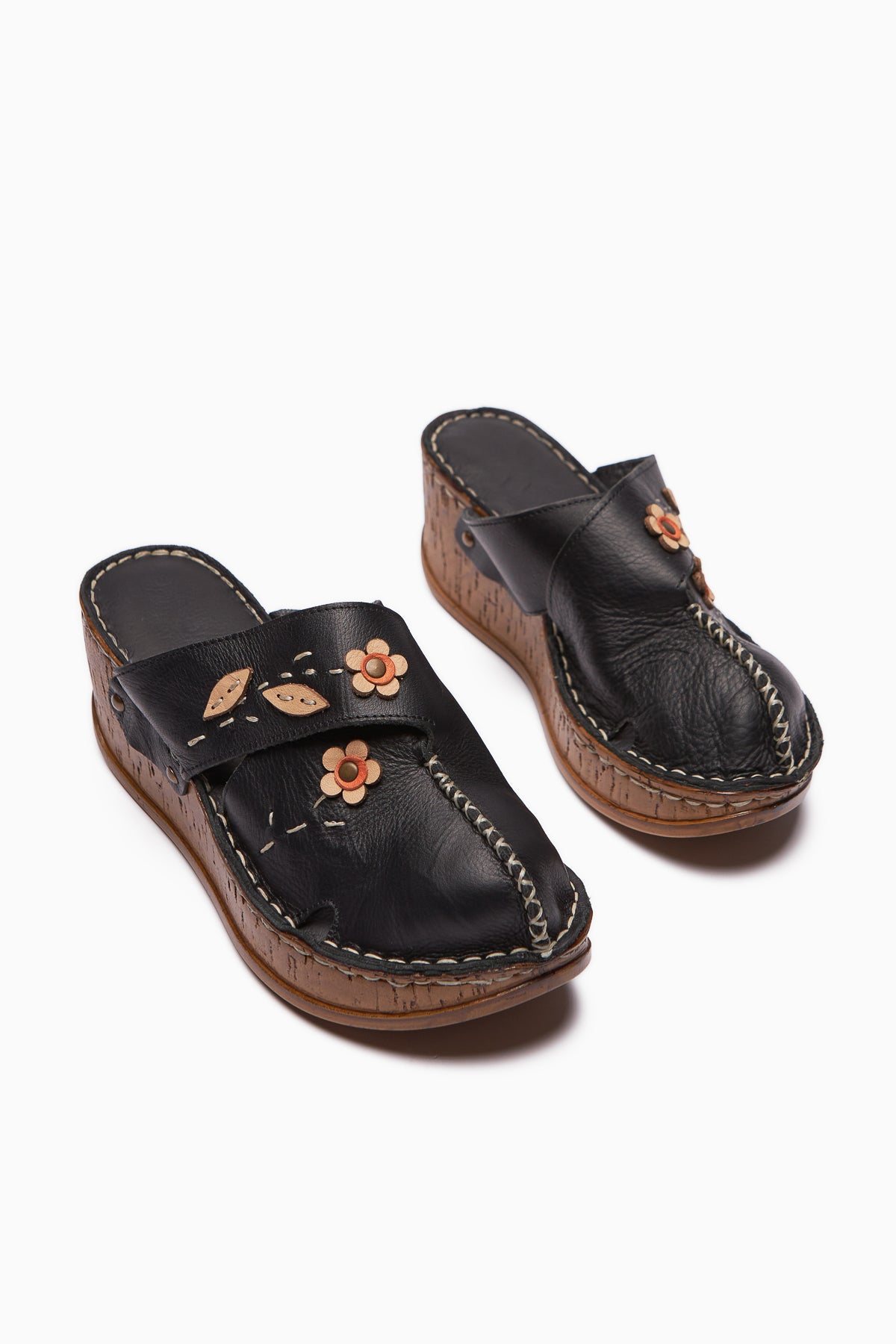Hakiki Deri Alto Siyah Dolgu Terlik Eskitme Tabanlı Comfort Terlik