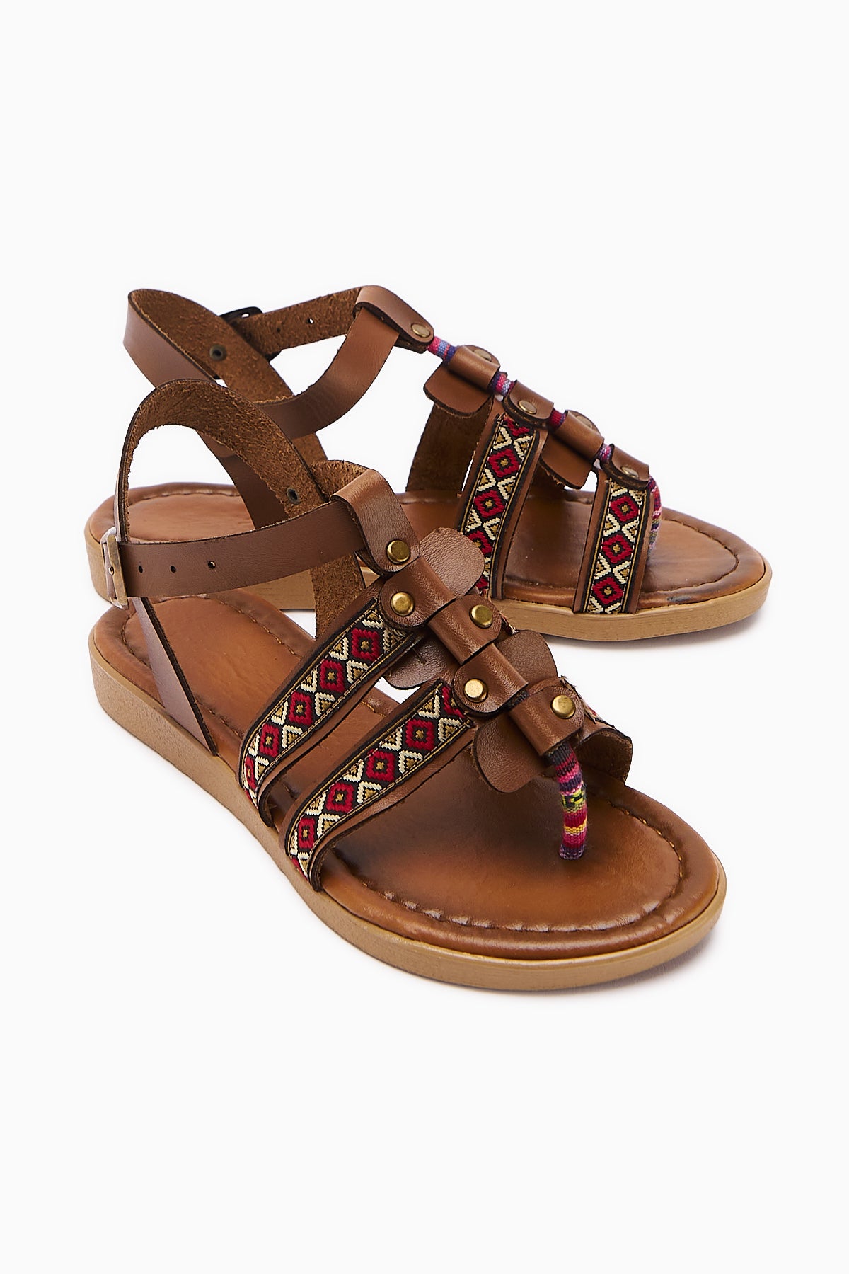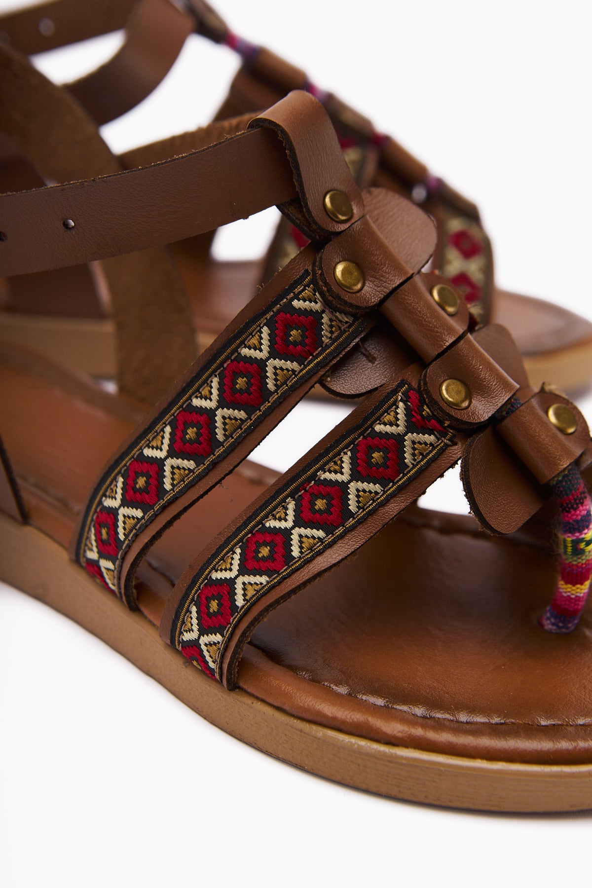 Hakiki Deri Heam Taba Etnik Desenli Sandalet