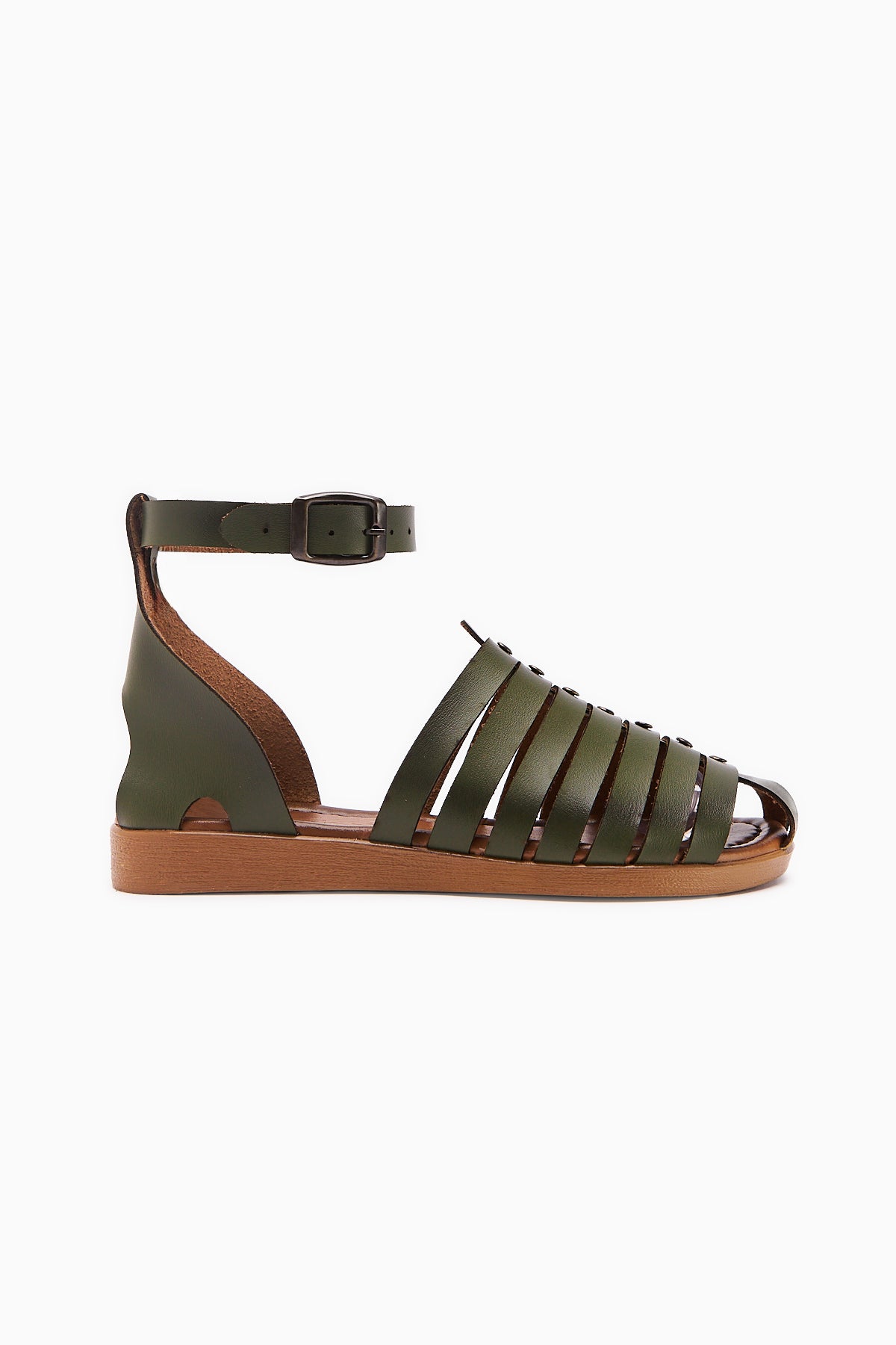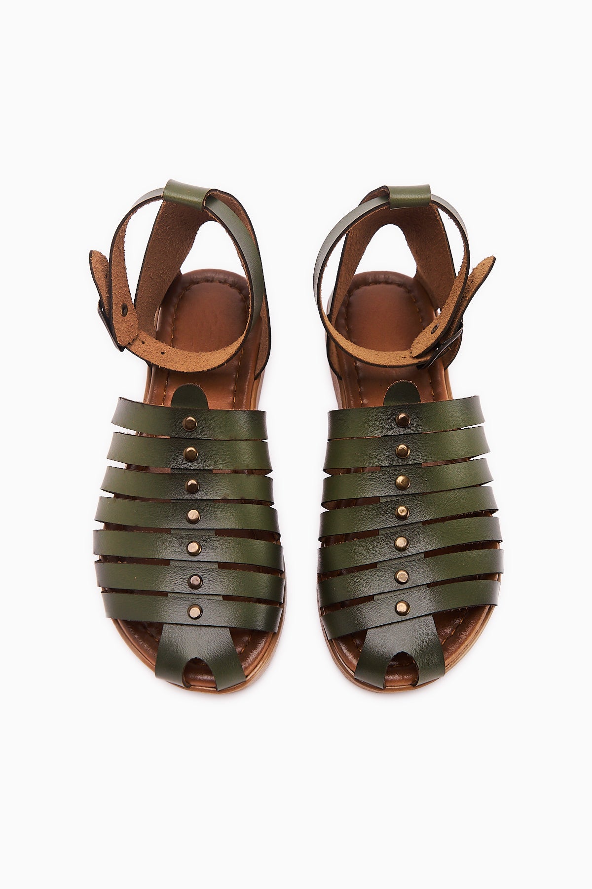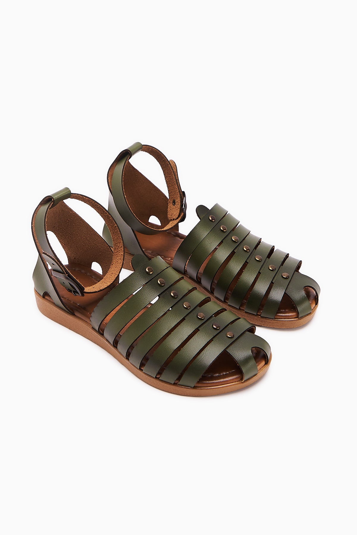 Hakiki Deri Helen Haki Parmakları Kapatan Bodrum Sandaleti