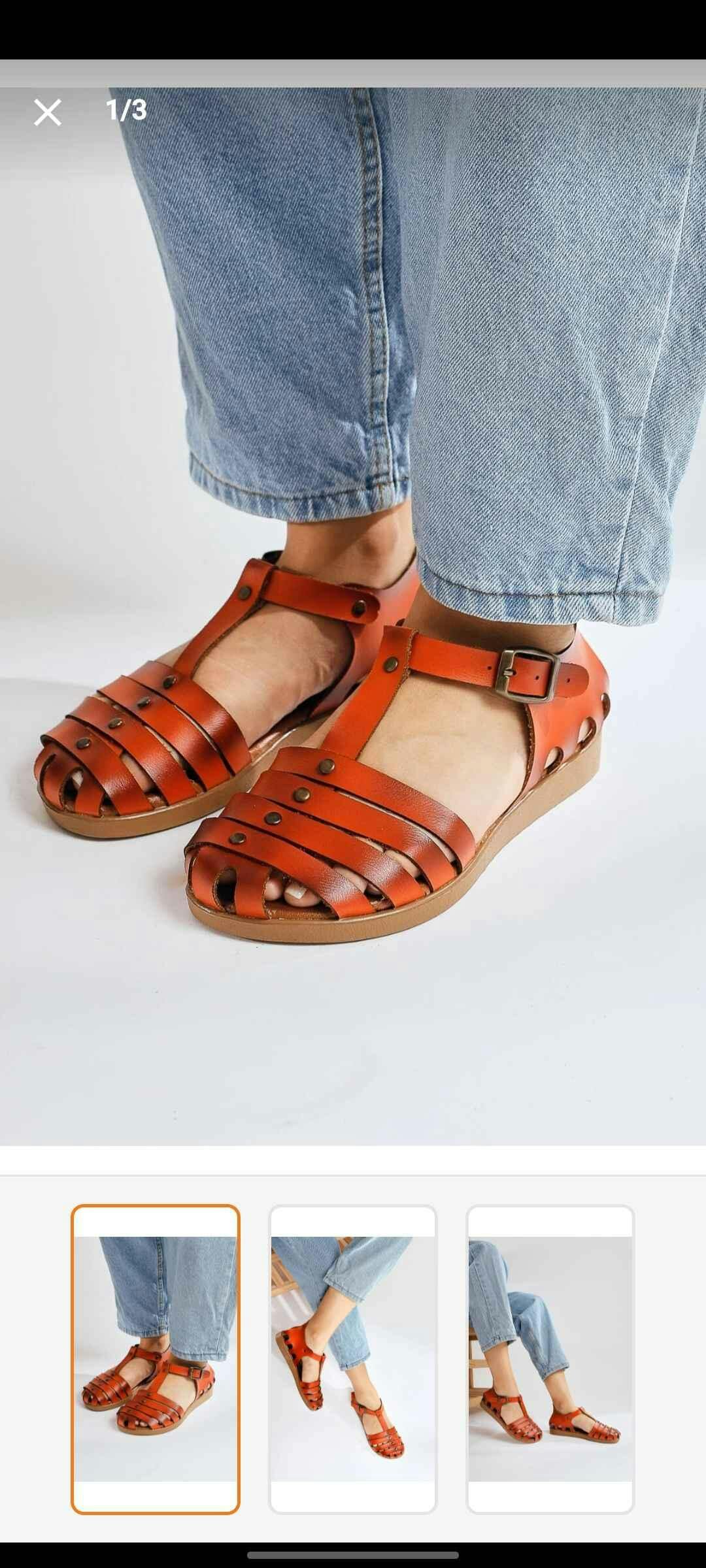 Hakiki Deri Helen Oranj Parmakları Kapatan Bodrum Sandaleti