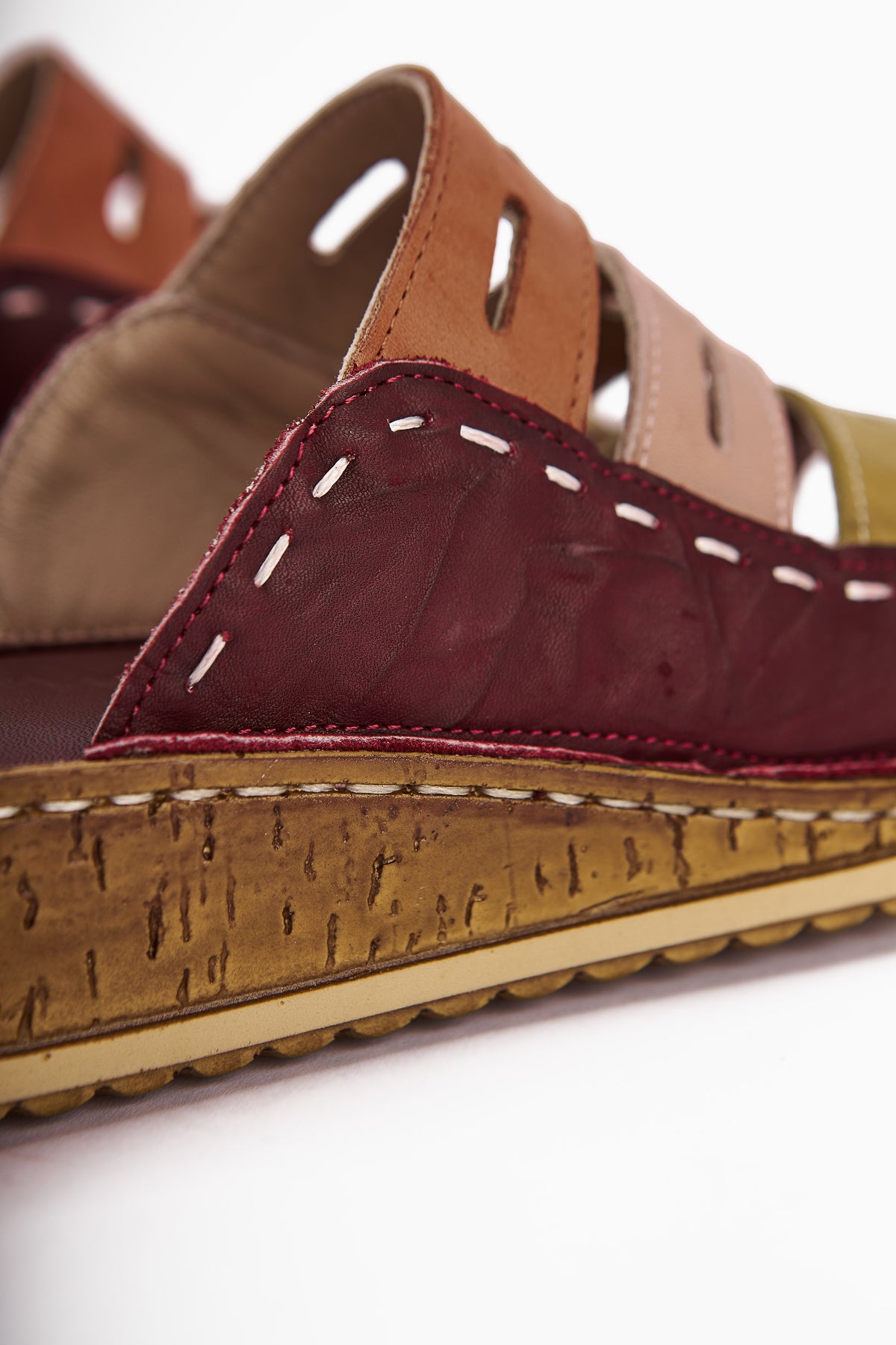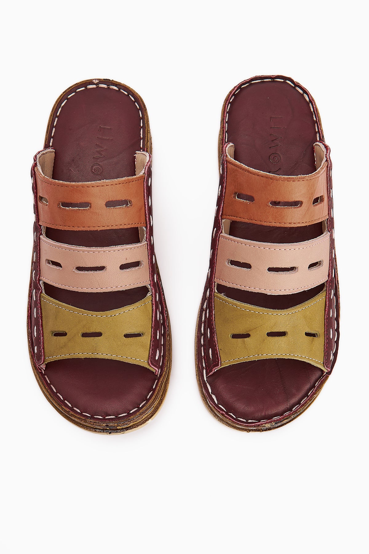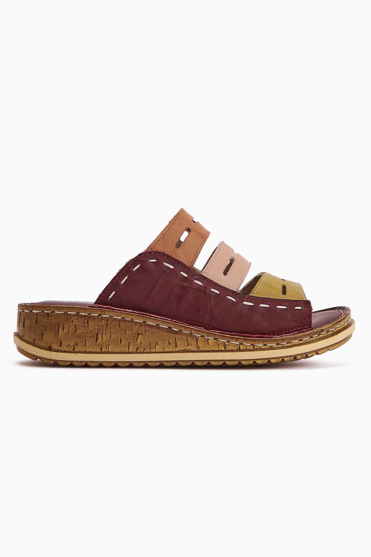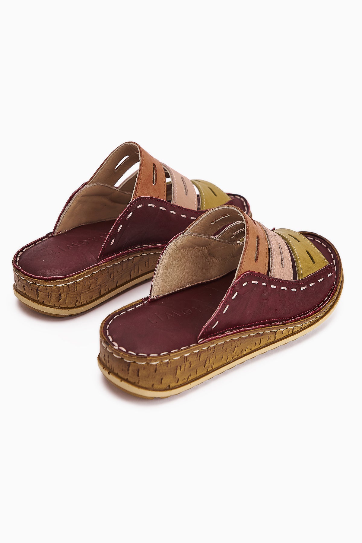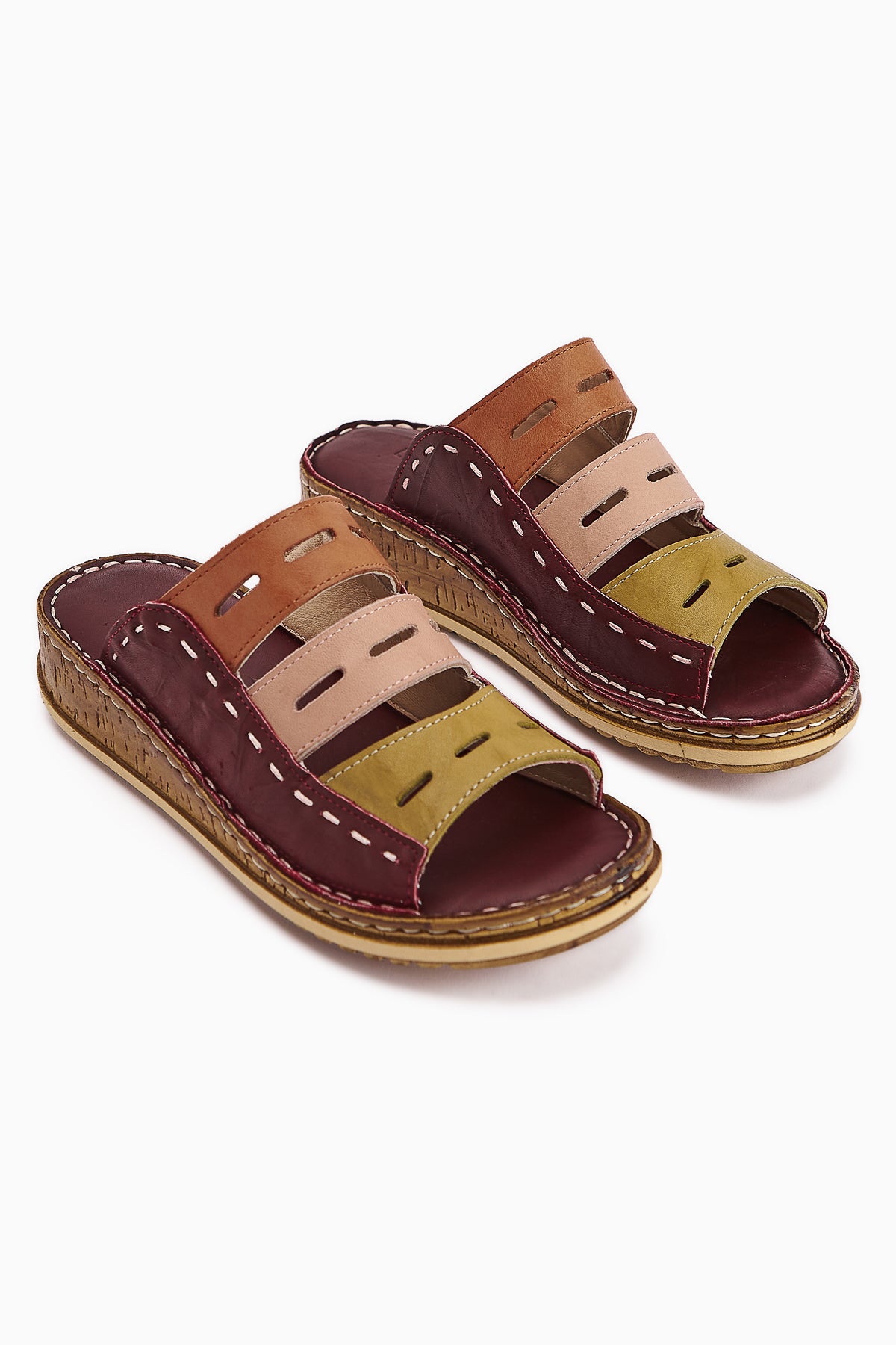 Hakiki Deri Joelle Bordo Yeşil Pudra Portakal Comfort Lazer Kesim Terlik