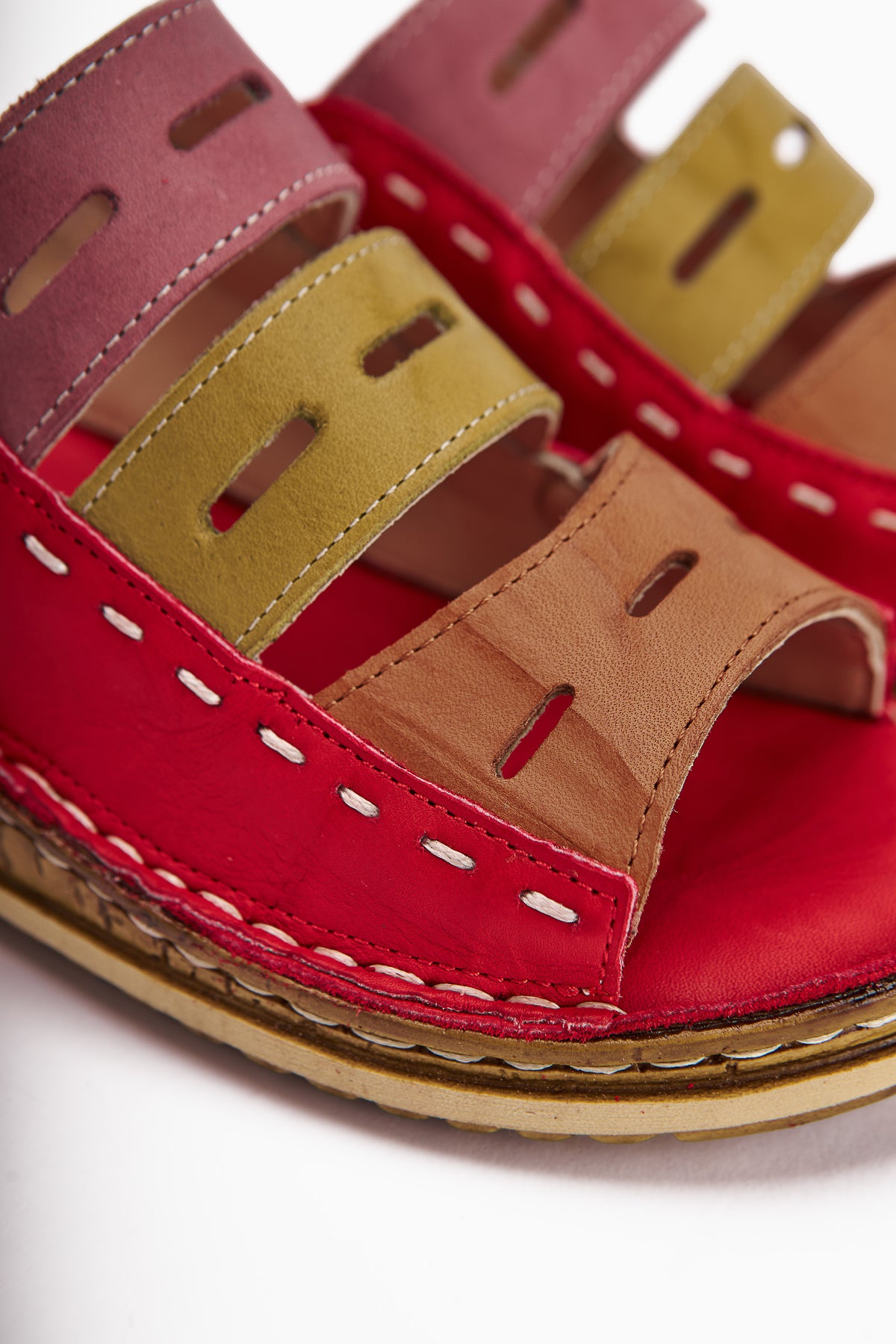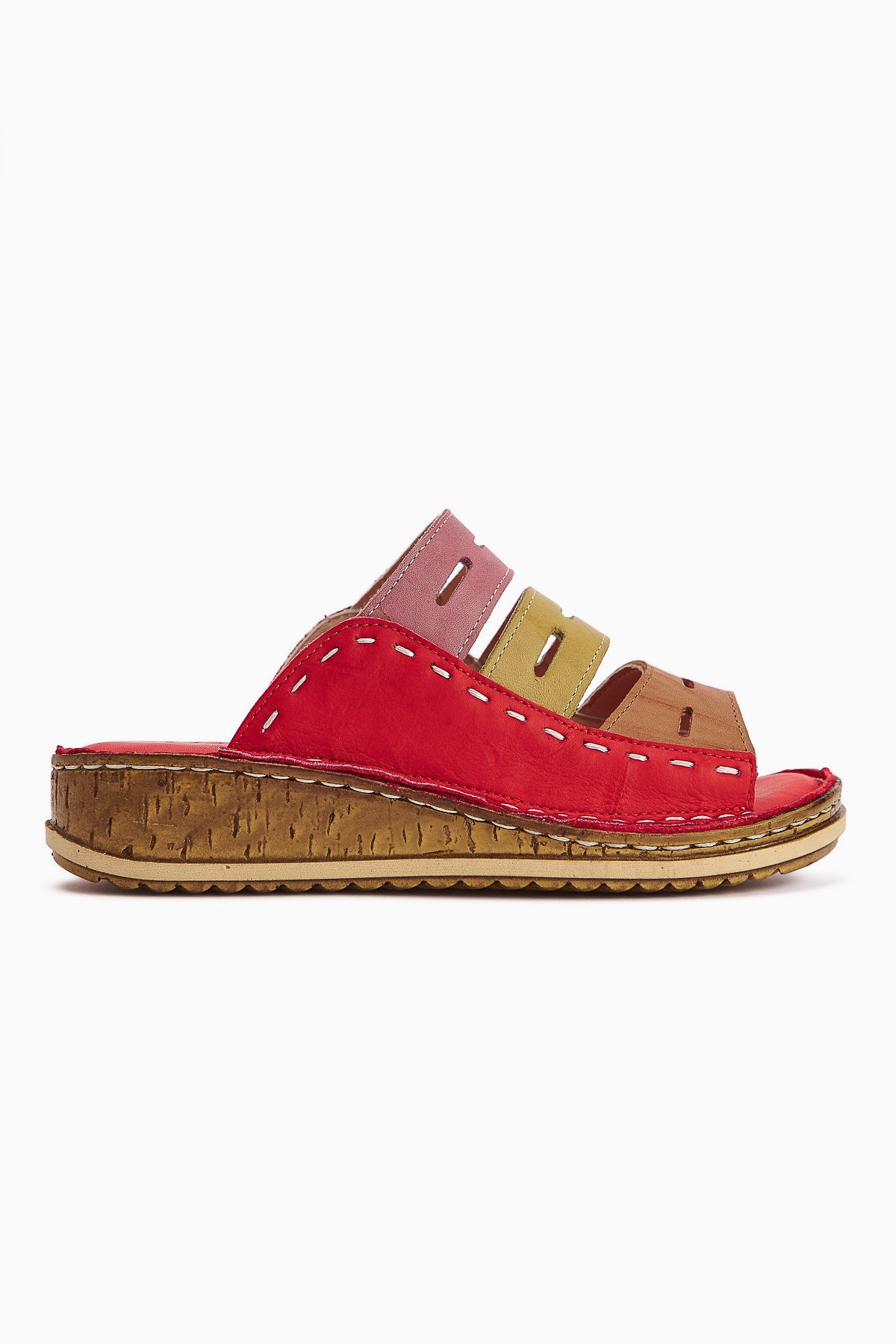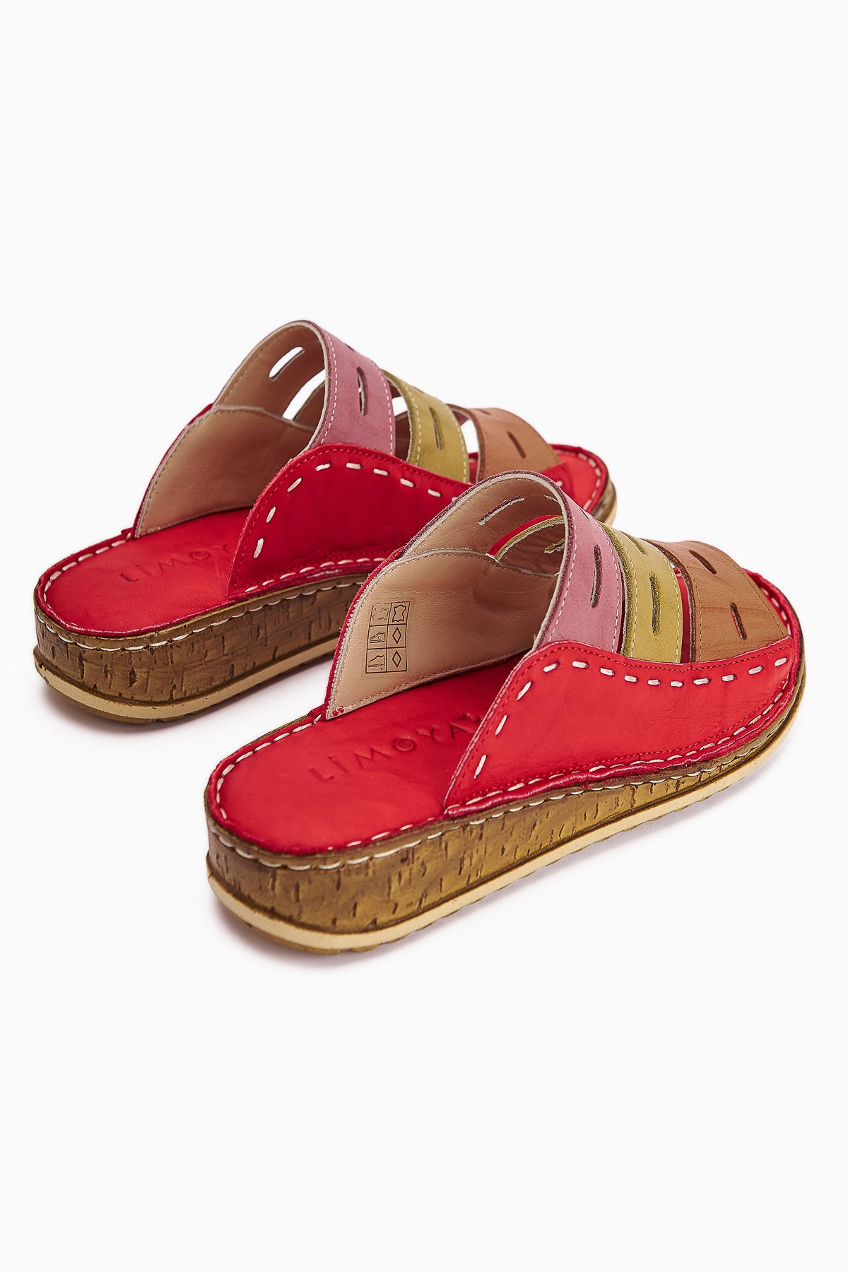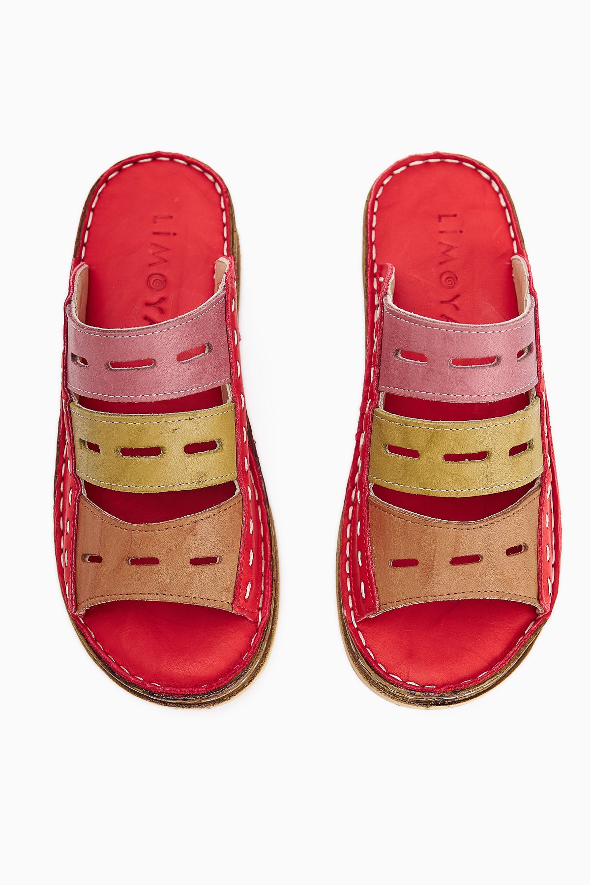 Hakiki Deri Joelle Kırmızı Mor Turuncu Yeşil Bej Comfort Lazer Kesim Terlik