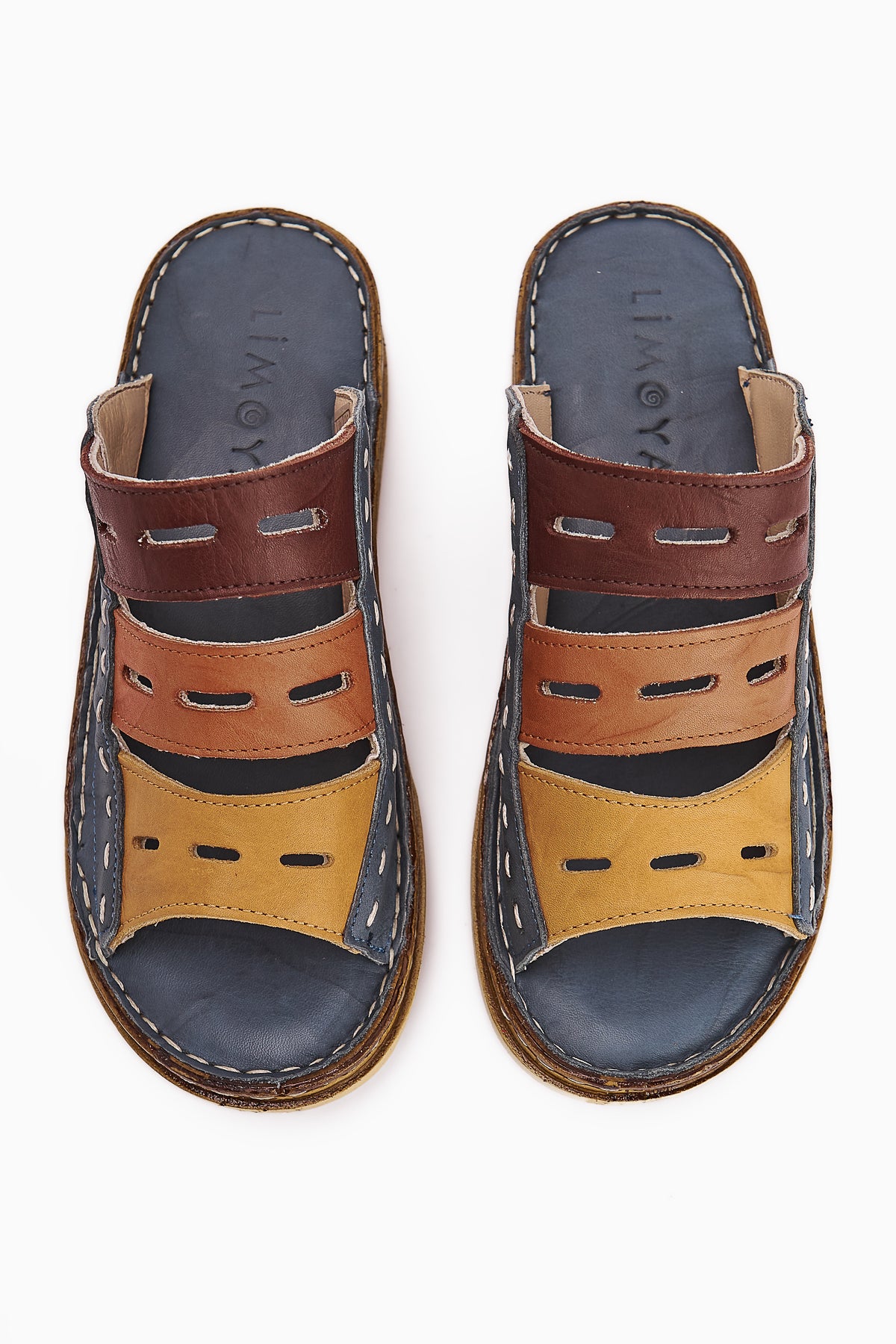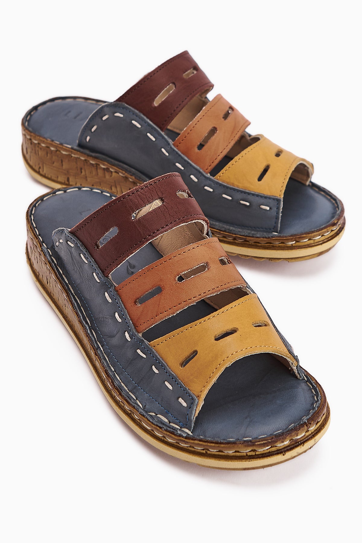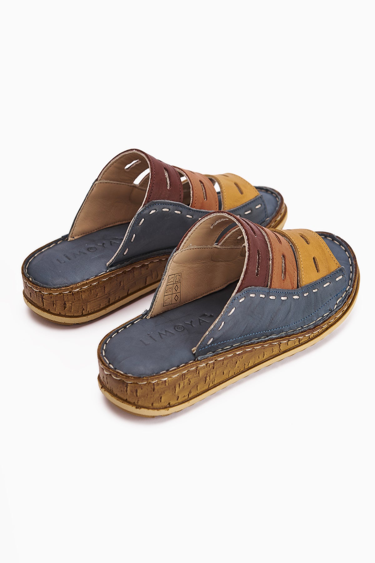 Hakiki Deri Joelle Kot-Mavi Mor Portakal Hardal Comfort Lazer Kesim Terlik